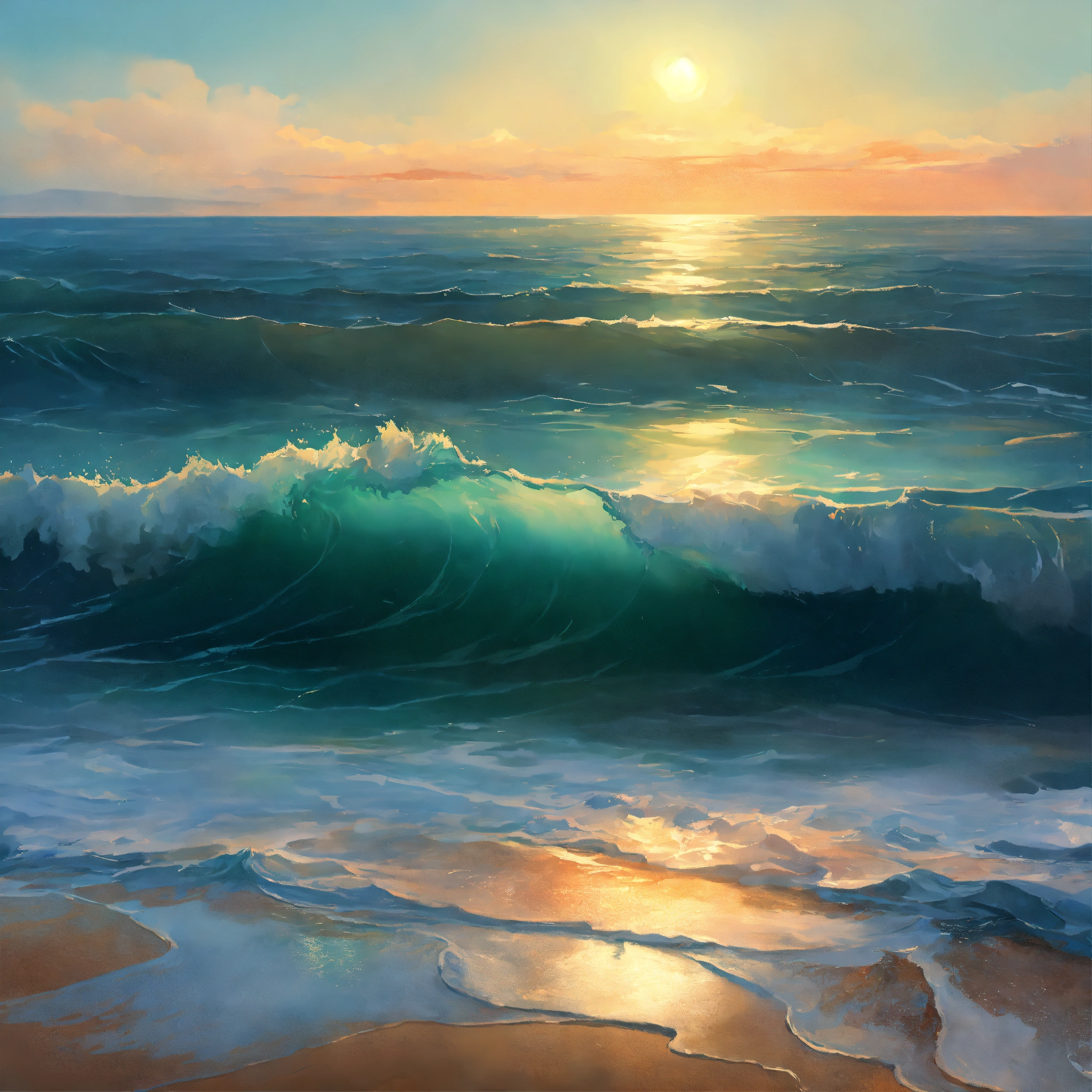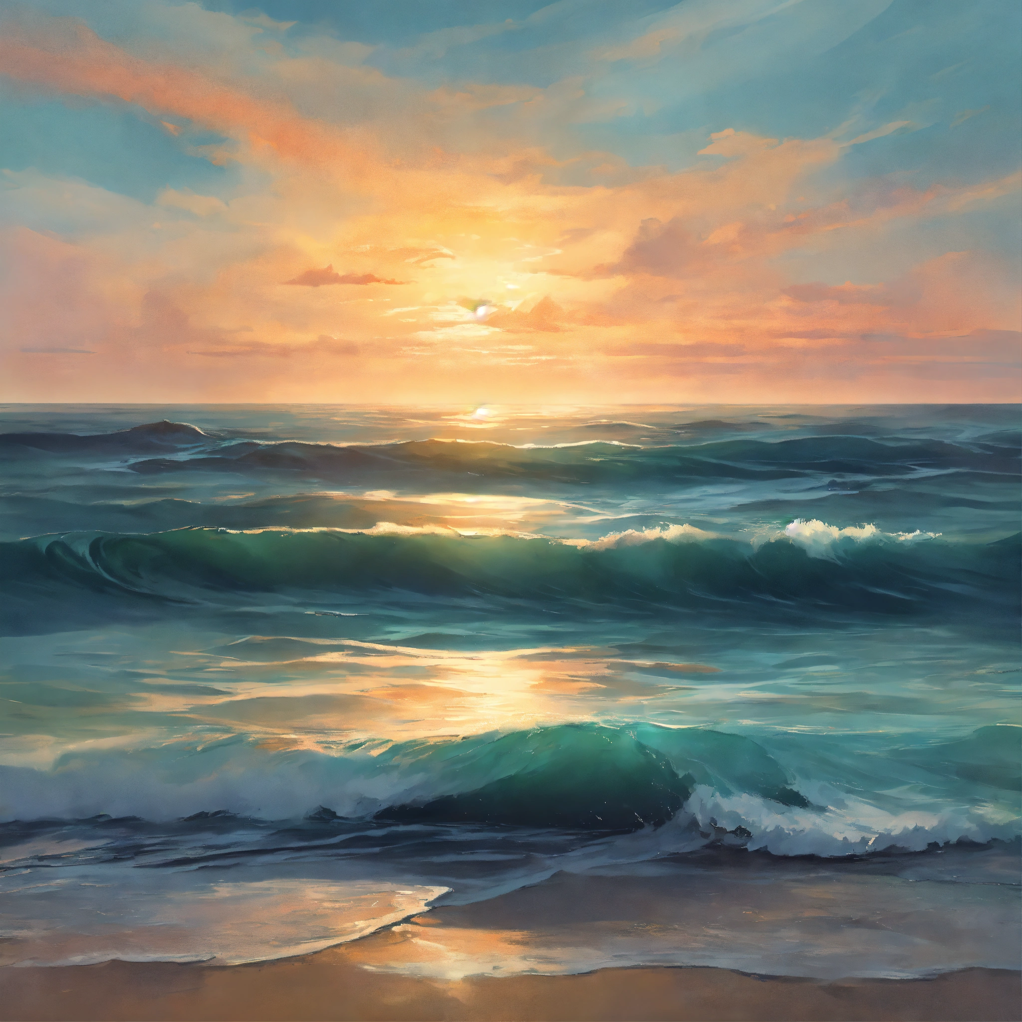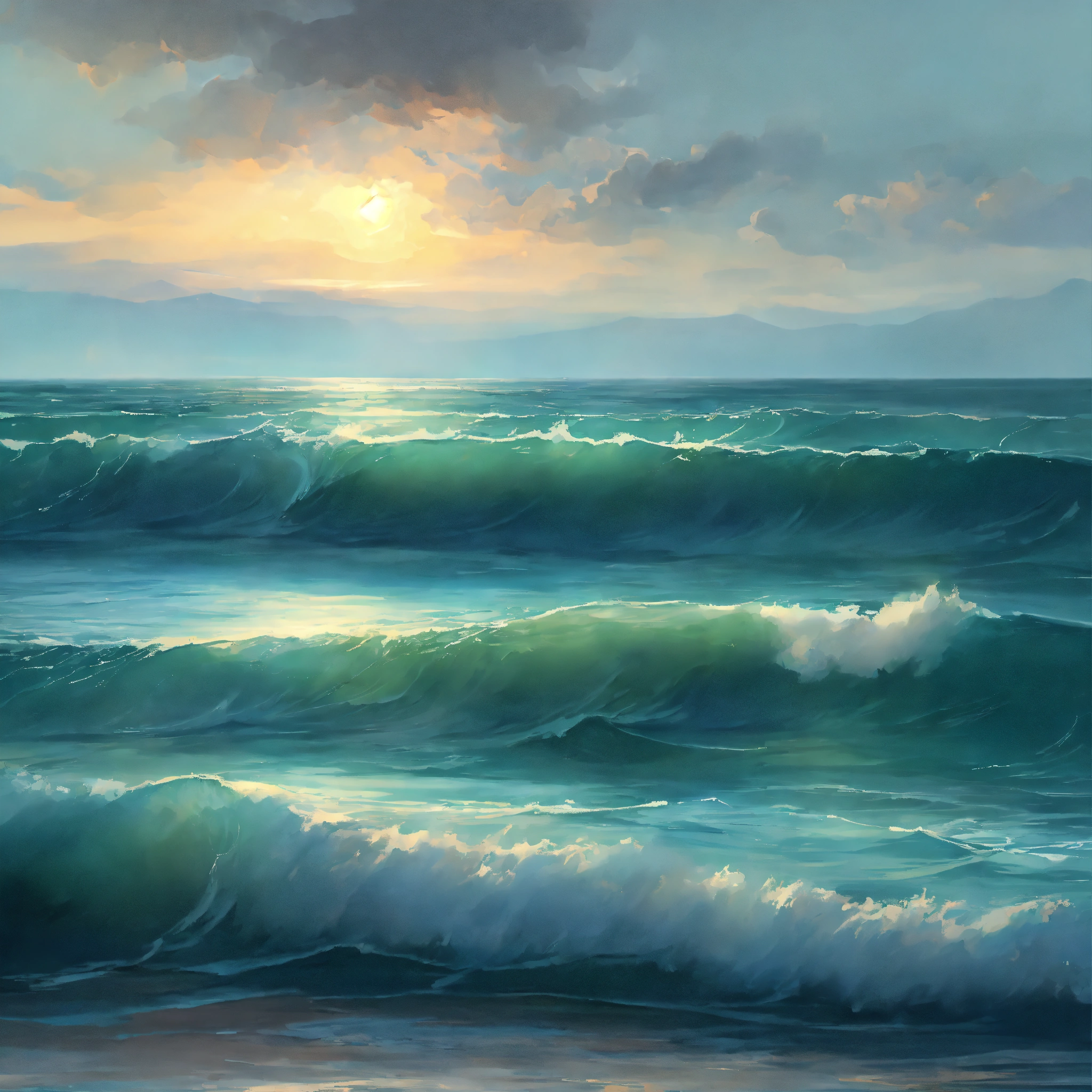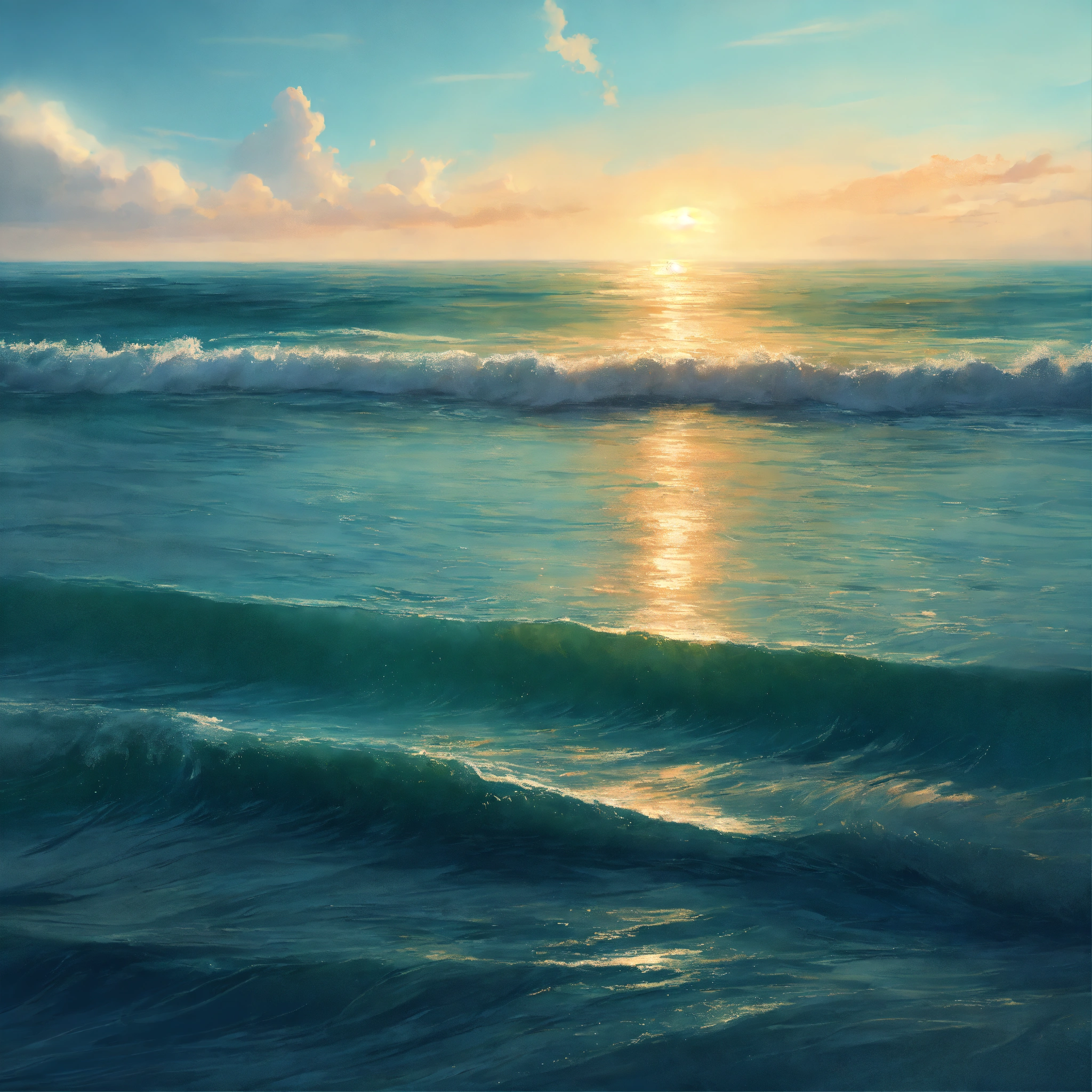 Concept art of an endless empty calm waveless ocean, painting style, highly detailed, brush strokes, 8k
