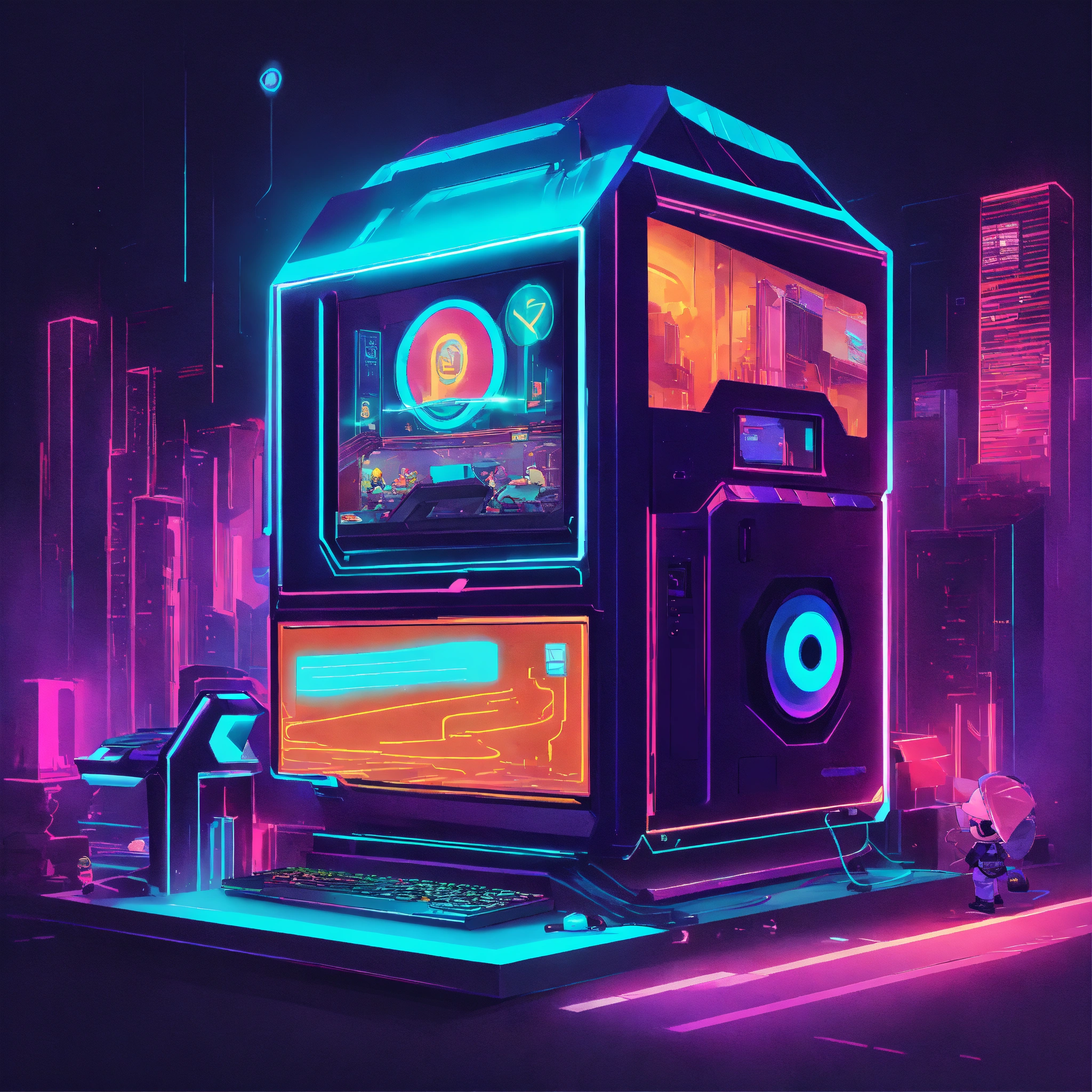 As a forward-focused gaming company, envision a design prompt that encapsulates our future-oriented ethos. develop a minimalist chibi, arcade artwork, showcasing a gamer seamlessly intertwining the worlds of gaming and education. cultivate a sleek, minimalist logo, symbolizing the fusion of these two realms and embodying an avant-garde approach to content. incorporate subtle neon accents for a touch of futurism and maintain a sleek, textured, splotchy style. this design will serve as the cornerstone of our brand, projecting a modern, future-oriented image for our company, which pioneers the future of gaming and learning without resorting to text-heavy elements.