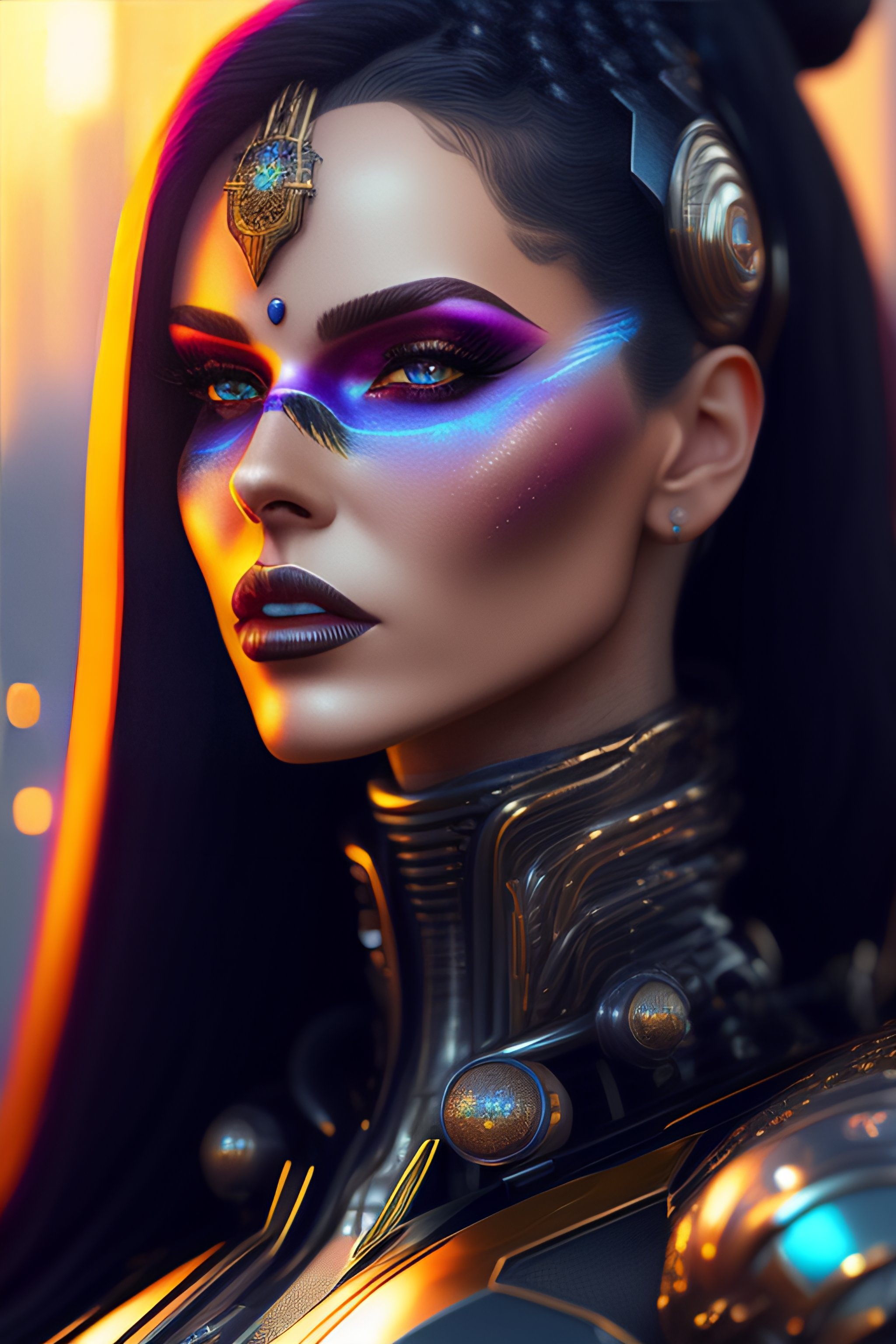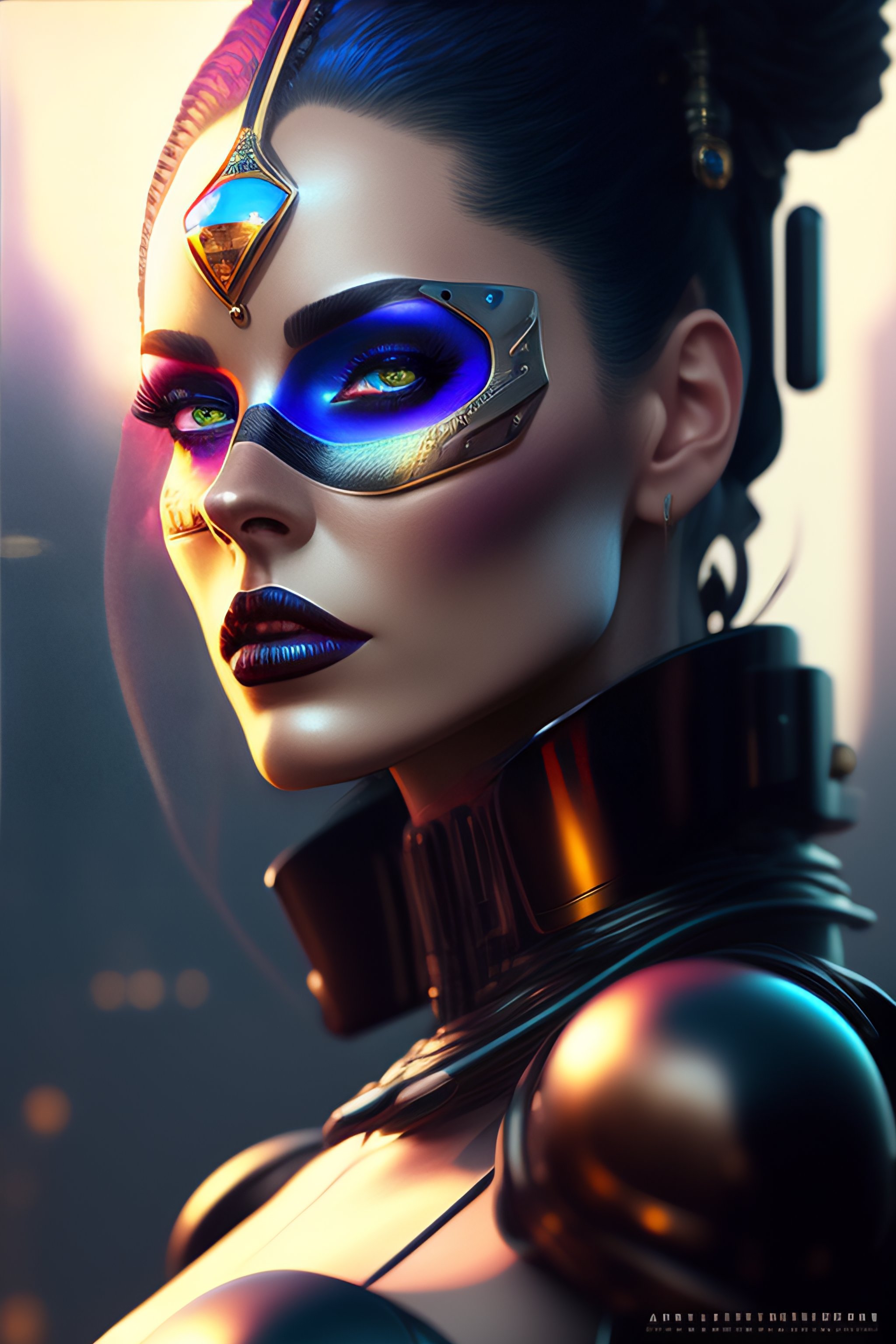 Ultra detailed side portrait of female android, cyberpunk, face like catrina, robot body, sharp focus, sci - fi, fantasy art, digital illustration, dia de los muertos. octane render, unreal engine, global illumination, intricate detailed. concept art. art by artgerm and wlop and giger and greg rutkowski and rossdraws and alphonse mucha, 8 k