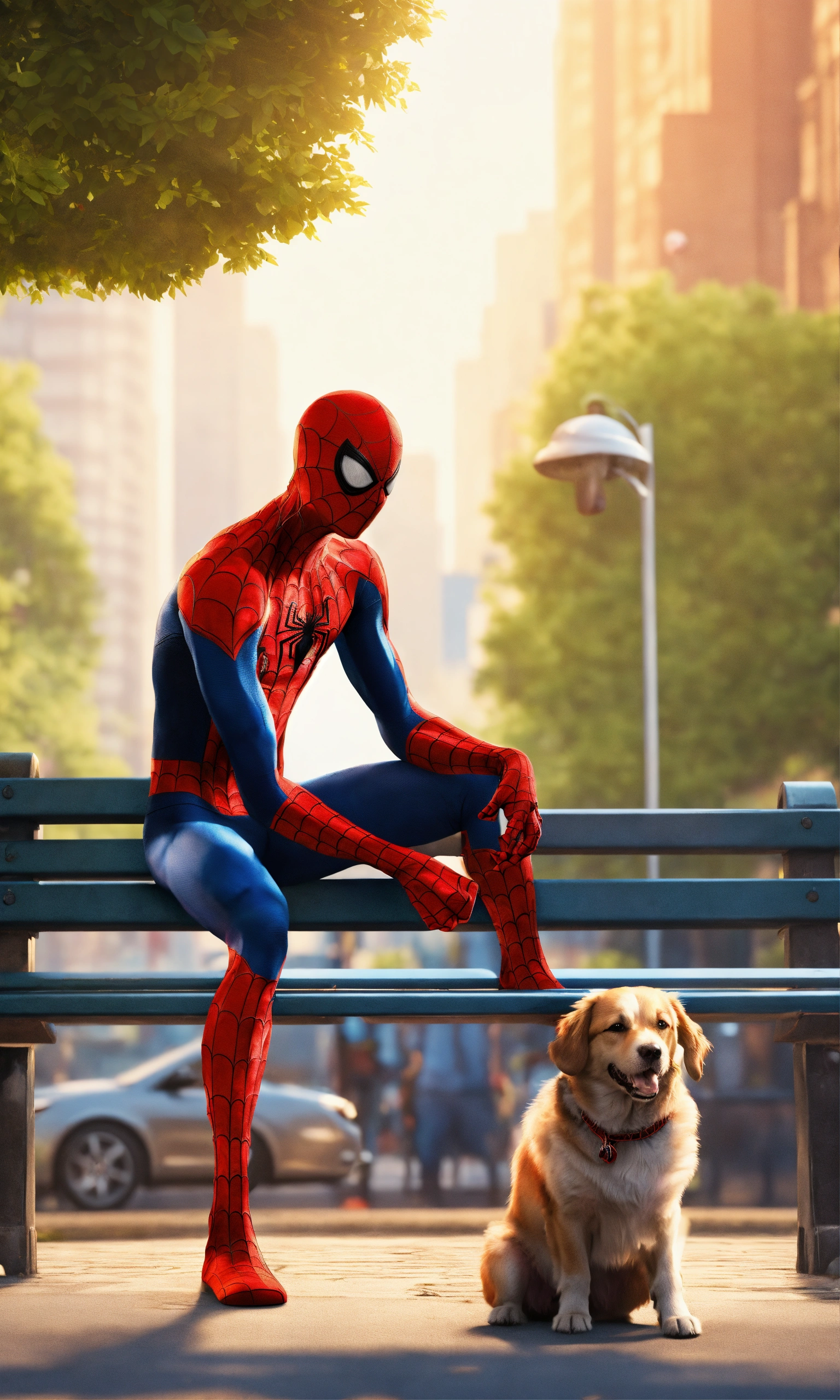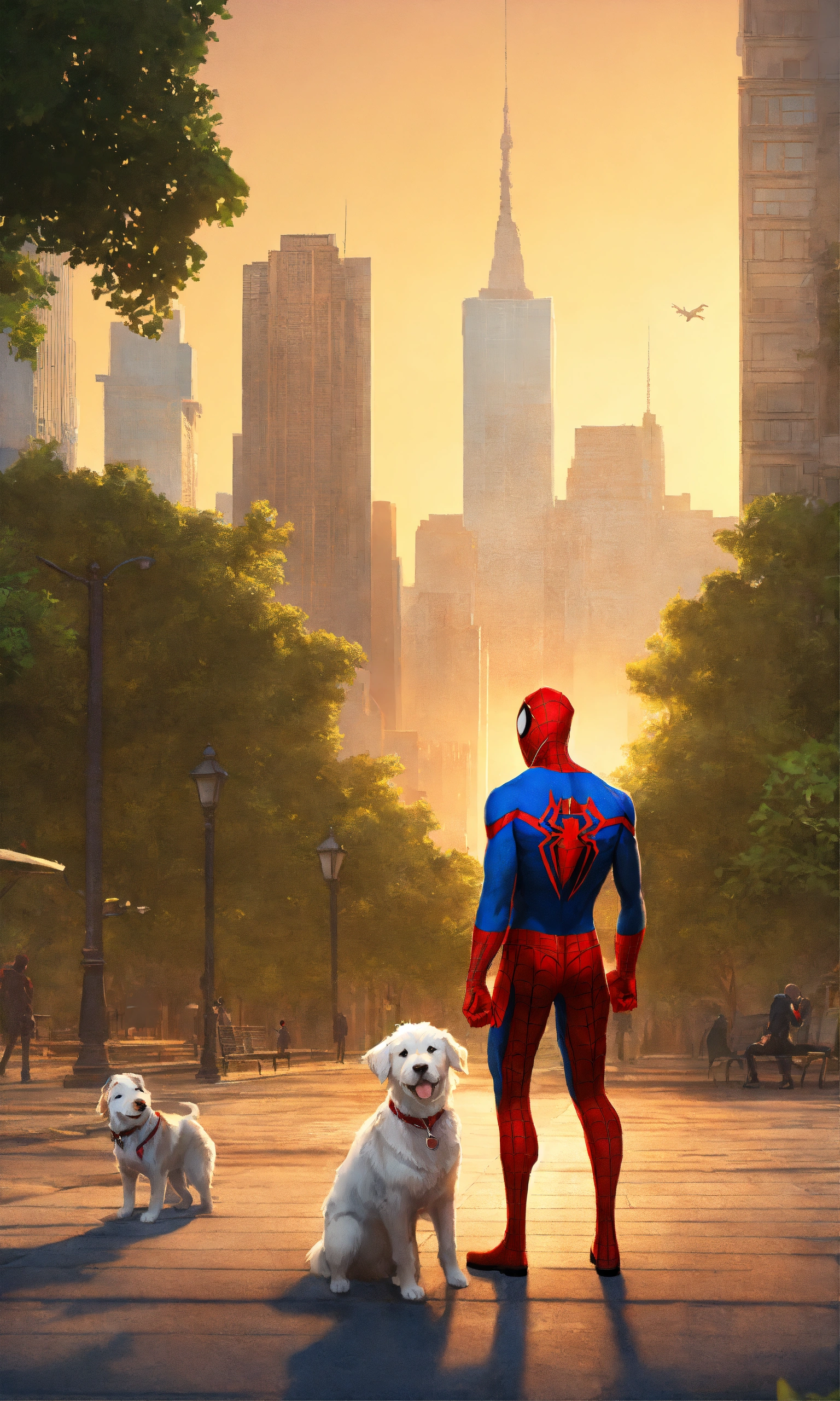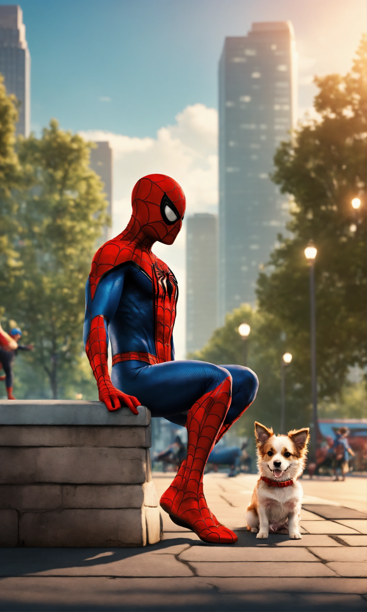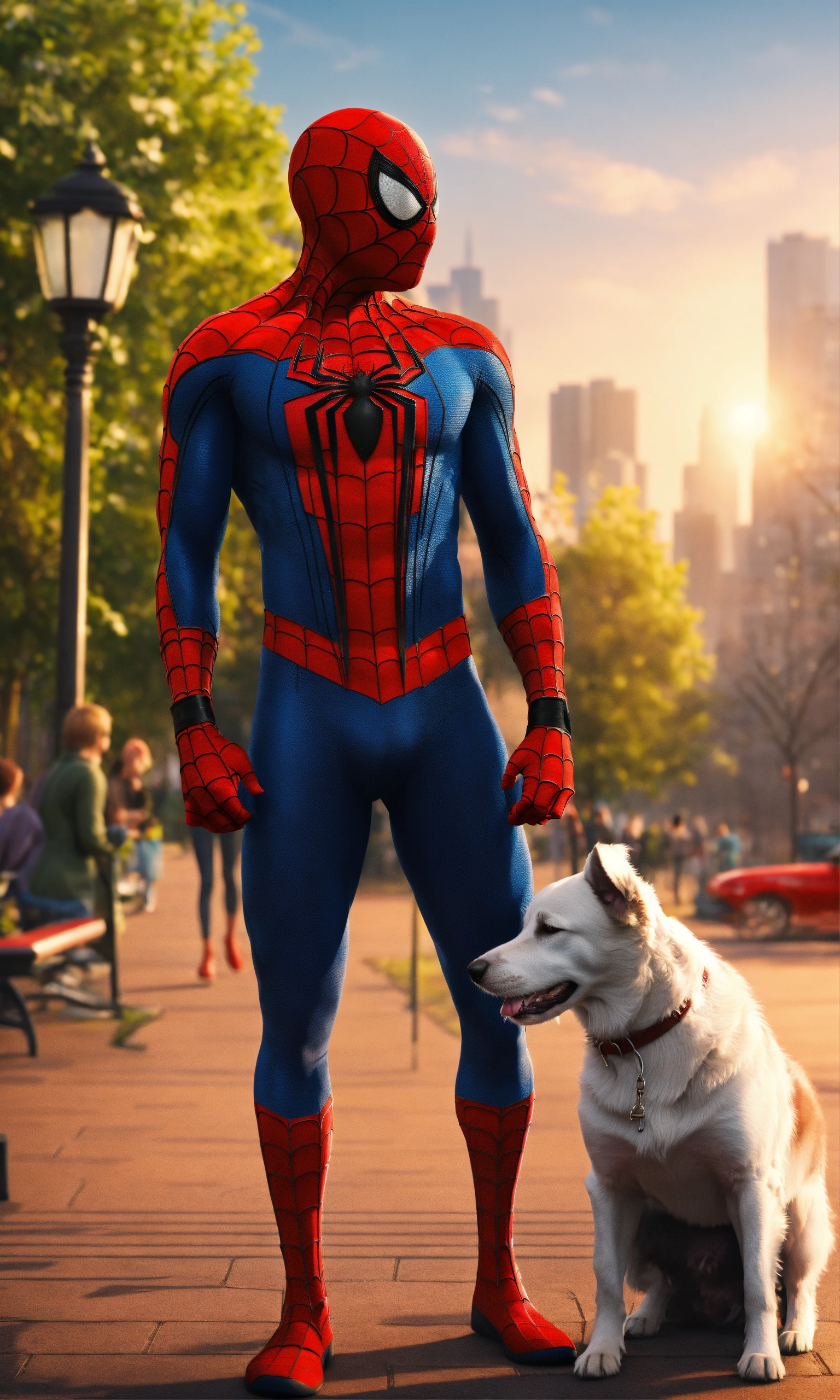 Spiderman with his dog at the park