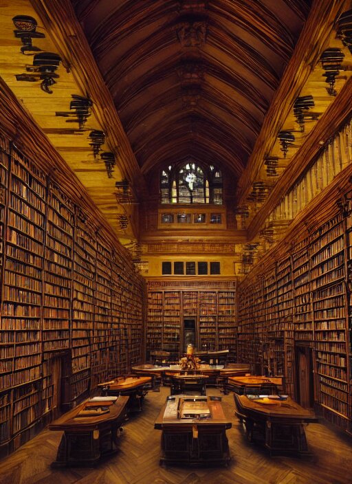 Medium shot, cinematic interior photo of library reading hall in dark academia aesthetic, hogwarts library, wooden desks with books, candles, flowers and vines, magic vibes, enhancements, soft lighting, by john ward, by arthur walker, by vermeer, by monet, oil on canvas, royal academy, masterpiece, trending on artstation, cinematic composition, dramatic pose, beautiful lighting, sharp, details, hyper-detailed, hd