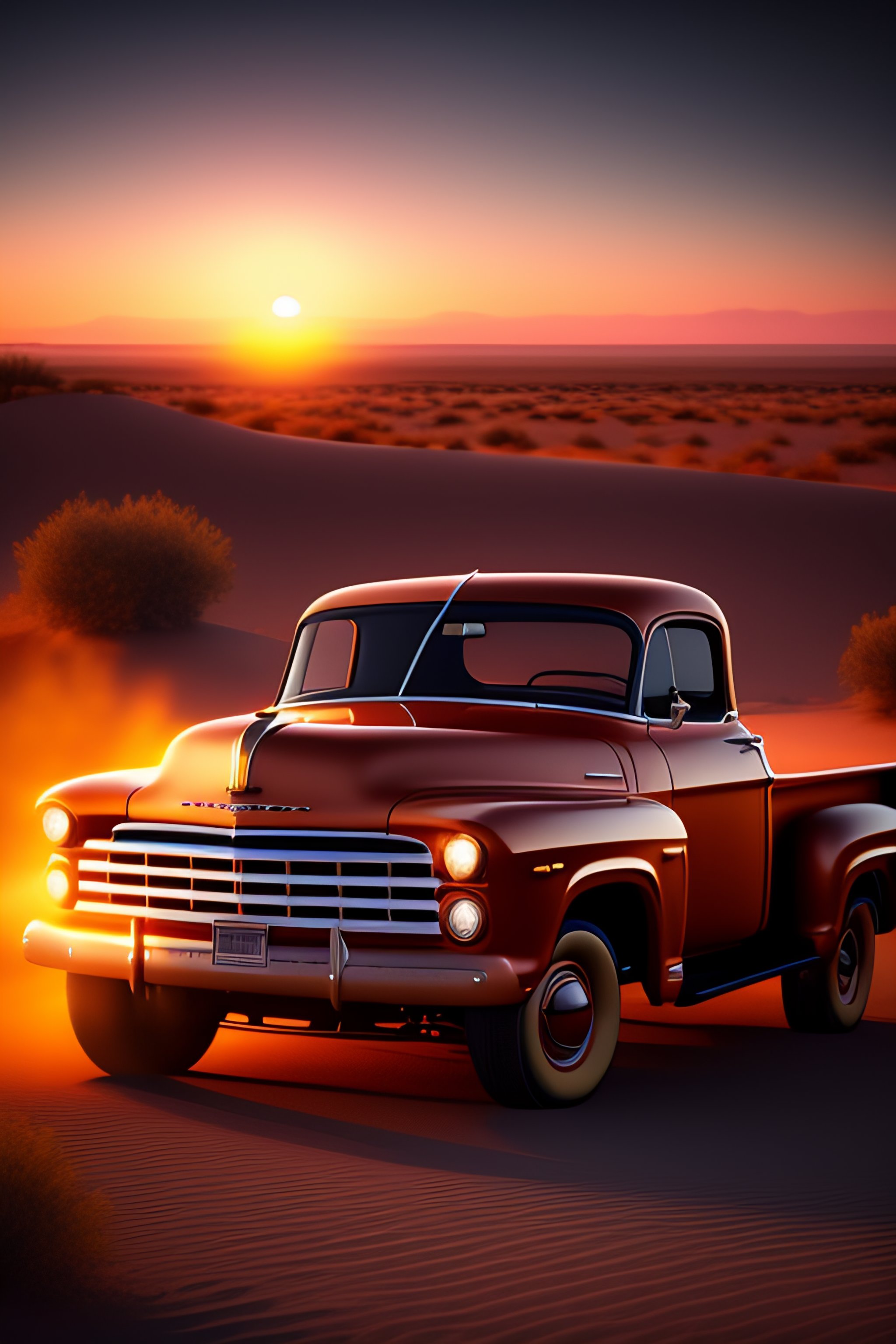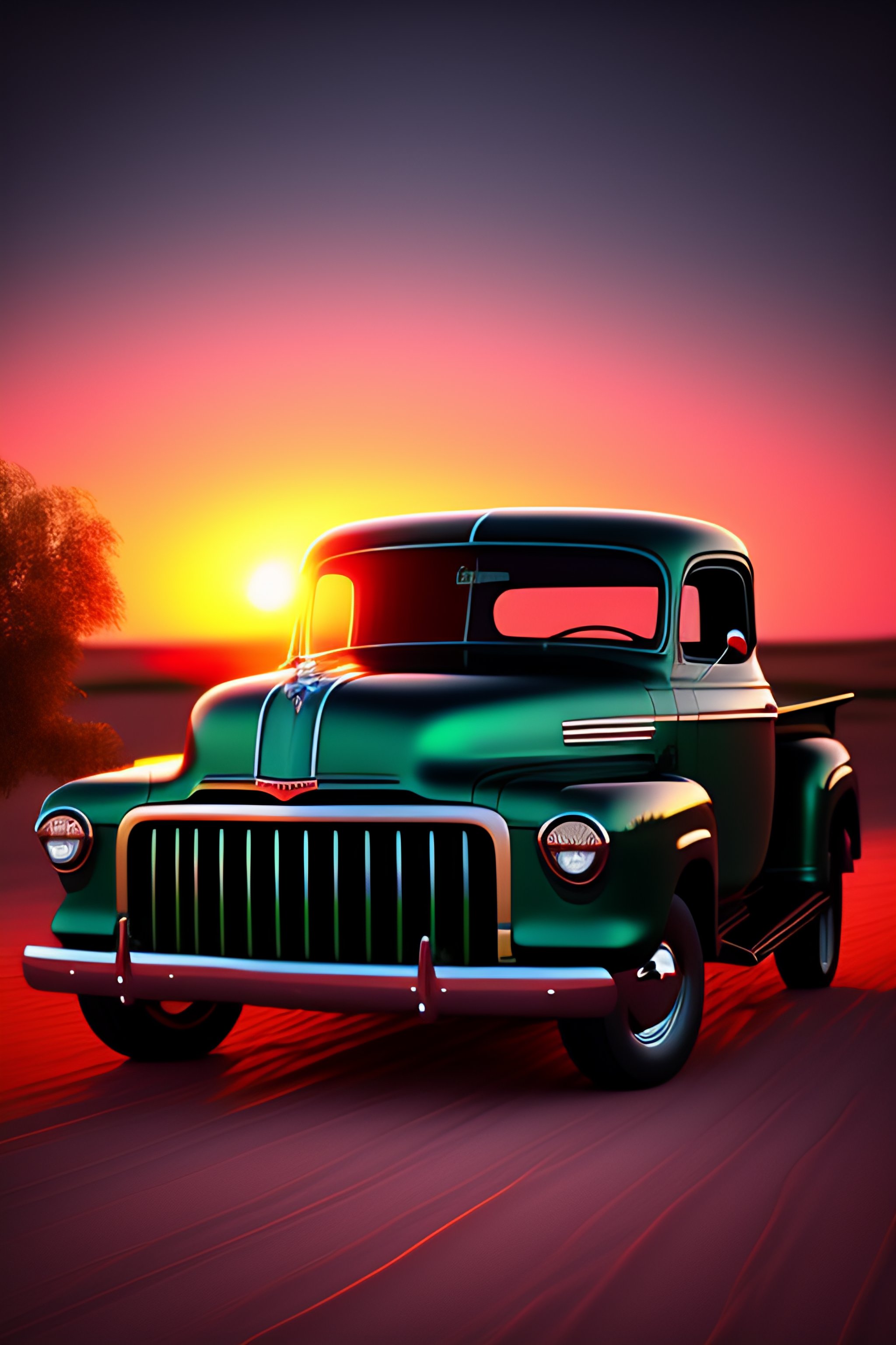 A beautiful old pickup truck with sci-fi settings at sunset volumetric light, detailed, octane render