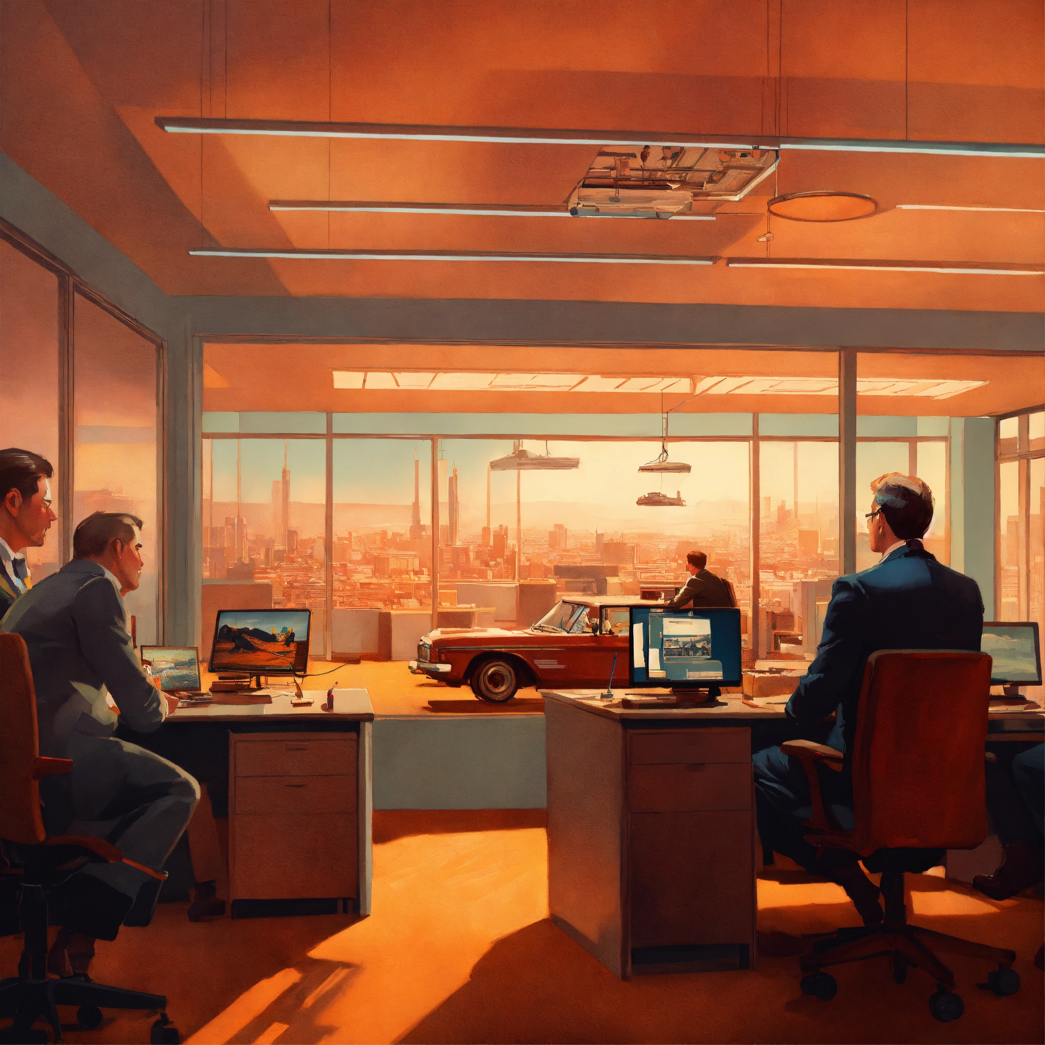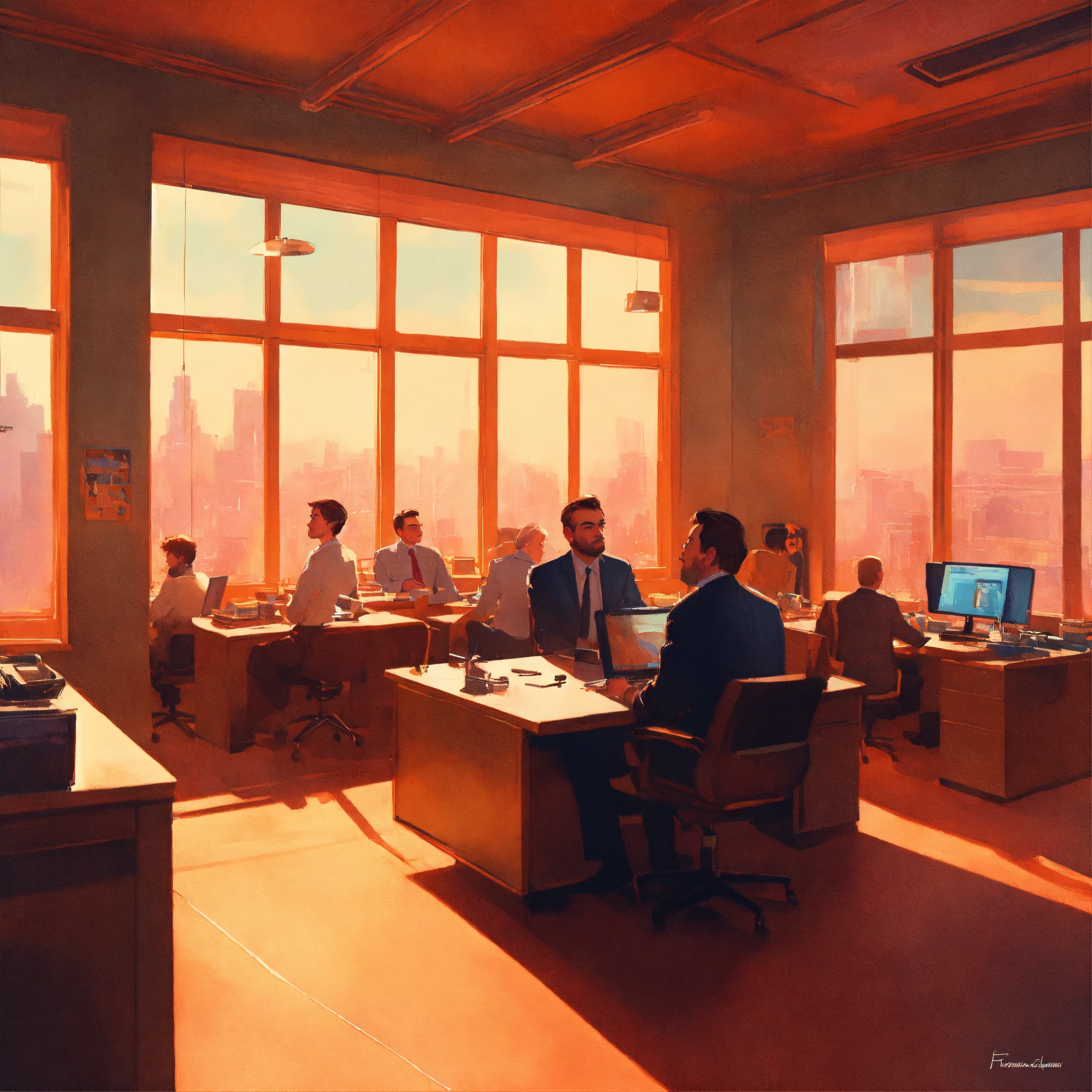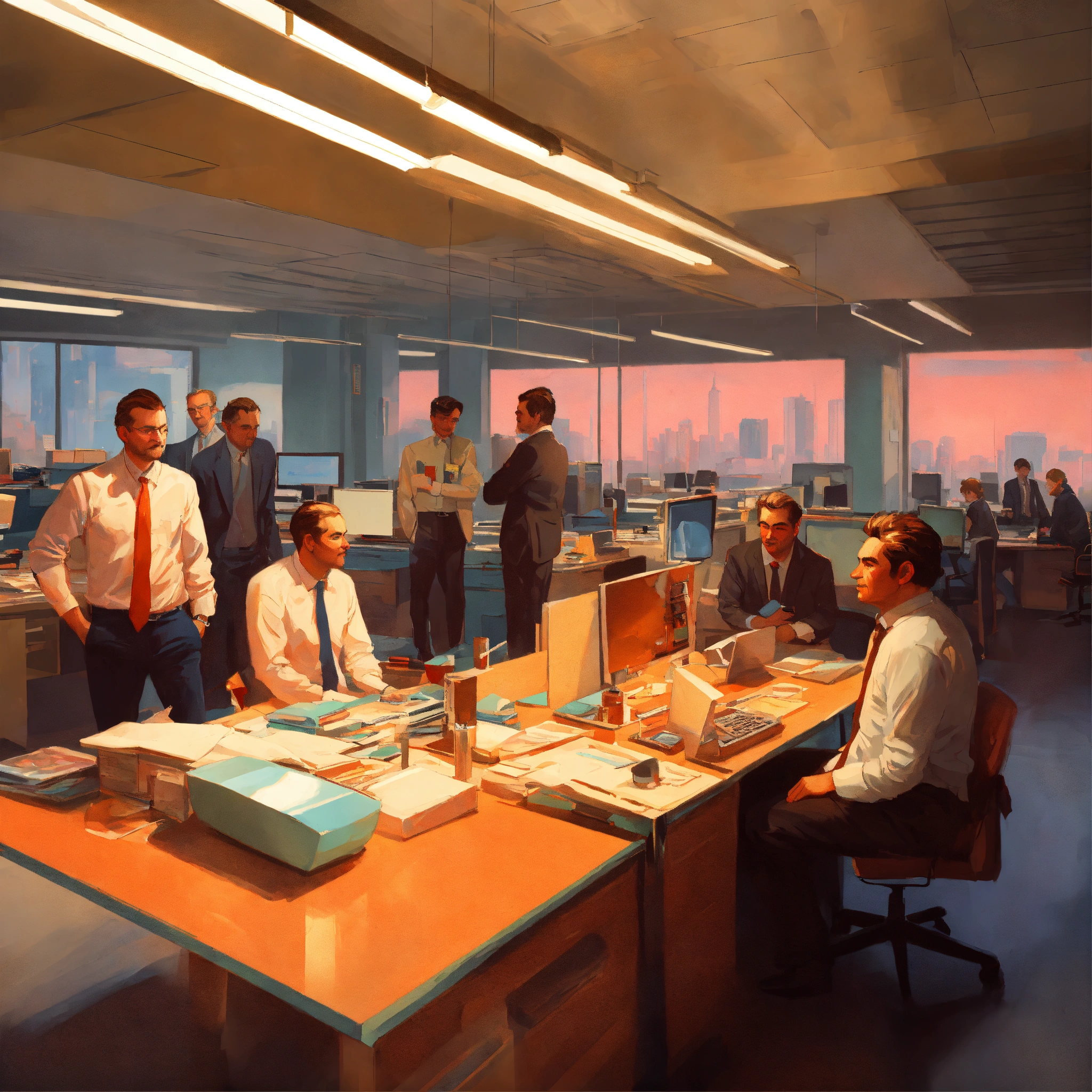 Tilt-shifted photo of team in modern office, open ceiling, manager looking at the dashboard with stagnation, 8k, very coherent, surrealism, airbrush, realistic detailed image of mark brooks, in the style of francis bacon, in the style of francis bacon and syd mead and edward hopper and norman rockwell and beksinski, open ceiling, highly detailed, painted by francis bacon, painted by james gilleard, surrealism, airbrush, ilya kuvshinov, wlop, stanley artgerm, very coherent