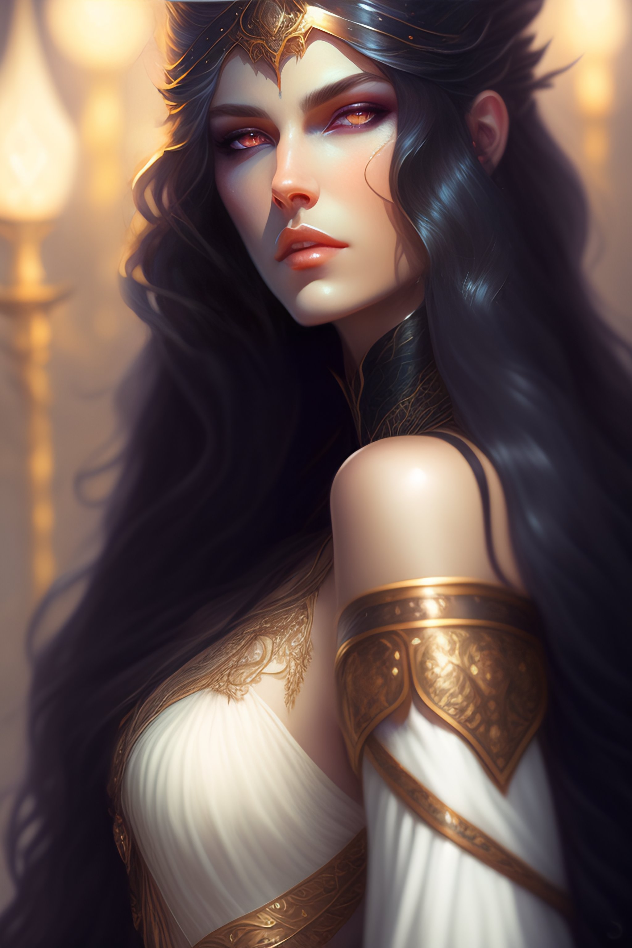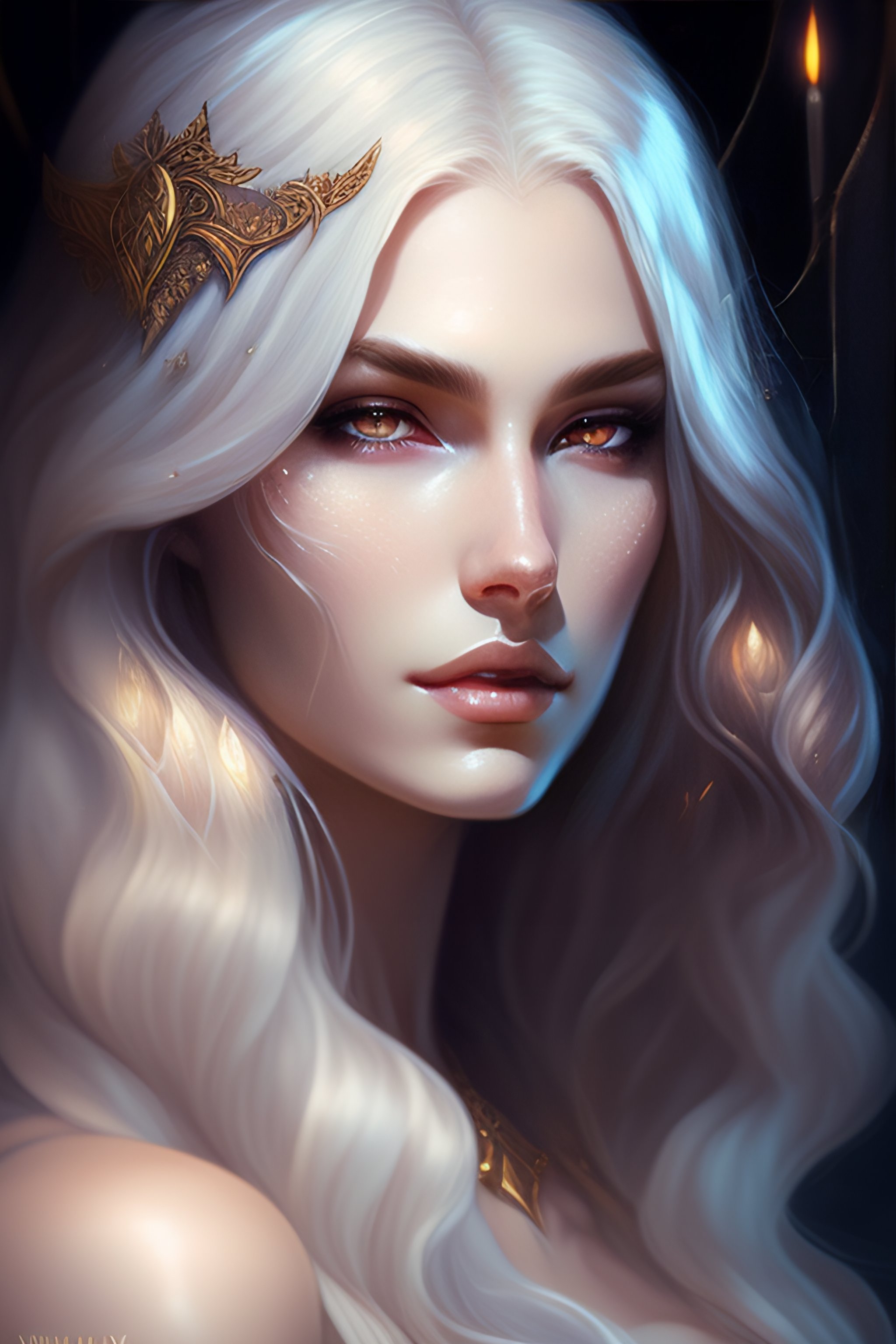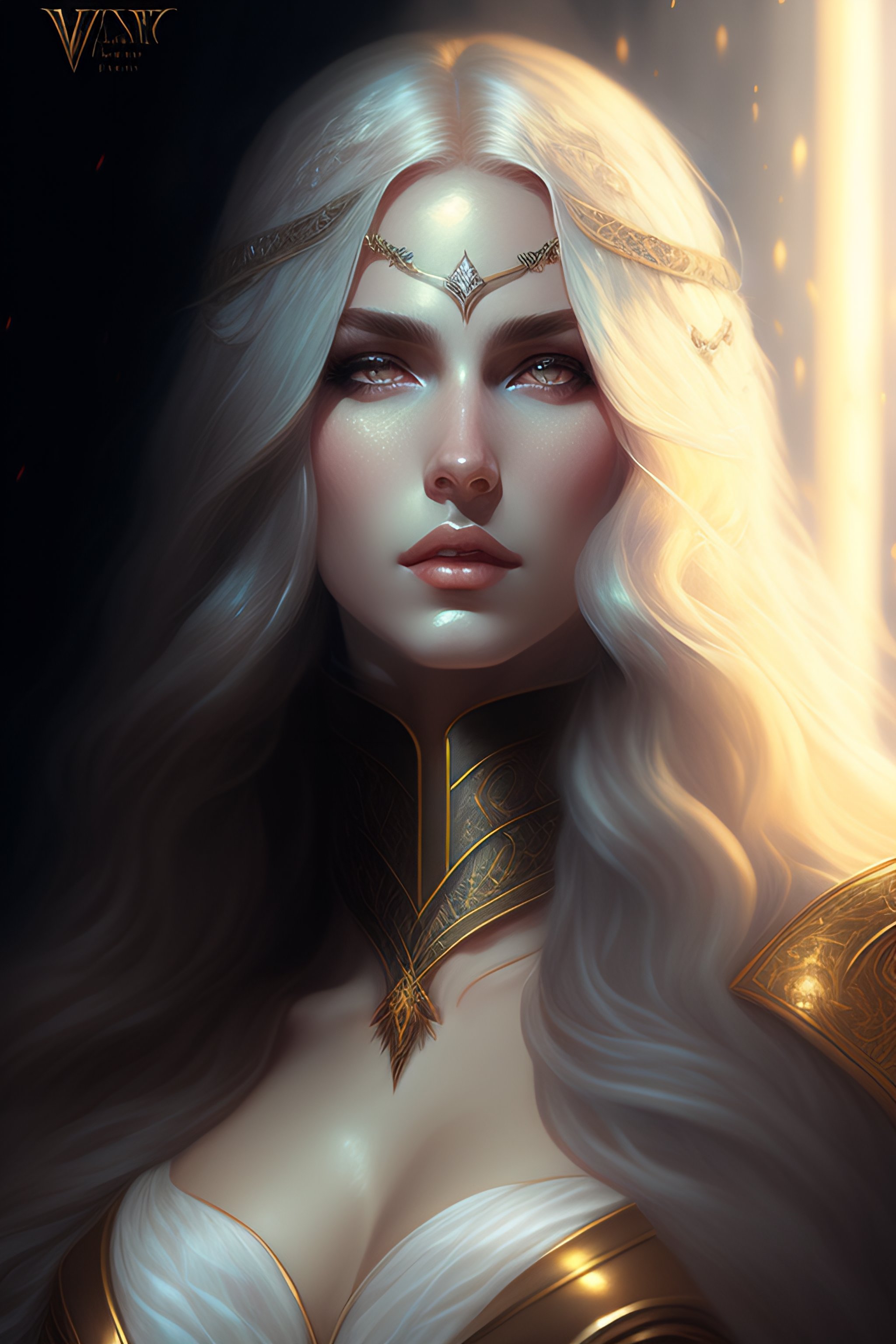 White long hair vampire glare, fantasy magic, dark pin-up style hair, dark light night, intricate, elegant, sharp focus, illustration, highly detailed, digital painting, concept art, matte, art by wlop and artgerm and greg rutkowski and alphonse mucha, masterpiece