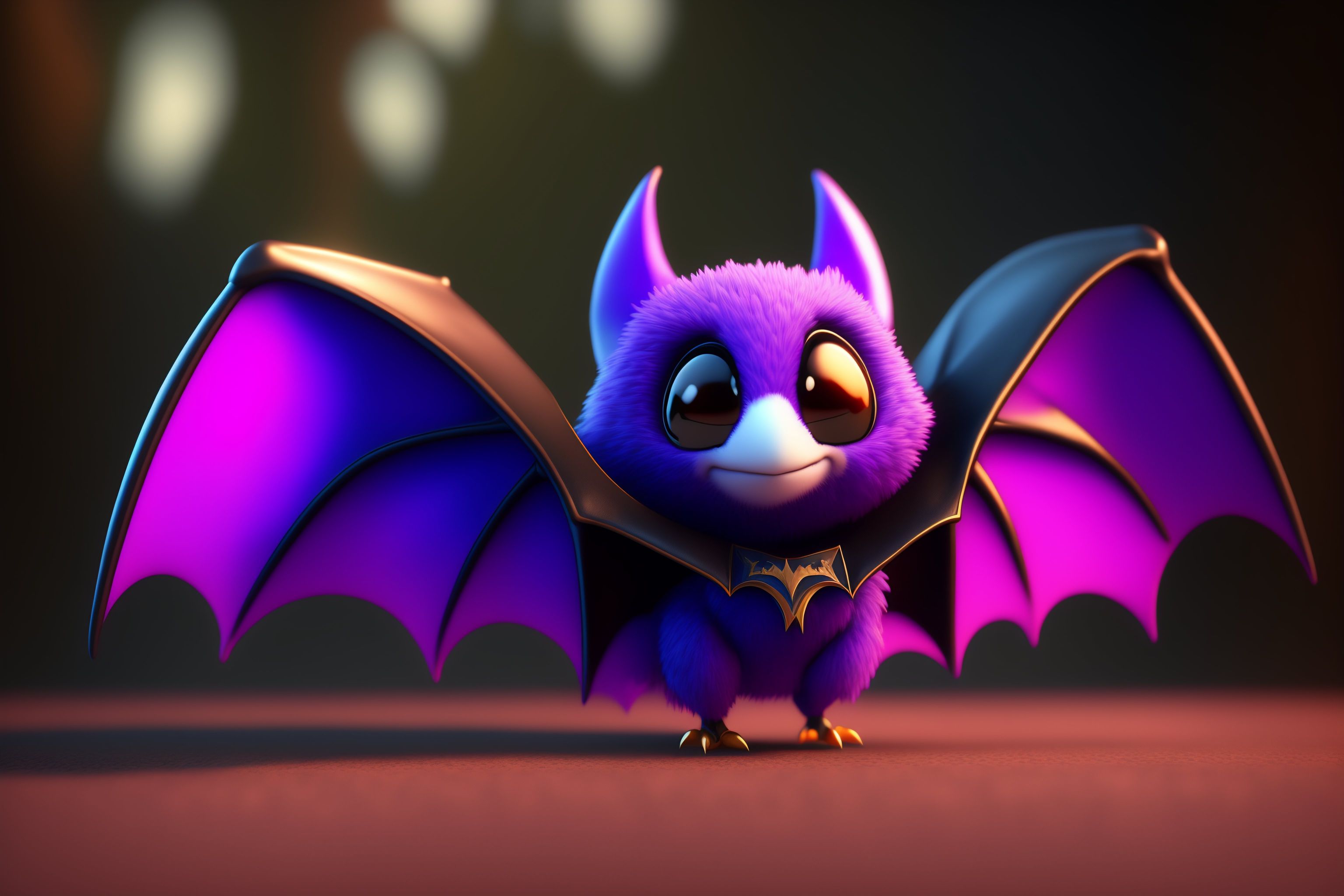 Little bat with wings and fangs, cute pixar character, violet, digital painting, octane render, unreal engine, studio lighting