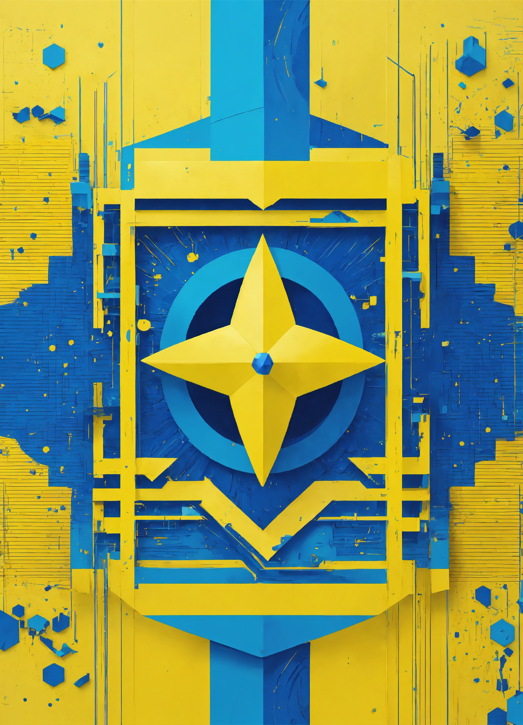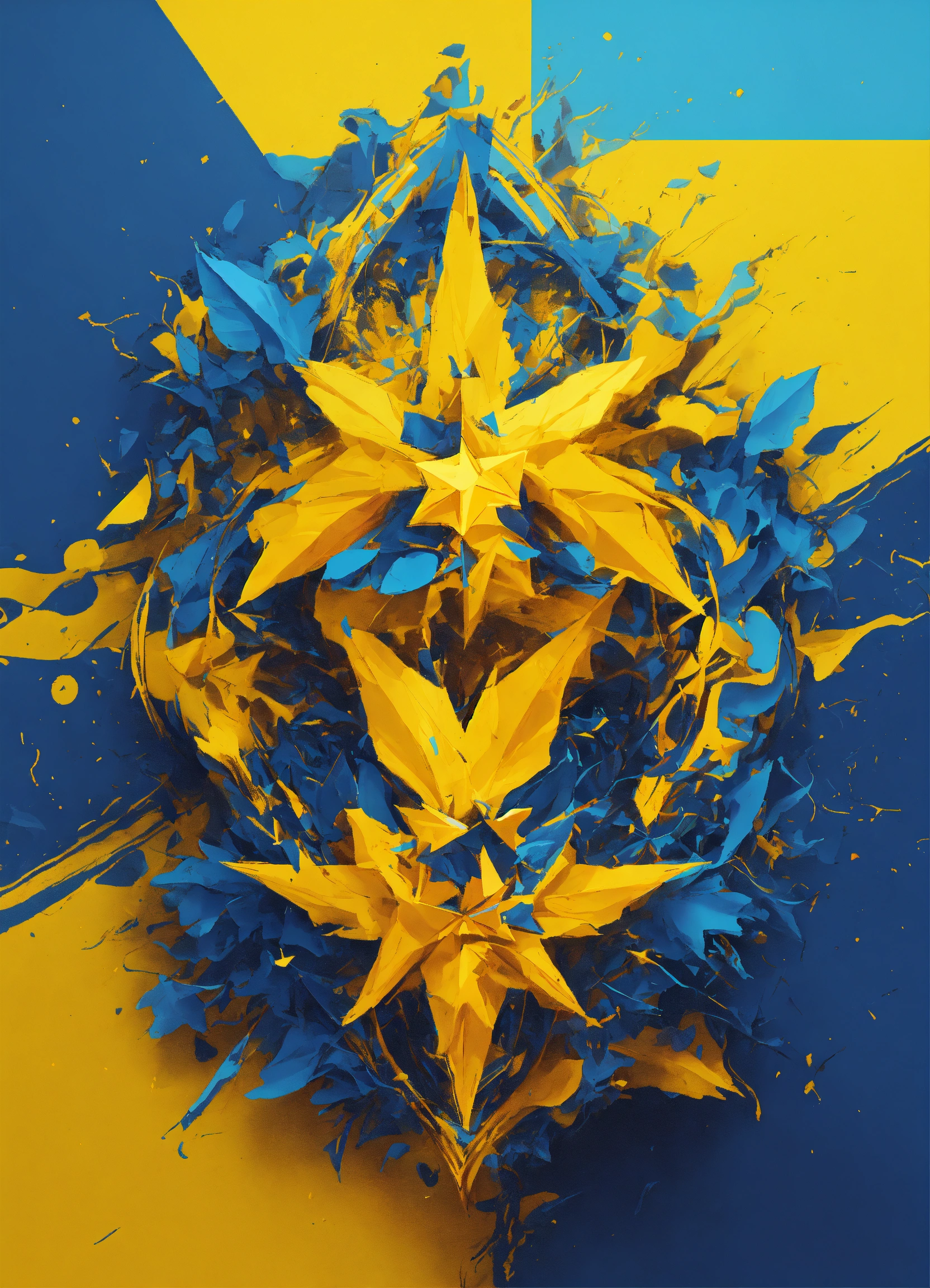 Artistic logo design using bright yellow and bright blue colors without a star