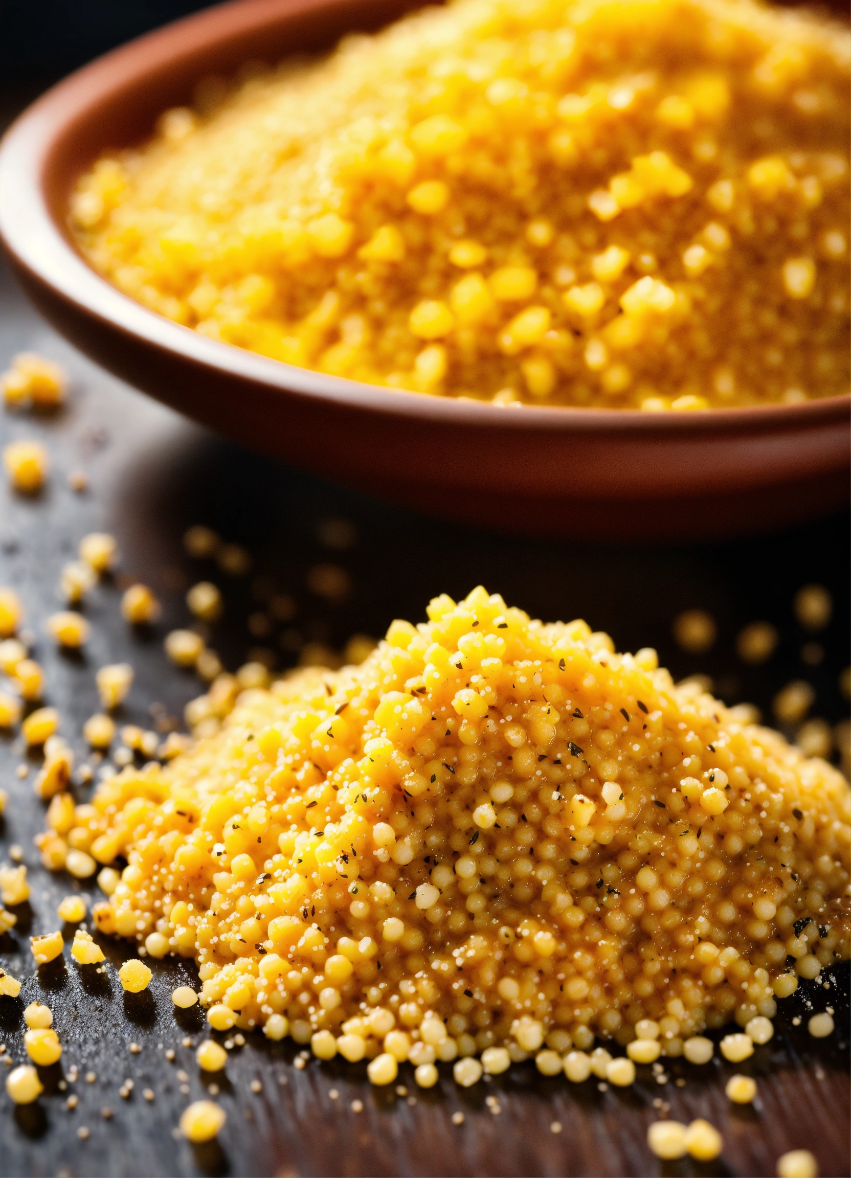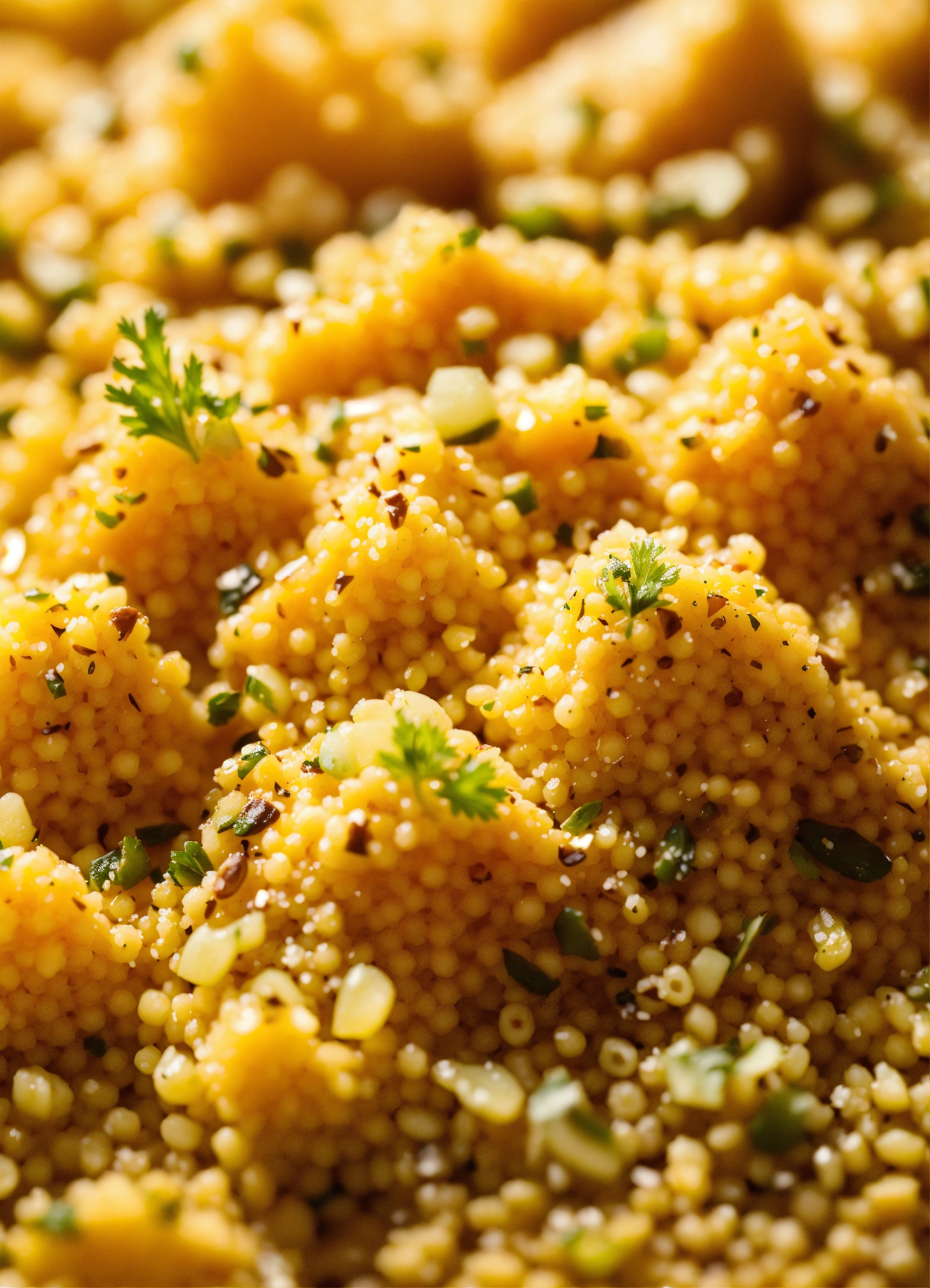 Couscous. with spectacular splashes of couscous seed. creative dynamic composition varies the angle. macro food photography, taken by an expensive, very high-tech camera. eye-catching, enticing and captivating. photo product, ideal for poster promotion. 8k, hd quality, ultra realistic, hyper detailed. original idea taken from a different angle.