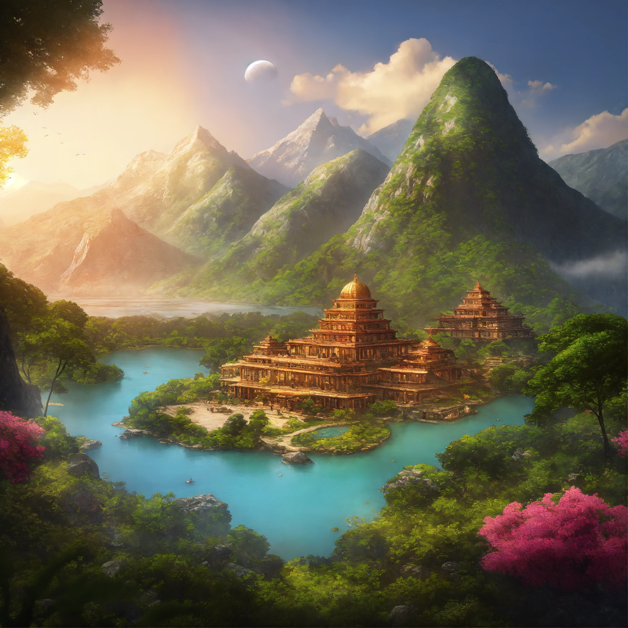 Create a map amaris, a diverse planet, is home to advanced alien species, the amaridians. it has 4 continents nolaris with dense forests & mountains, sularis with plains & rivers, emaris with deserts & rock formations, and wolaris with rainforests & coastlines. oceans teeming with life surround the continents. notable features include the amanar river, luminescent lake, and various mountain ranges. amaridian cities blend with nature, and unique locations like the temple of knowledge, crystal caves, and garden of harmony hold cultural significance.