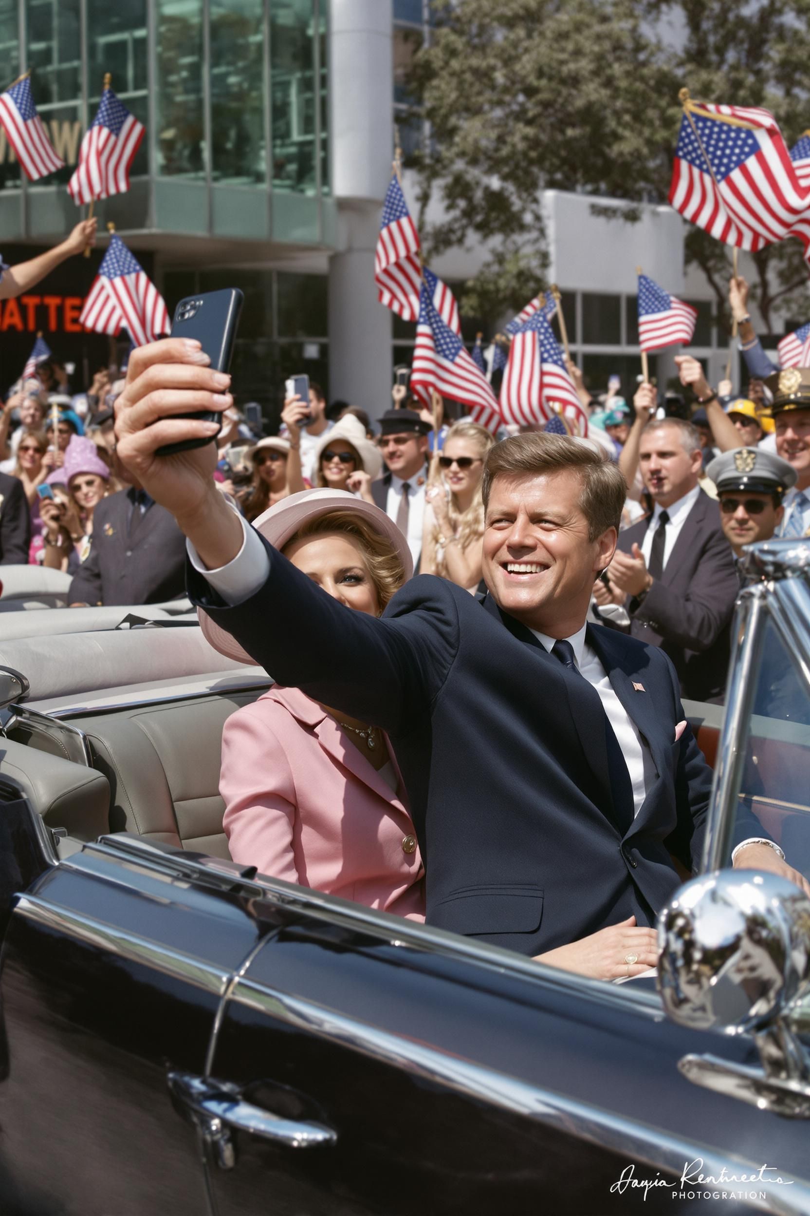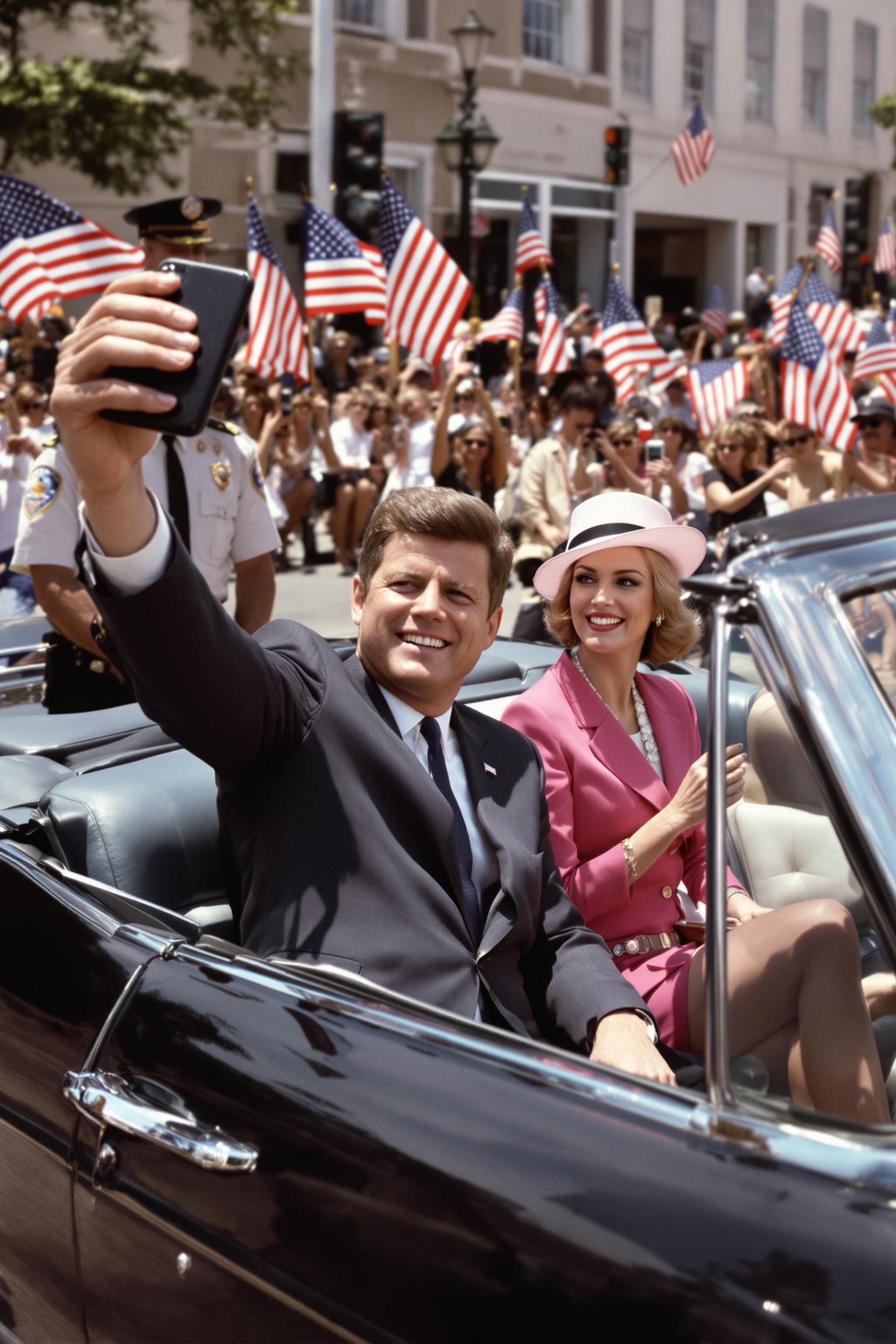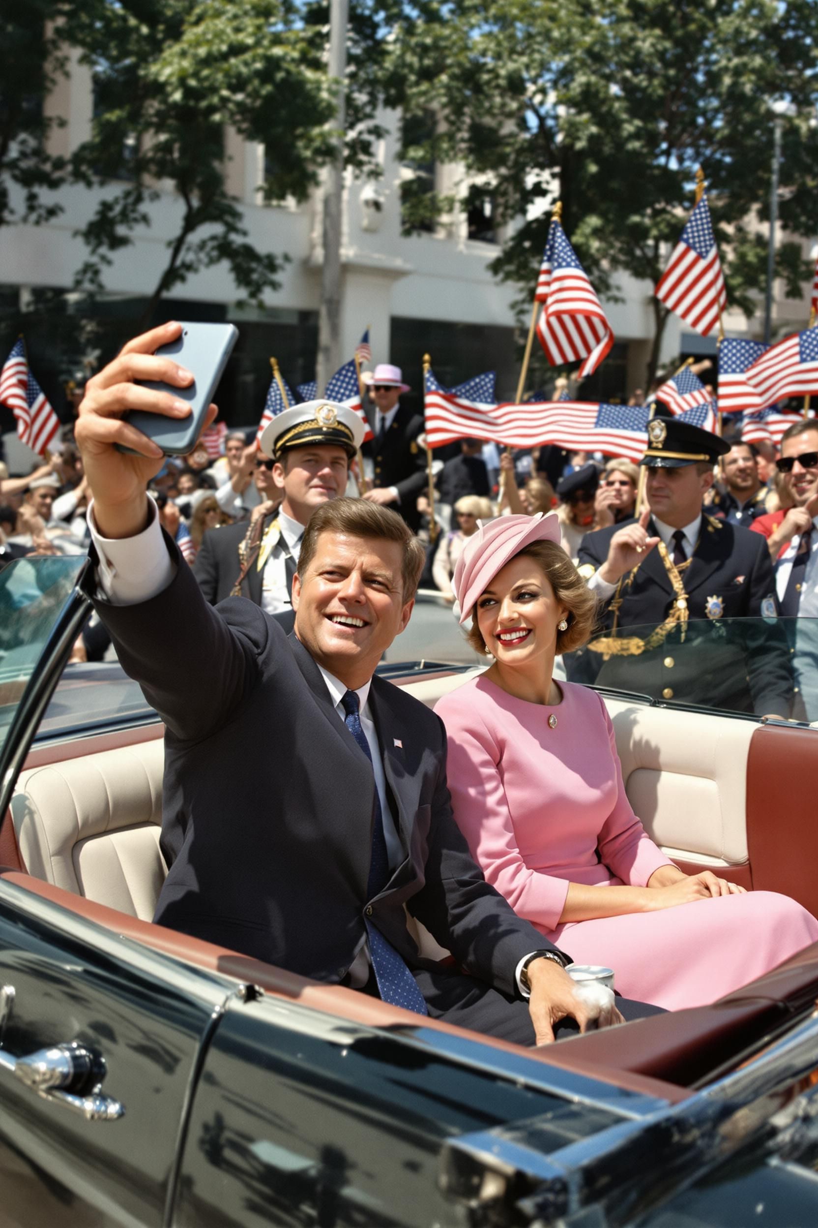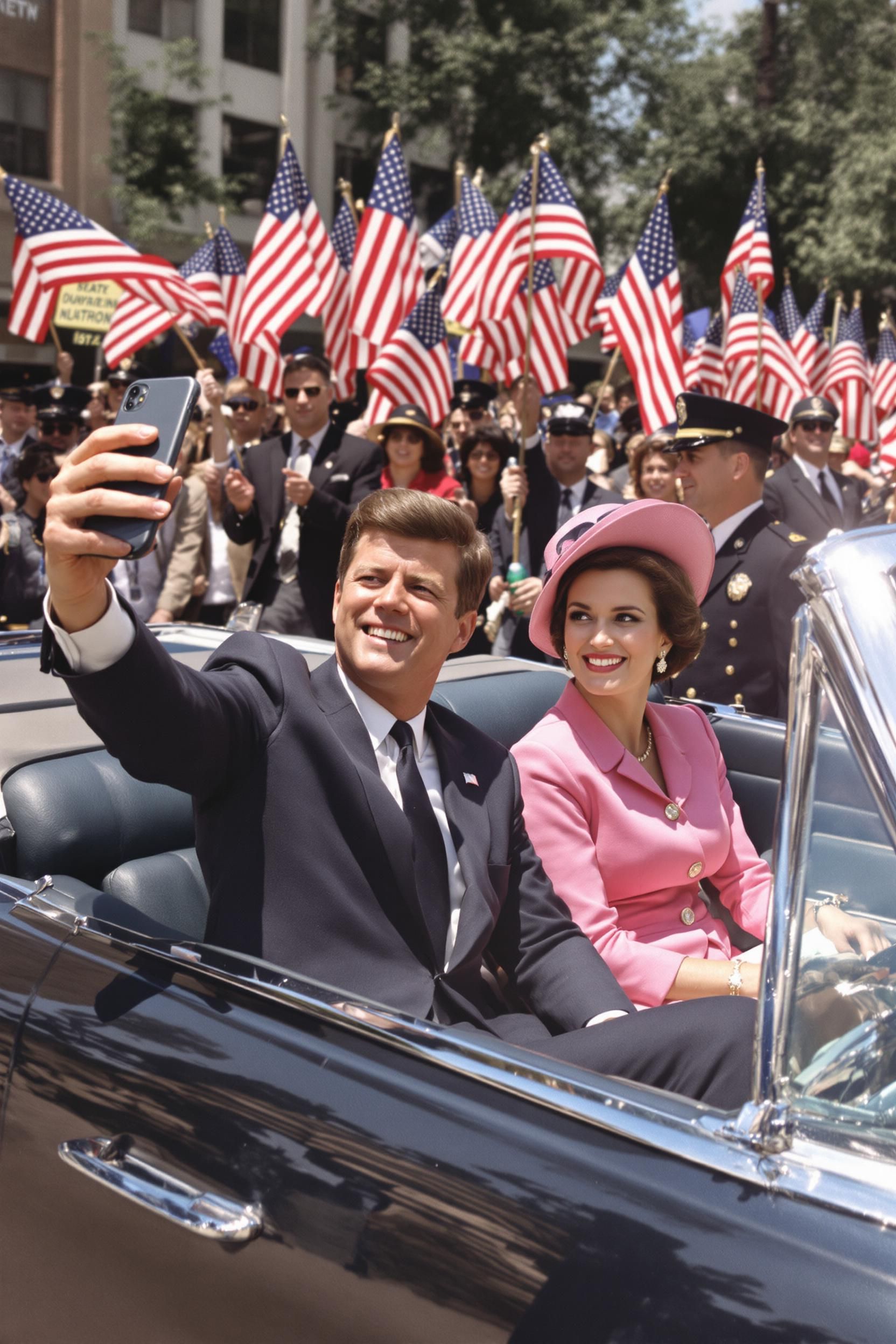 The selfie that was found on jfk's iphone, it was taken right before his last moments as he was riding in his motorcade near the grassy knoll, he used a wide angle on his phone