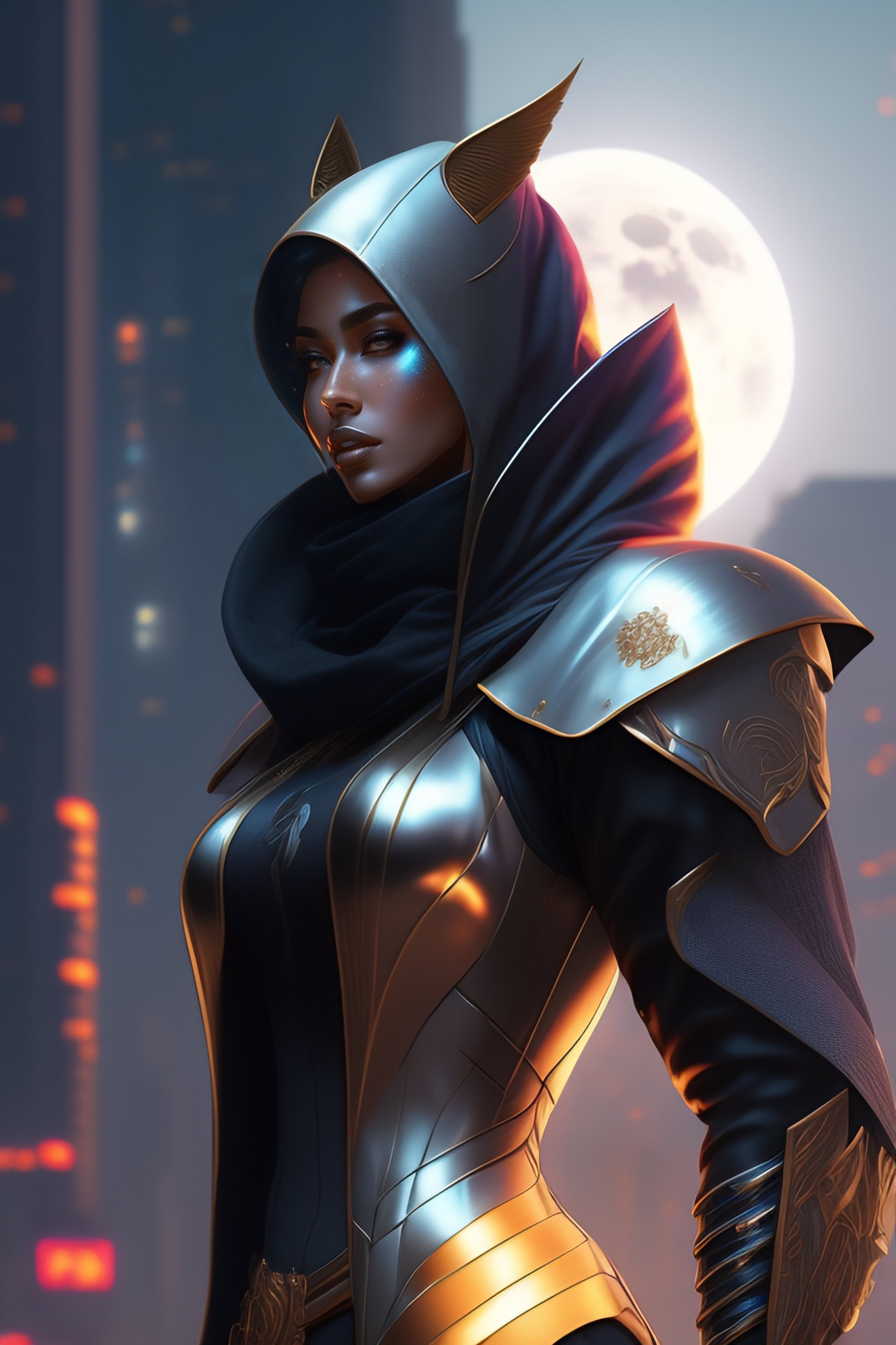 Moon knight cyberpunk sharp details, sharp focus, elegant, highly detailed, illustration, by jordan grimmer and greg rutkowski and pine ハイネ wlop, intricate, beautiful, trending artstation, pixiv, digital art