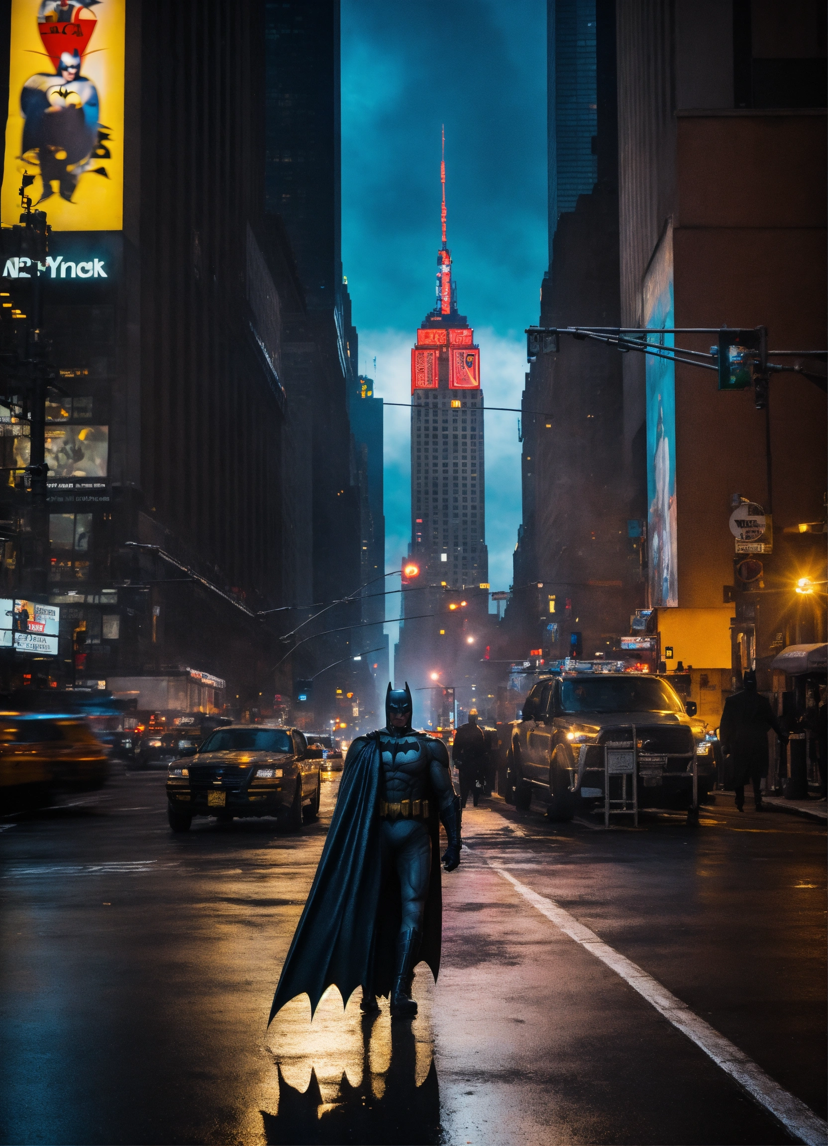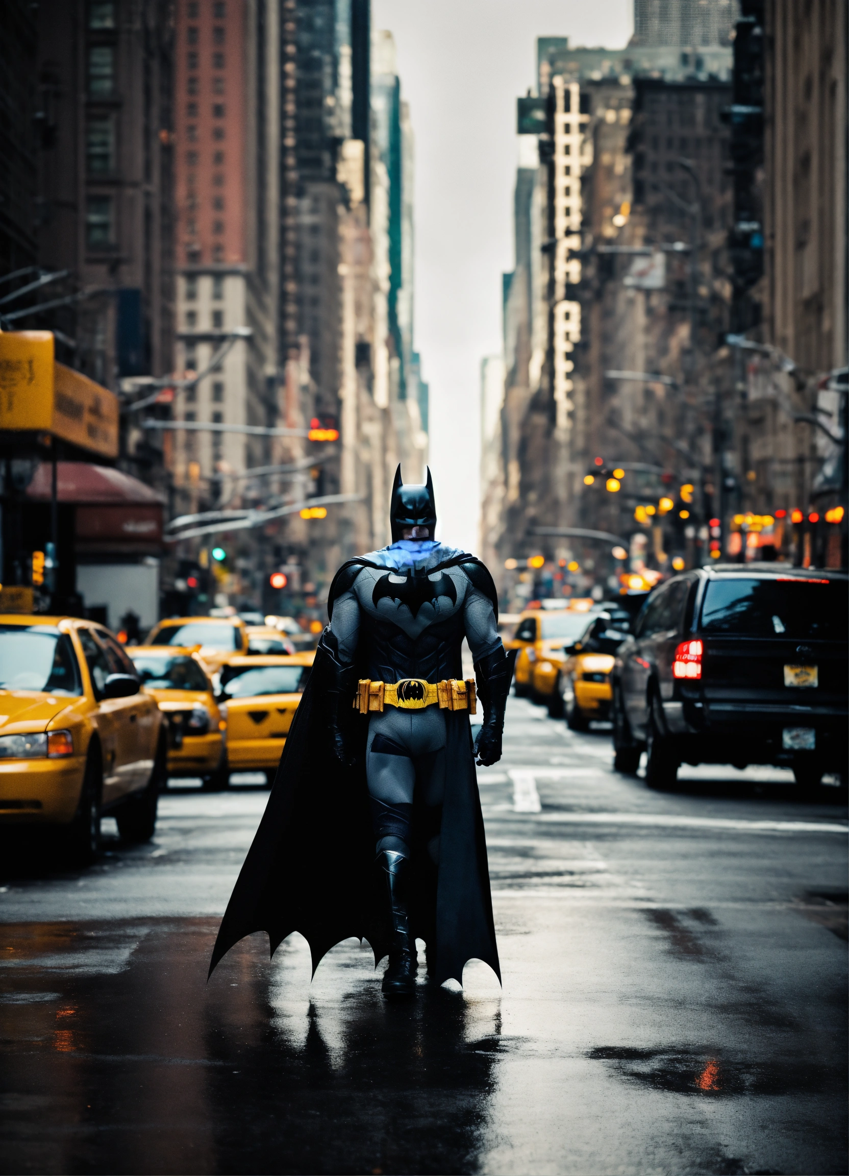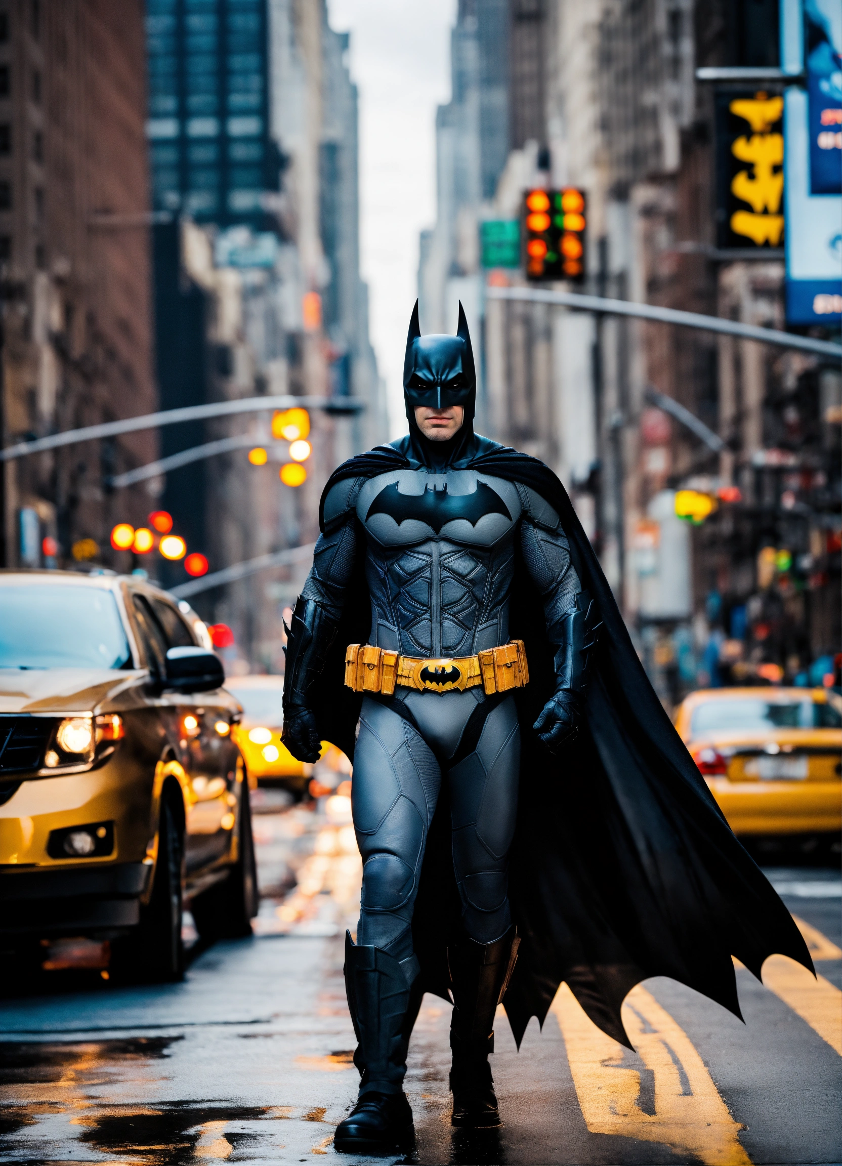 Batman walking through streets of new york