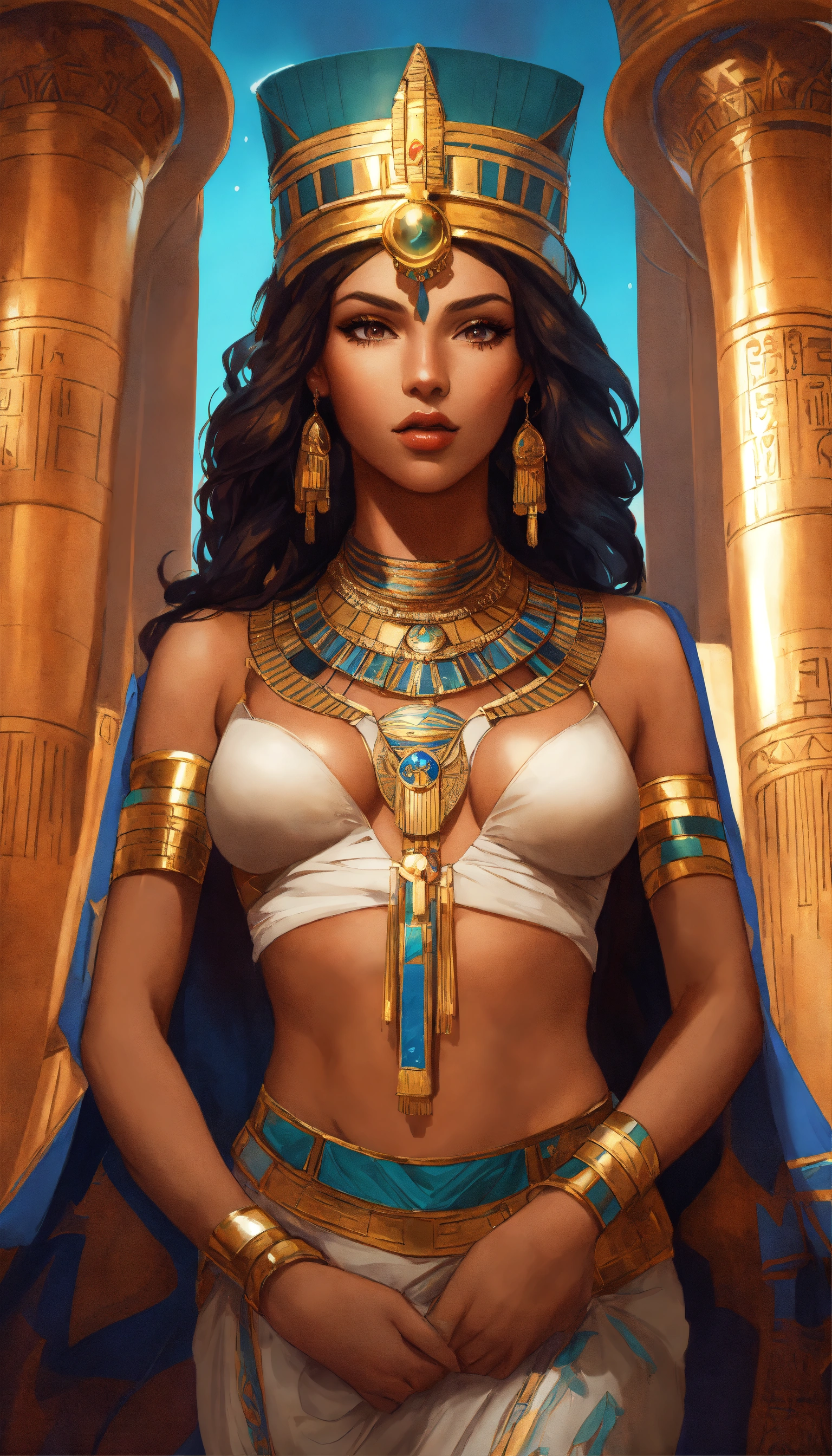 Portrait of a queen of egypt, stunning beautiful artwork, toned body, 8k, maximalist, by artgerm, 8k anime artwork, 8k photo, trending on art station