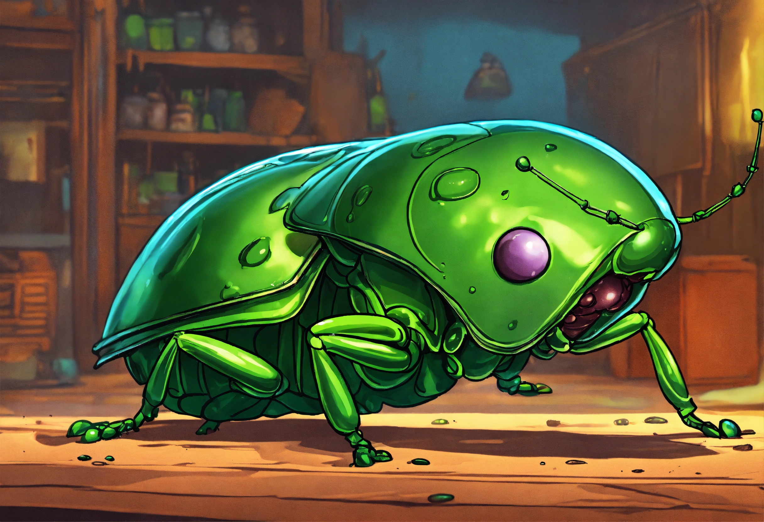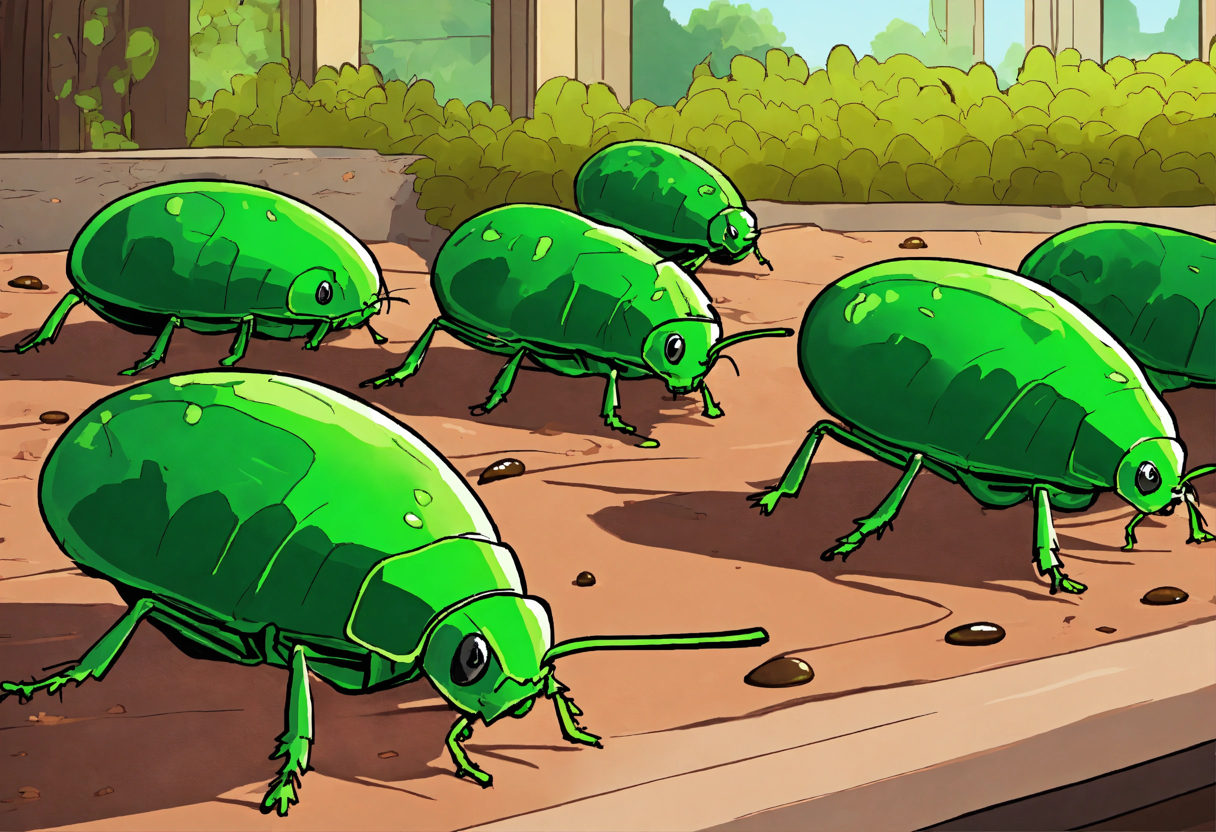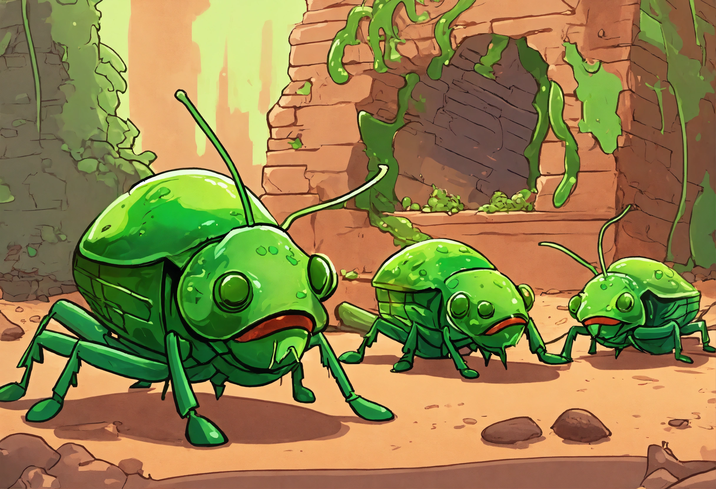Green ooze covering cockroaches, as they start growing in size and gaining human-like features. cartoon