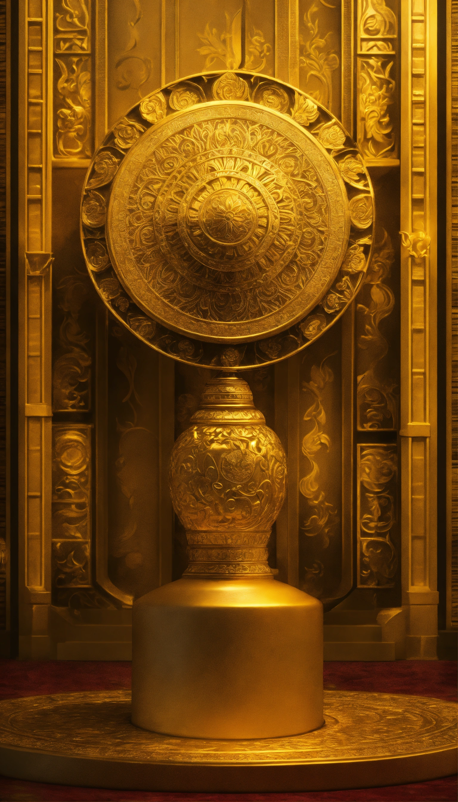 Antorcha poderosa, detallada, ilustración digital, real, 3d, antorcha de color dorada con una llama amarilla con blanco y detalles dorados, a cada lado de la antorcha hay alas detalladas y grandes, fondo luminoso de forma de mandala dorado, enfoque nítido, ilustración cinematográfica, 8k, pintura digitalhiperrealista, hd, alta calidad y resolución
