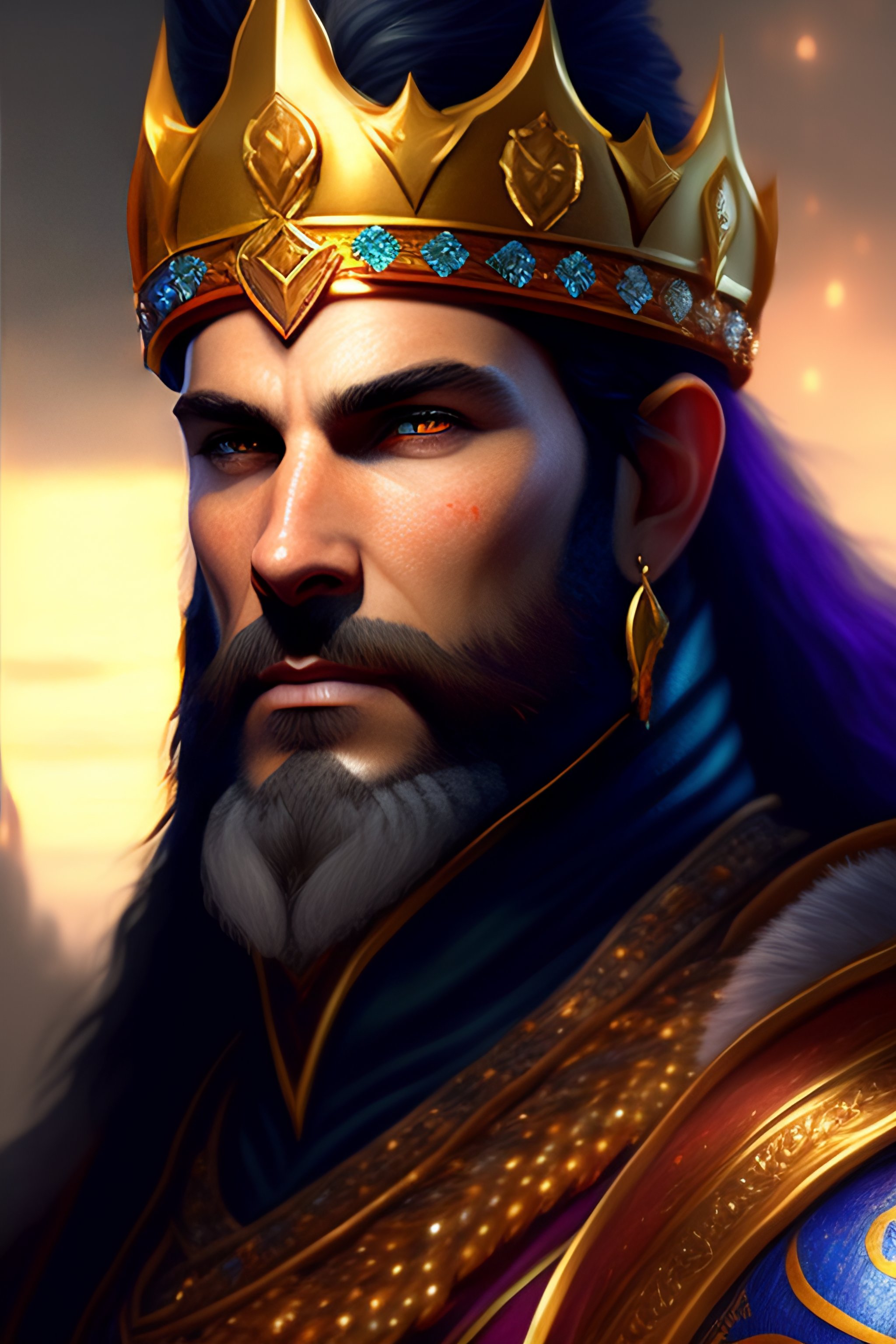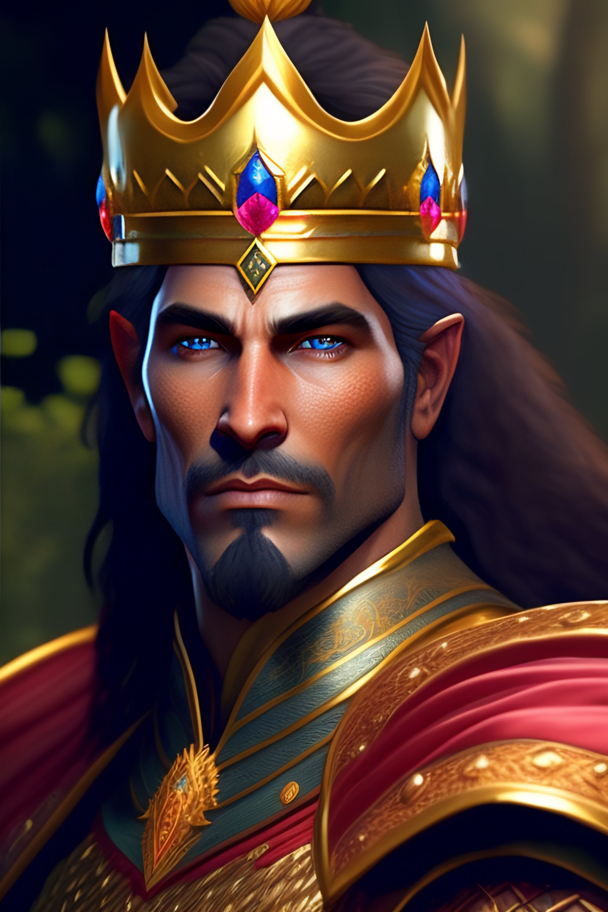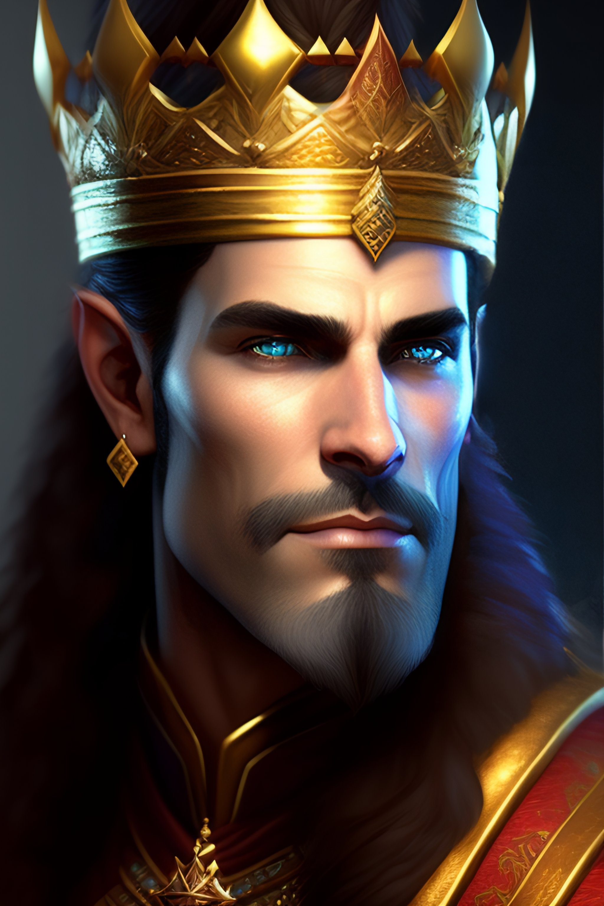 Good kind king wearing a crown, ultra detailed fantasy, dndbeyond, bright, colourful, realistic, dnd character portrait, full body, pathfinder, pinterest, art by ralph horsley, dnd, rpg, lotr game design fanart by concept art, behance hd, artstation, deviantart, hdr render in unreal engine 5