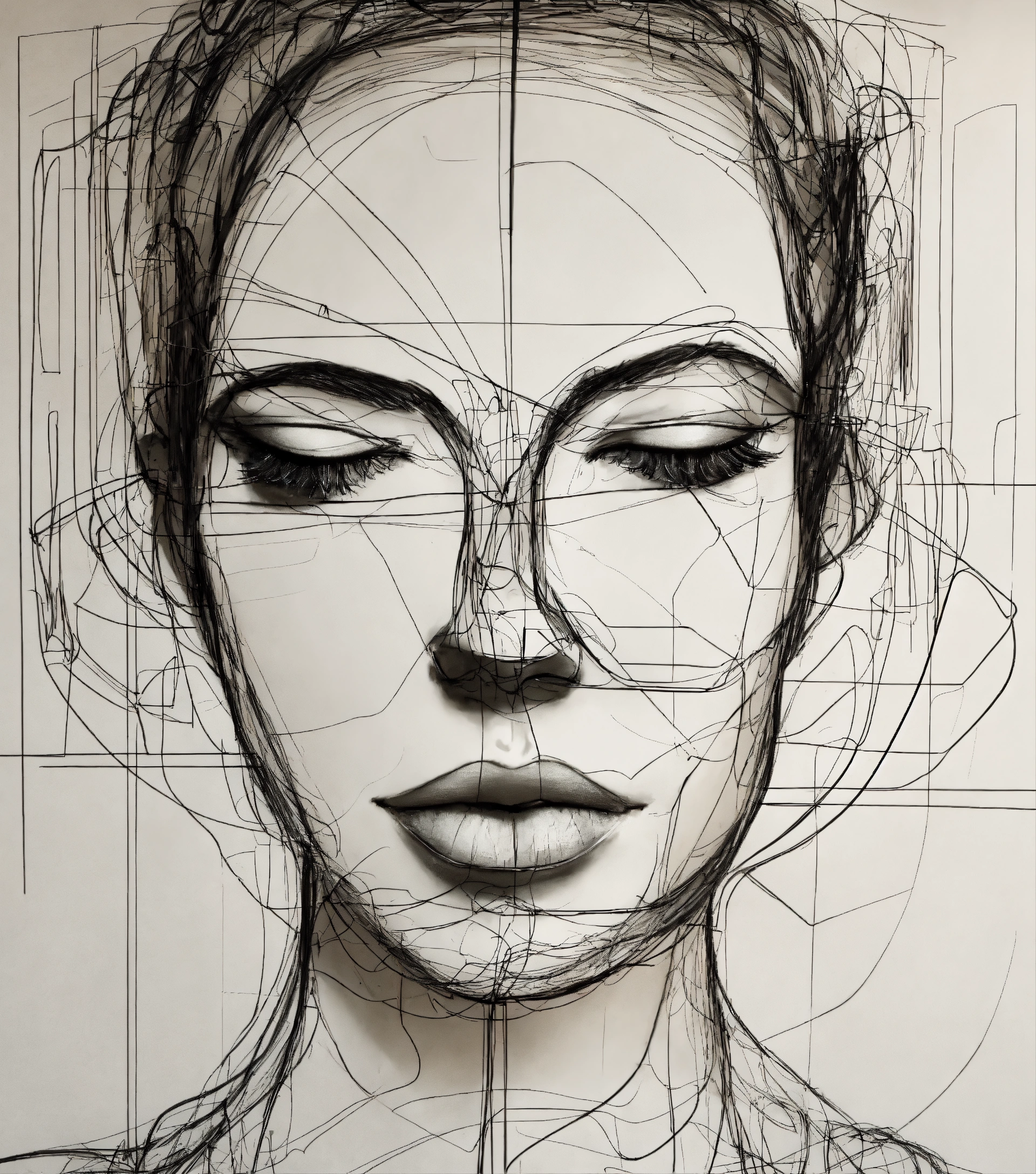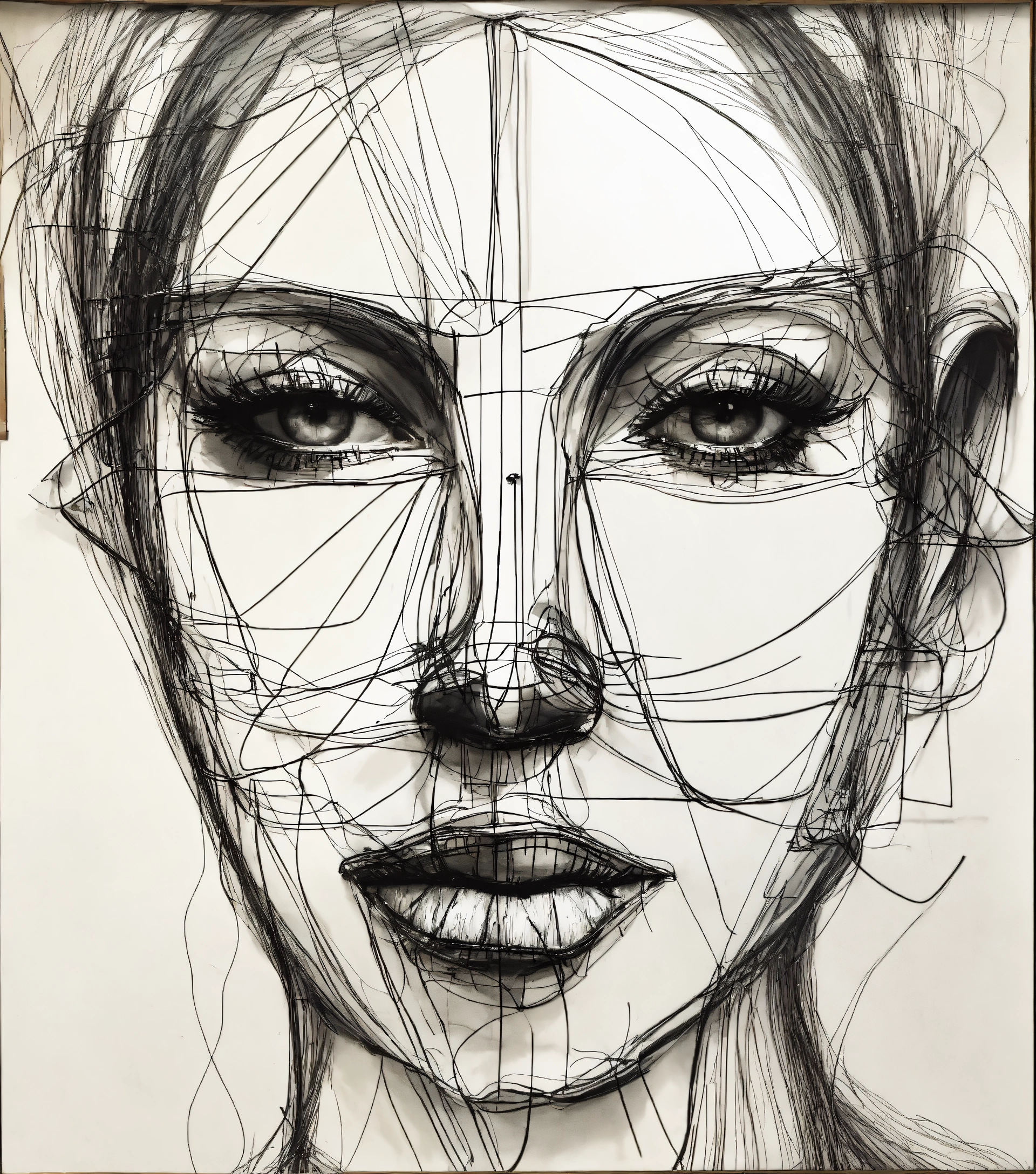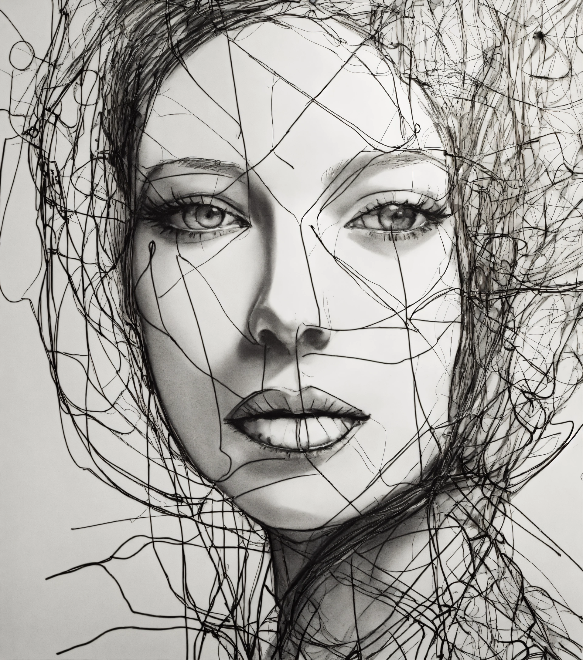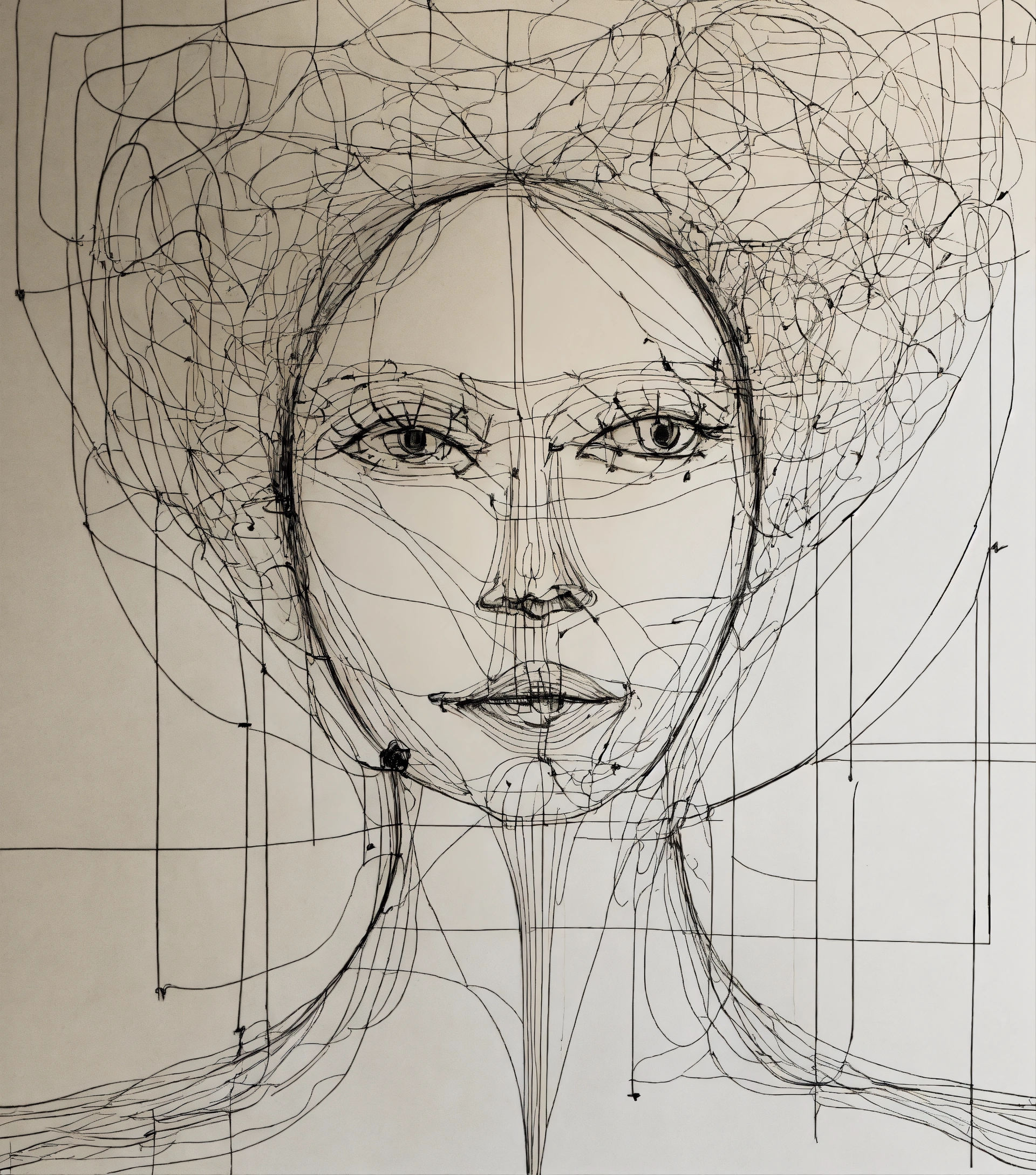 A line drawing of a woman's face, an abstract drawing by robert dickerson, shutterstock contest winner, figurativism, outlined art, made of wire, minimalist