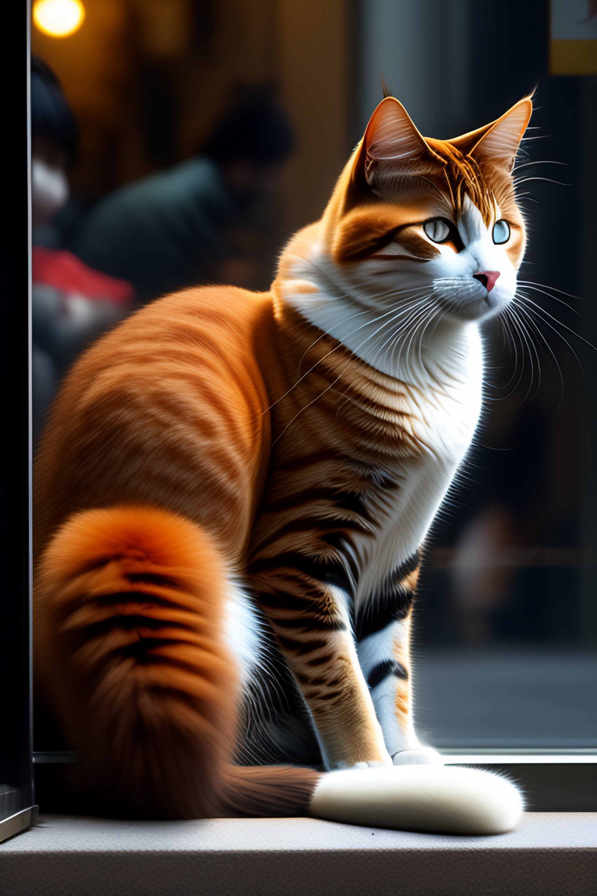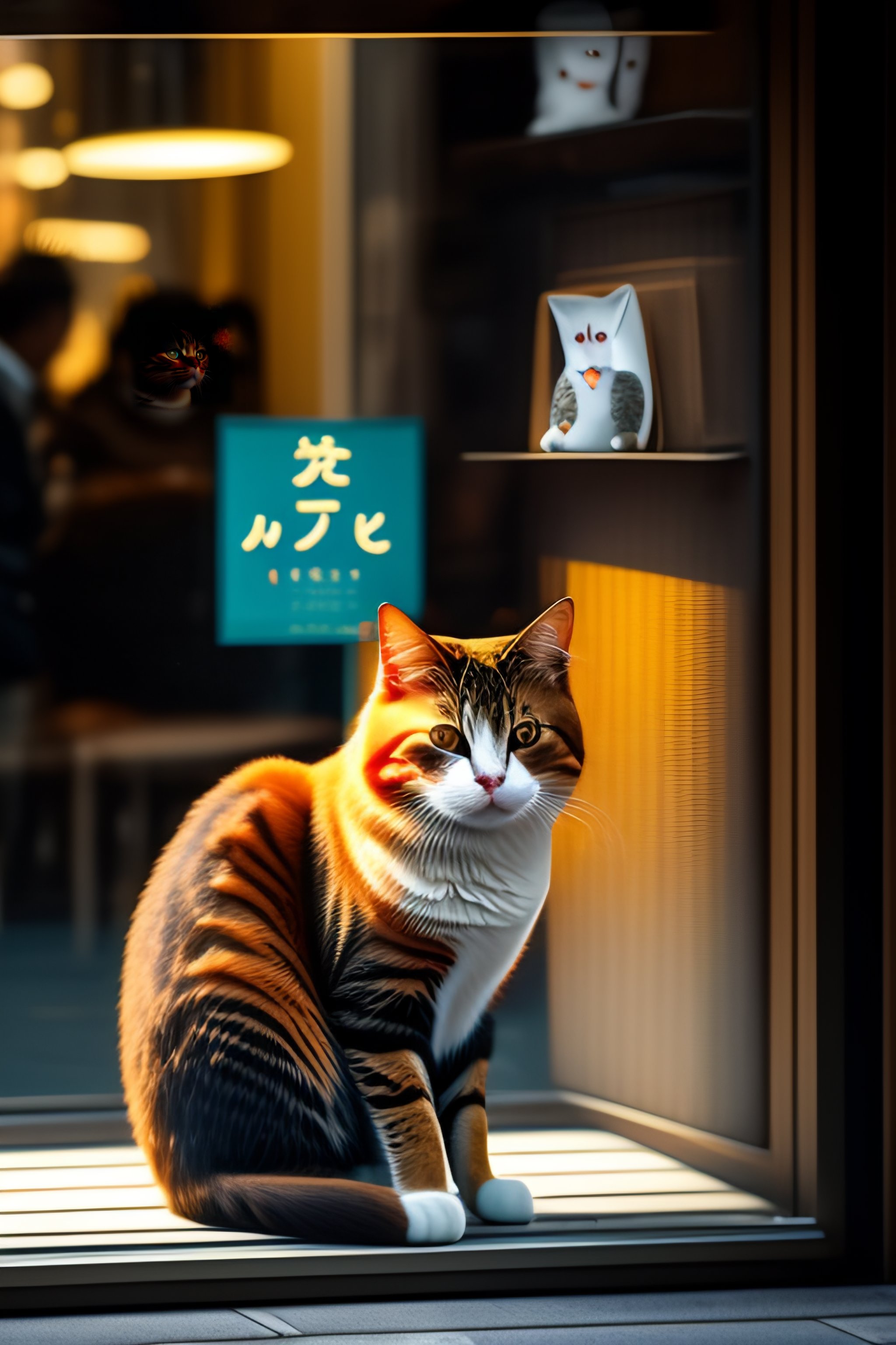 Meowing cat front of a shop window sit in tokyo
