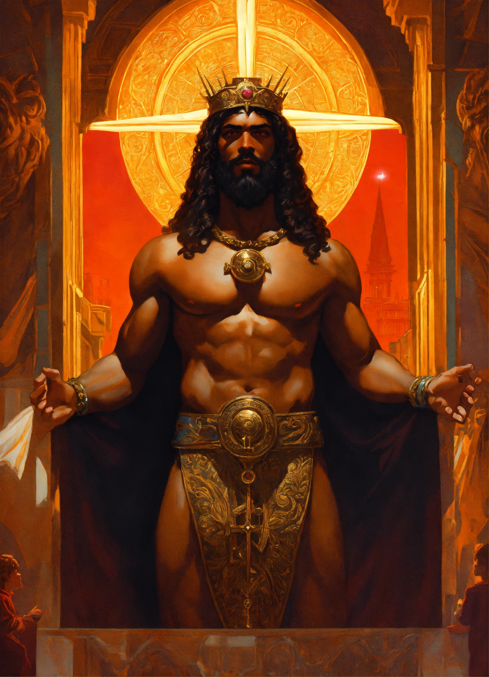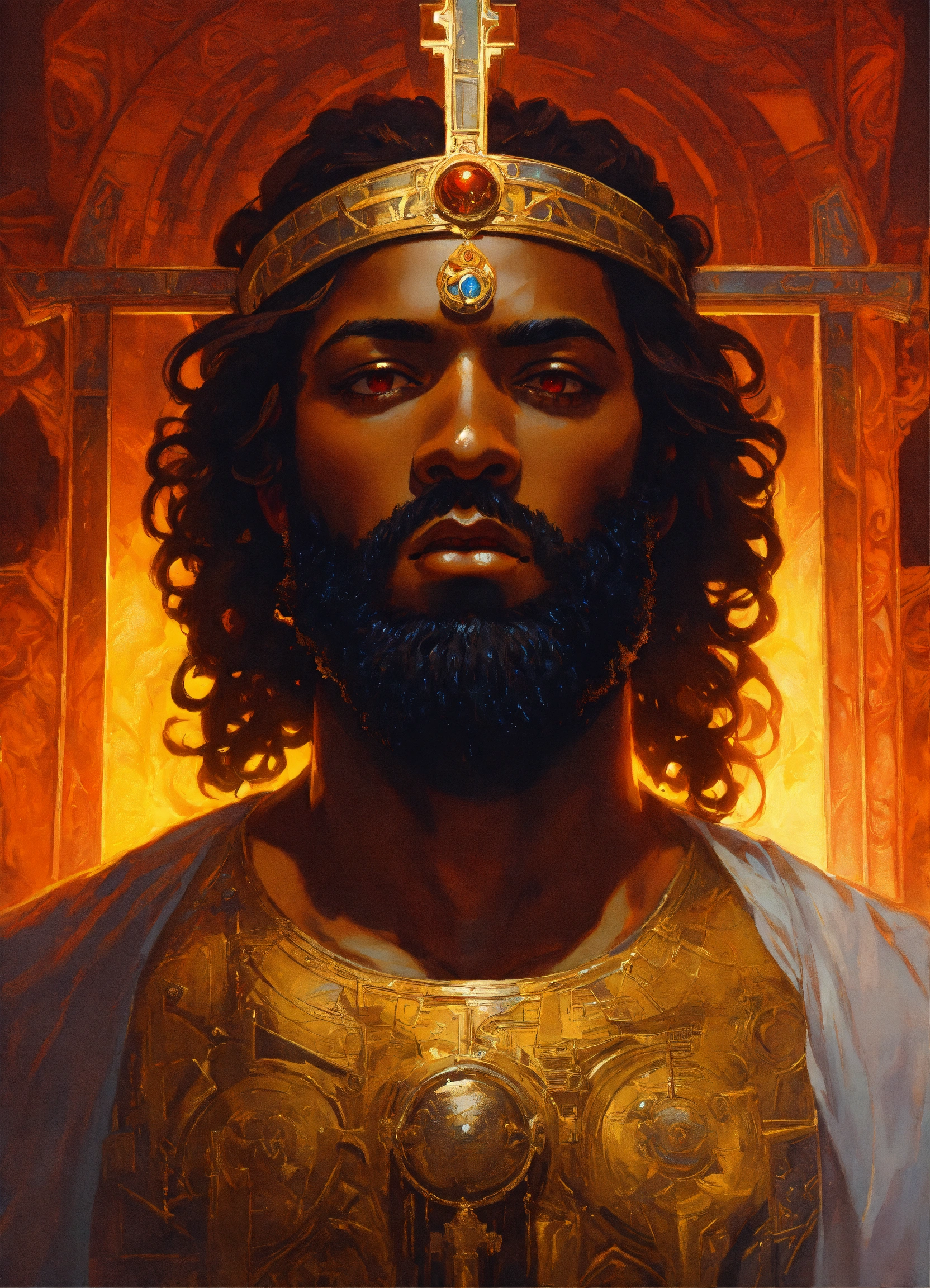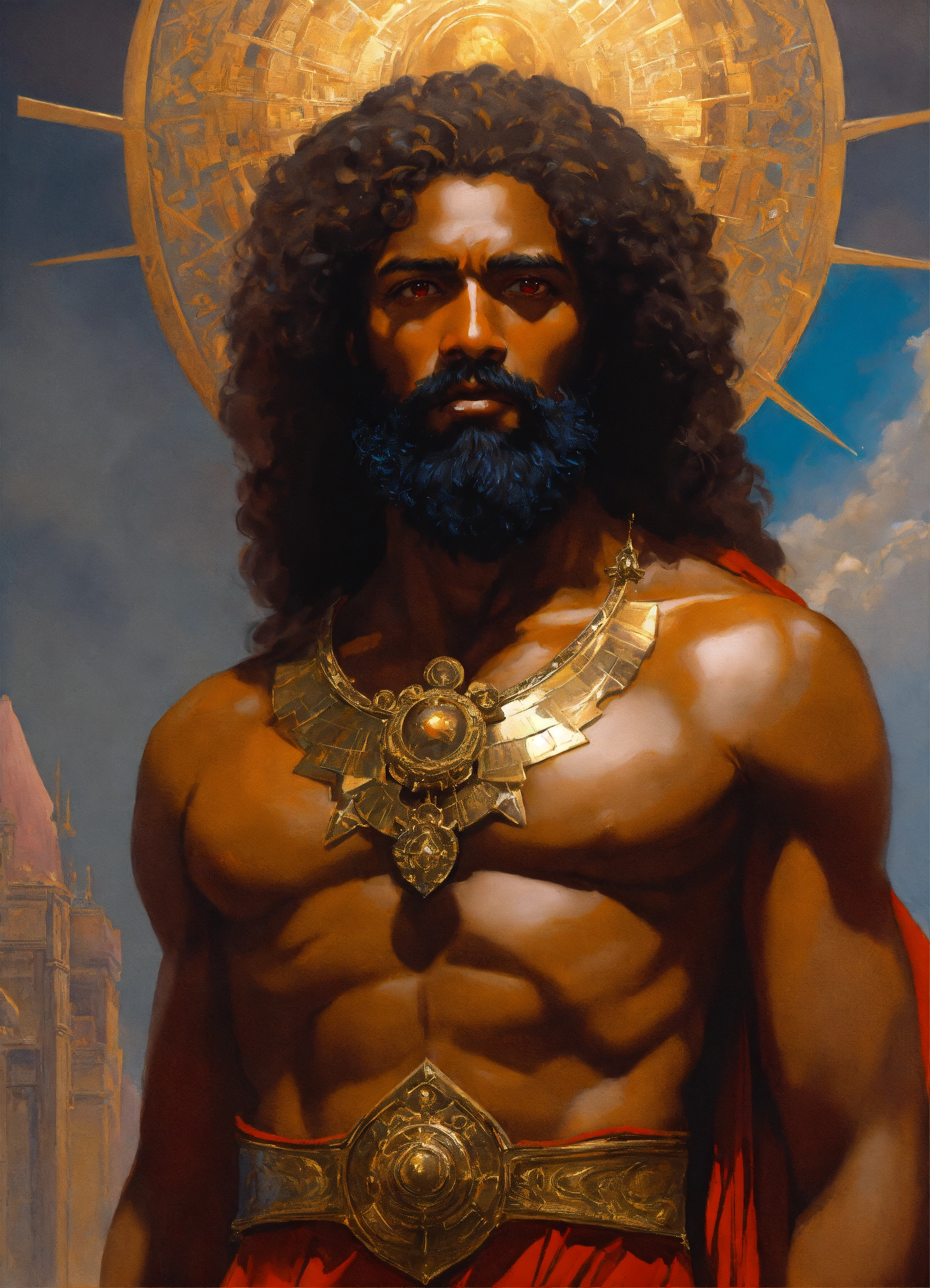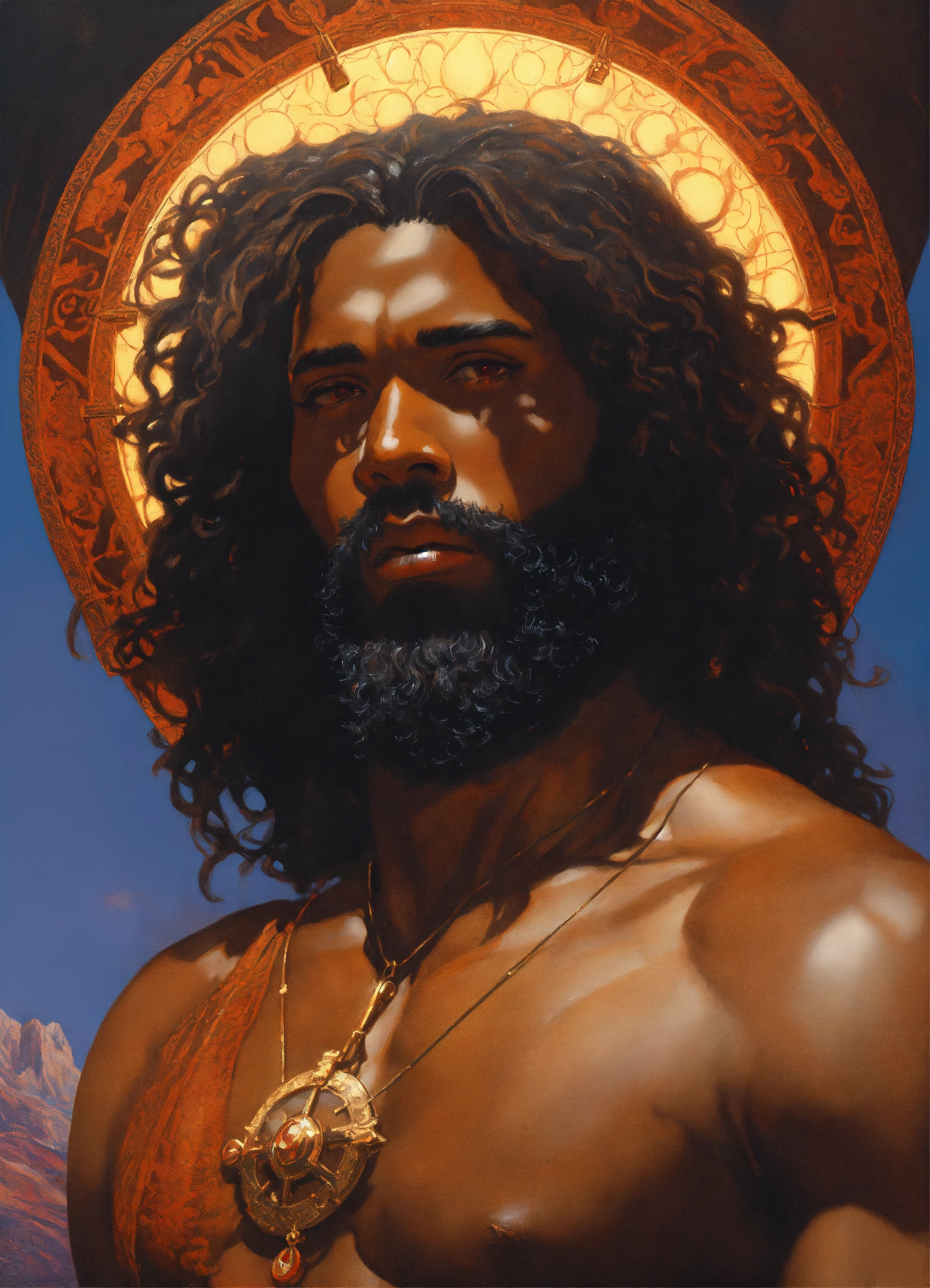 Black christ like neno brown red eyes dark skin white whooly hair and beard cinematic portrait of a god, only head and chest, exotic god features, desaturated, tim hildebrandt, wayne barlowe, bruce pennington, donato giancola, larry elmore, maxfield parrish, moebius, thomas ehretsmann, oil on canvas, gouache painting, masterpiece, trending on artstation, cinematic composition, dramatic pose, beautiful lighting, sharp, details, hyper-detailed, hd, 4k, 8k