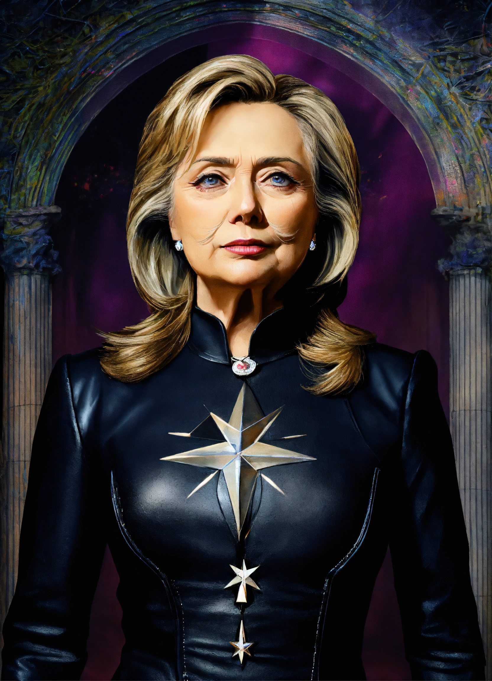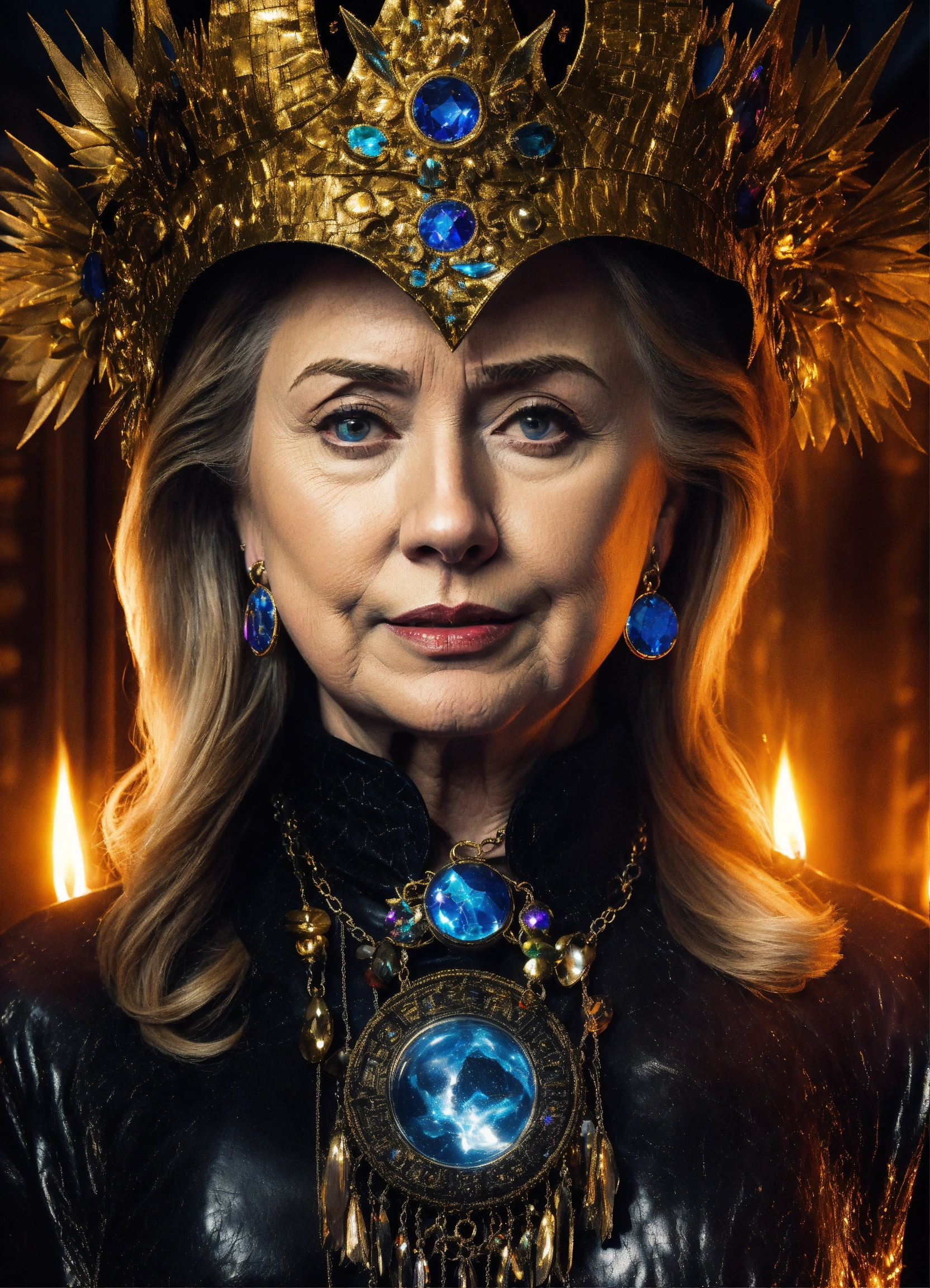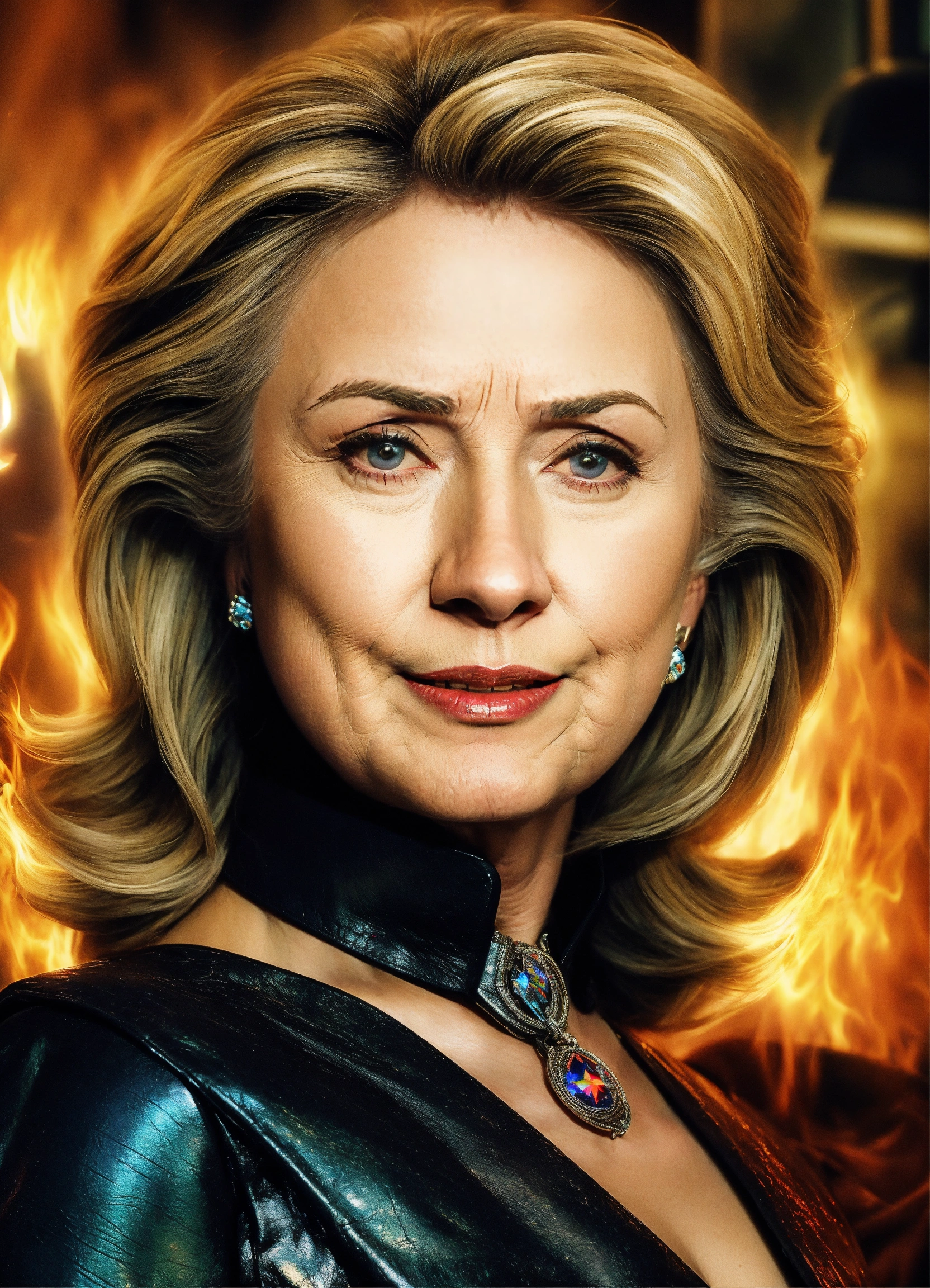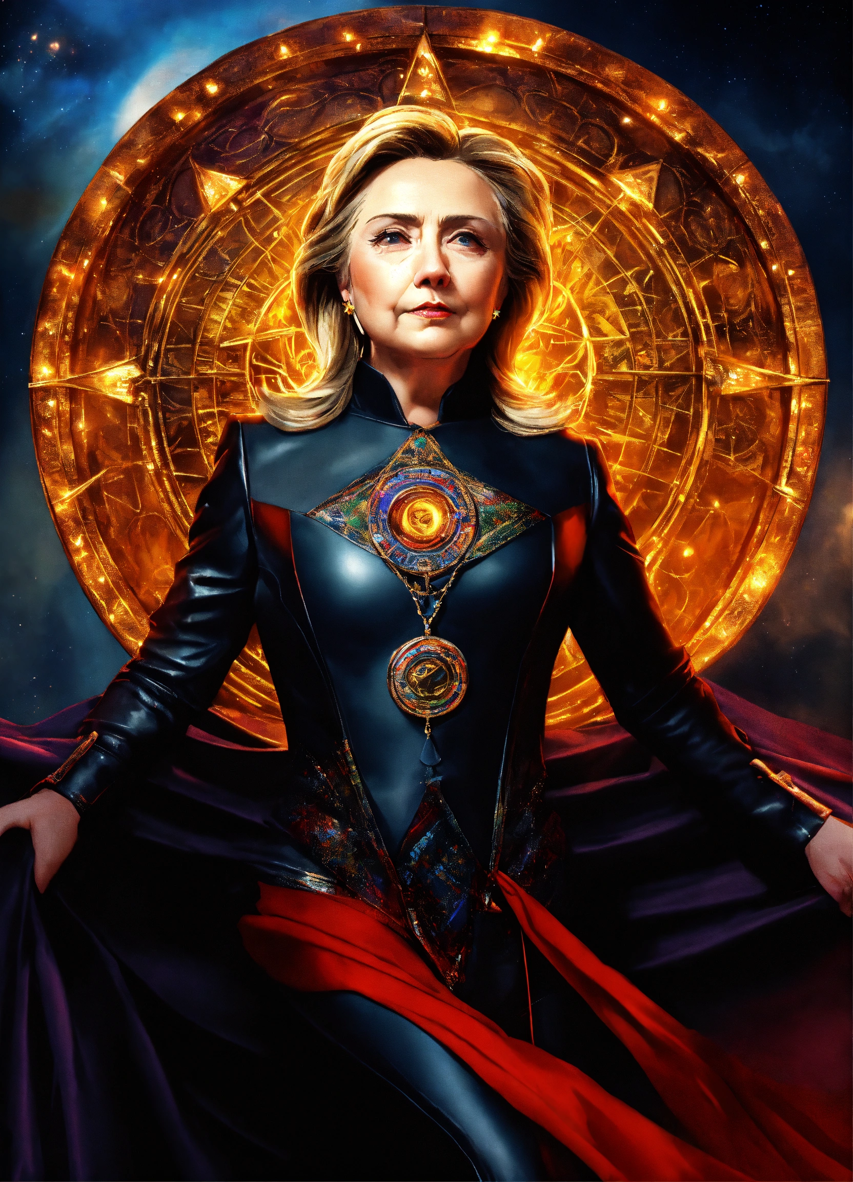 Goddess hillary clinton as morgan le fay the powerful dark satanic supernatural sorceress witch with mind control powers, mistress of the dark occult arts, wearing holographic black leather outfit, holographic black leather boots & black leather gloves, pentacle amulet necklace, casting a powerful mesmerizing spell on the masses, hillary clinton is the most powerful witch in the world, now casting a spell on me, i feel her power grow, hypnotic hour glass figure, hillary clinton controls every thought in my mind, so powerful, i can not resist hillary clinton's power, i crave to please hillary clinton, hillary clinton's gaze weaves dreams & illusions, she conjures a vortex of energy to envelope me, hillary clinton exudes dominating ultimate magical power & energy, goddess hillary clinton can can manipulate the fabric of reality with a snap of her fingers, hillary clinton's hypnotizing eyes can burn a hole in my soul forever, so powerful, a prisoner captured in her eyes