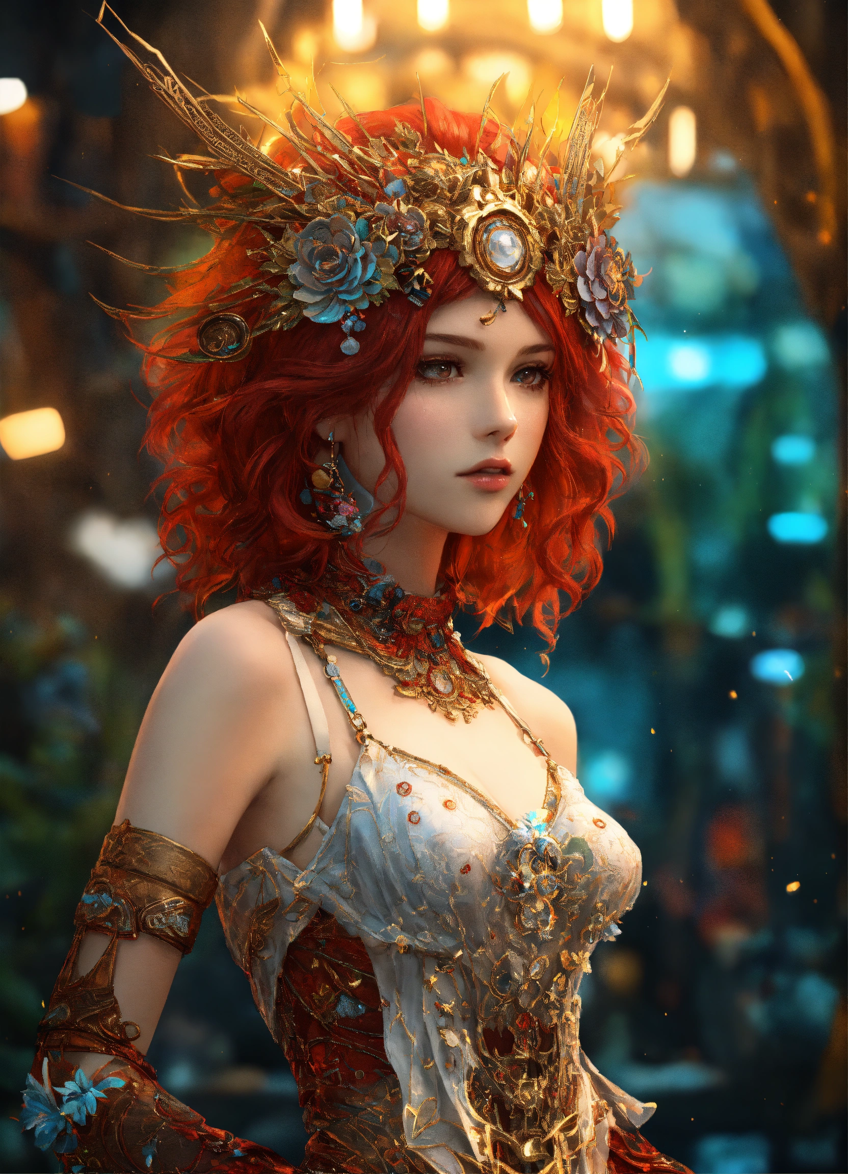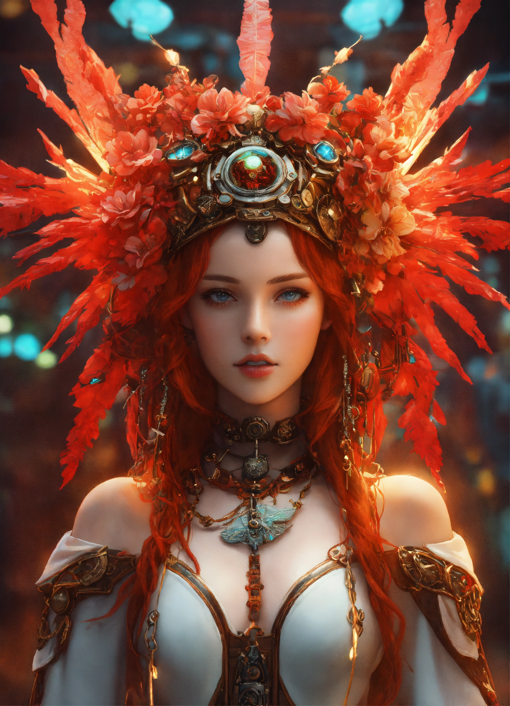 Firika mia shatana, nuki doki!, young pale skinny white girl, red hair, full body, cover, hyperdetailed painting, luminism, bar lighting, complex, 4k resolution, realistic steampunk, fractal isometrics details bioluminescens a stunning realistic photograph 30 years, redhead, awesome with big white flowers tiara of wet bone structure, 3d render, octane render, intricately detailed, titanium decorative headdress, cinematic, trending on artstation | isometric | centered hipereallistic cover photo awesome full color, hand drawn, dark, gritty, hit definition, cinematic, rough sketch, mix of bold dark lines and loose lines, bold lines, on paper, full body with succubusgirl dress, humanoid, full body.