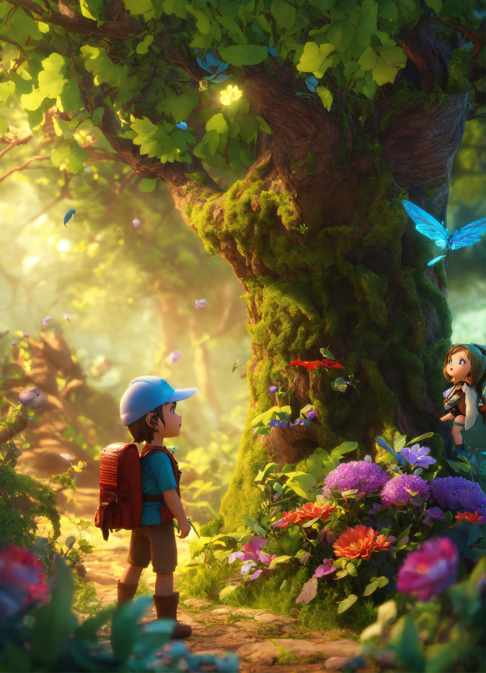 Battle, explorers, transformed forest, strongest trees, united animals, forest magic, protect home, vine barriers, enchanted flowers, powerful winds, 3d realistic animation for kid, 3d character, ebook, colored