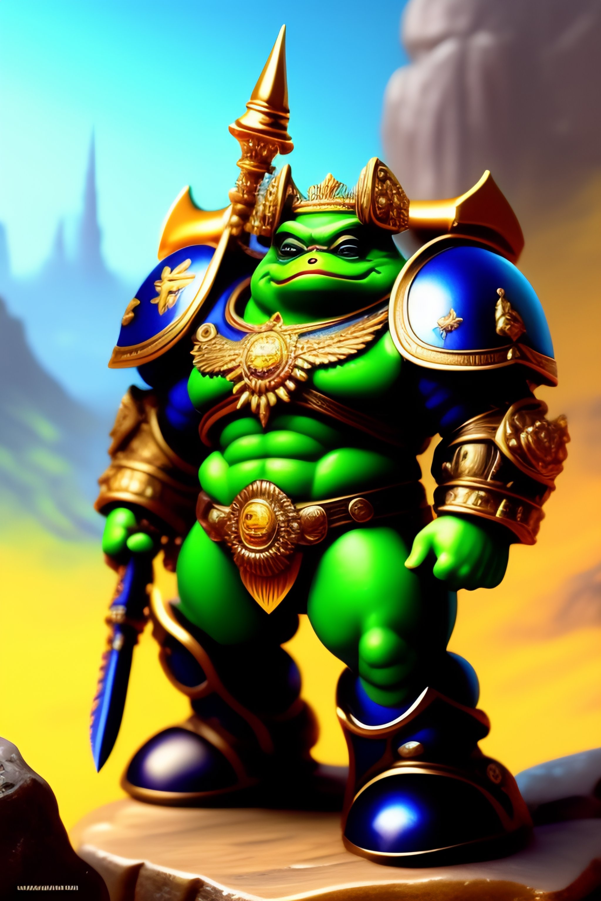Pepe the frog as the god emperor of mankind, warhammer 4 0 k universe, immense detail, by john blanche