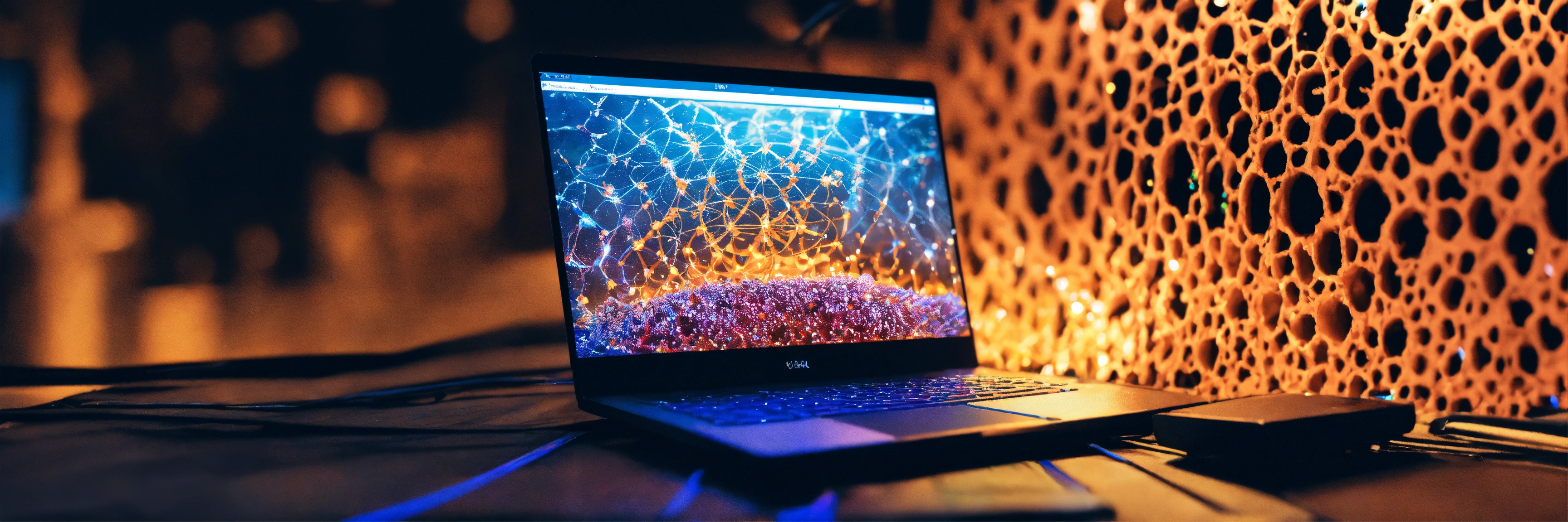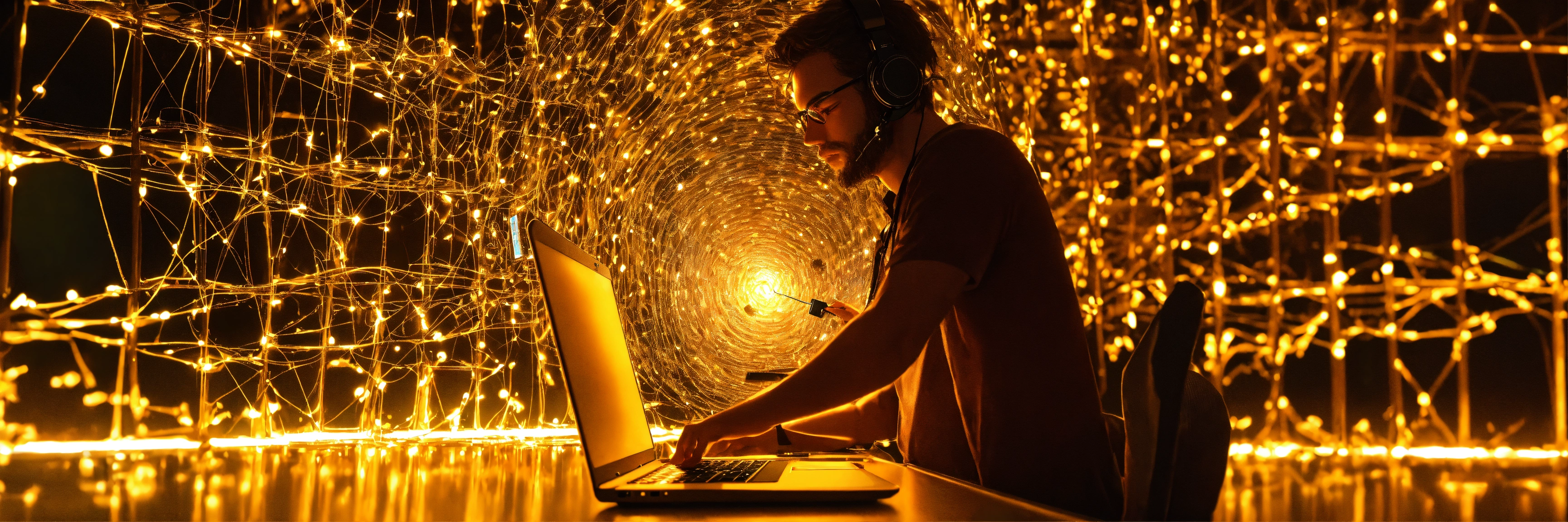 A nordic guy typing on at a laptop a night, programming, software development, functional programming, functions, synaptic, alive, neural networks, mesh, arrays, modular, electrons, nanotechnology, tiny machines, prime numbers, mathematical, microscopic, hard surface, chemical reaction, emf, ultra-fine detail, elaborate patterns, intricate designs, particles, ultrasharp, electromagnatism, brownian motion, realistic photography, 4k professional photography, deep refraction, radiolaria