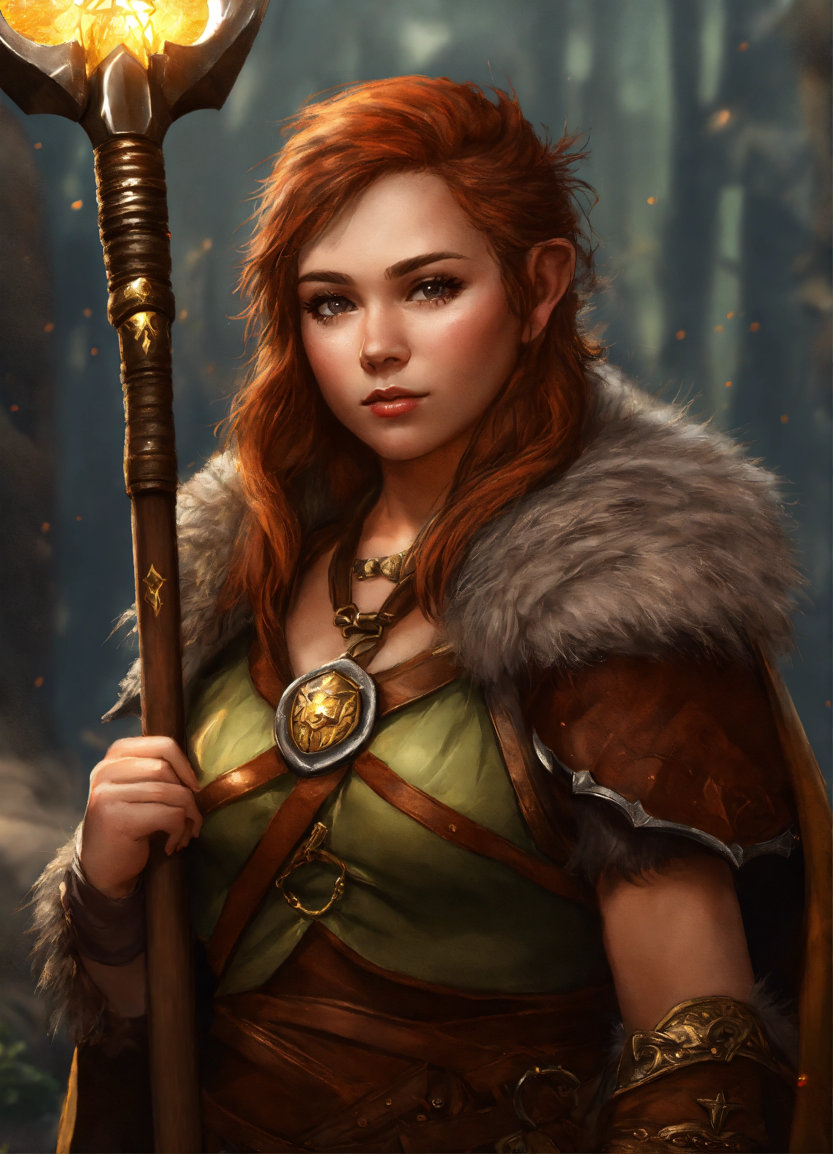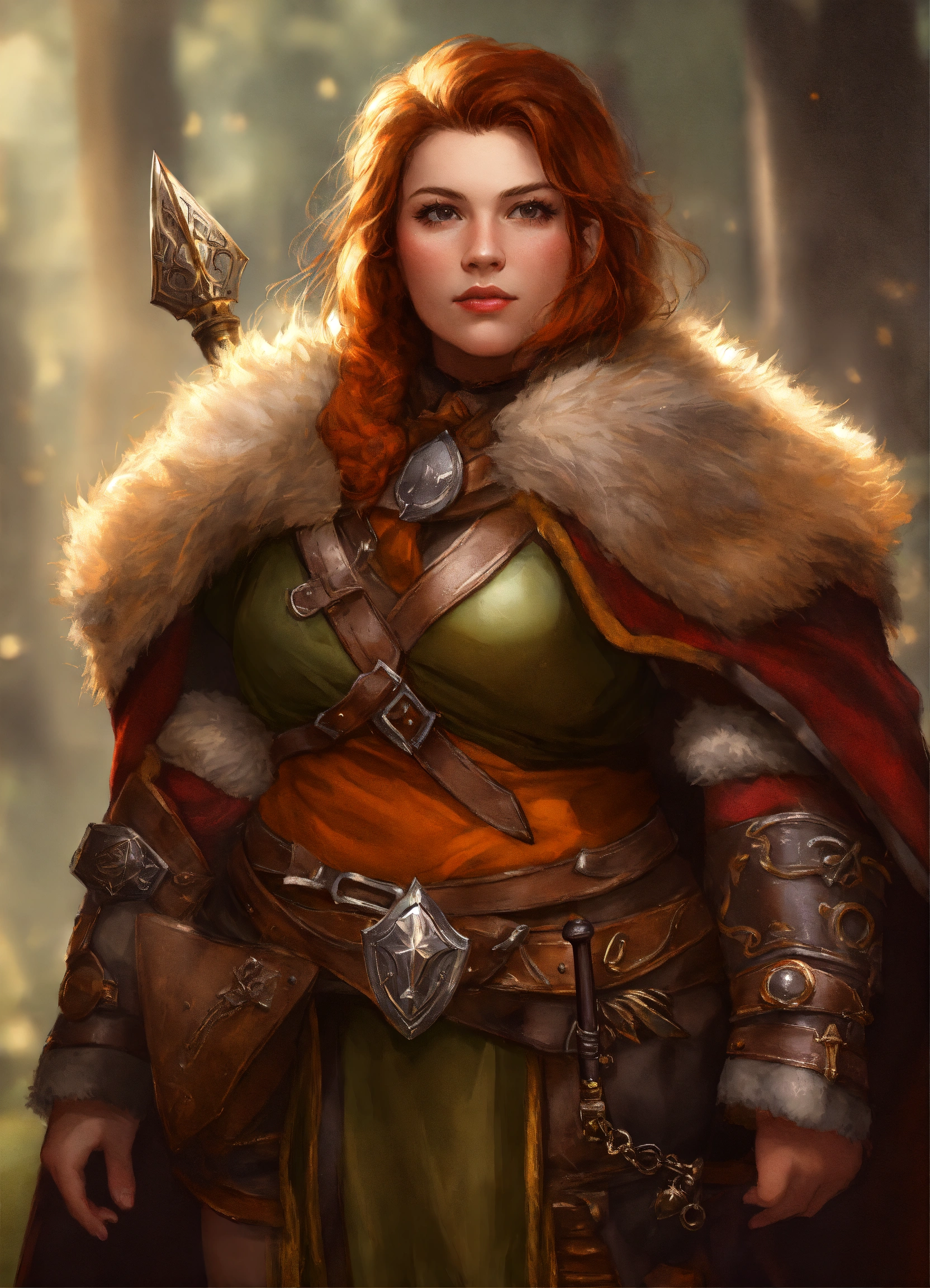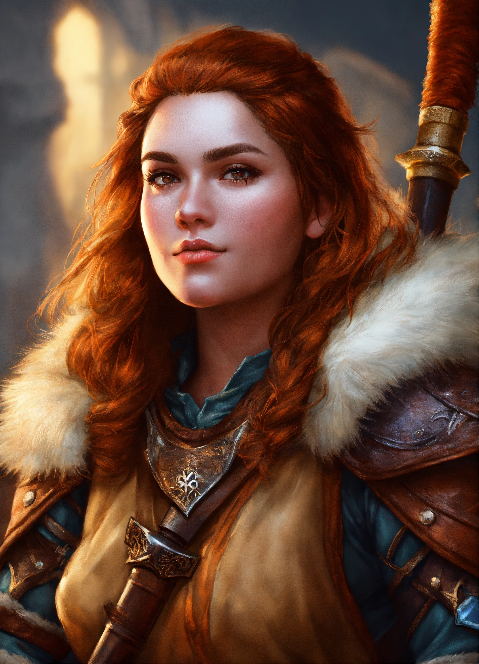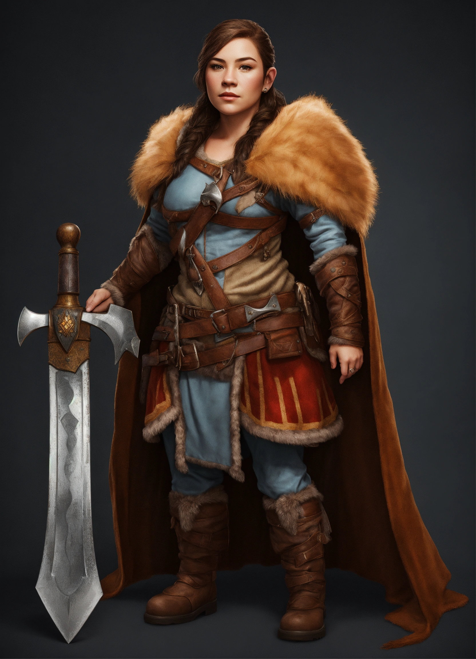 Realistic portrait female dwarf with fur cape and a greataxe avatar