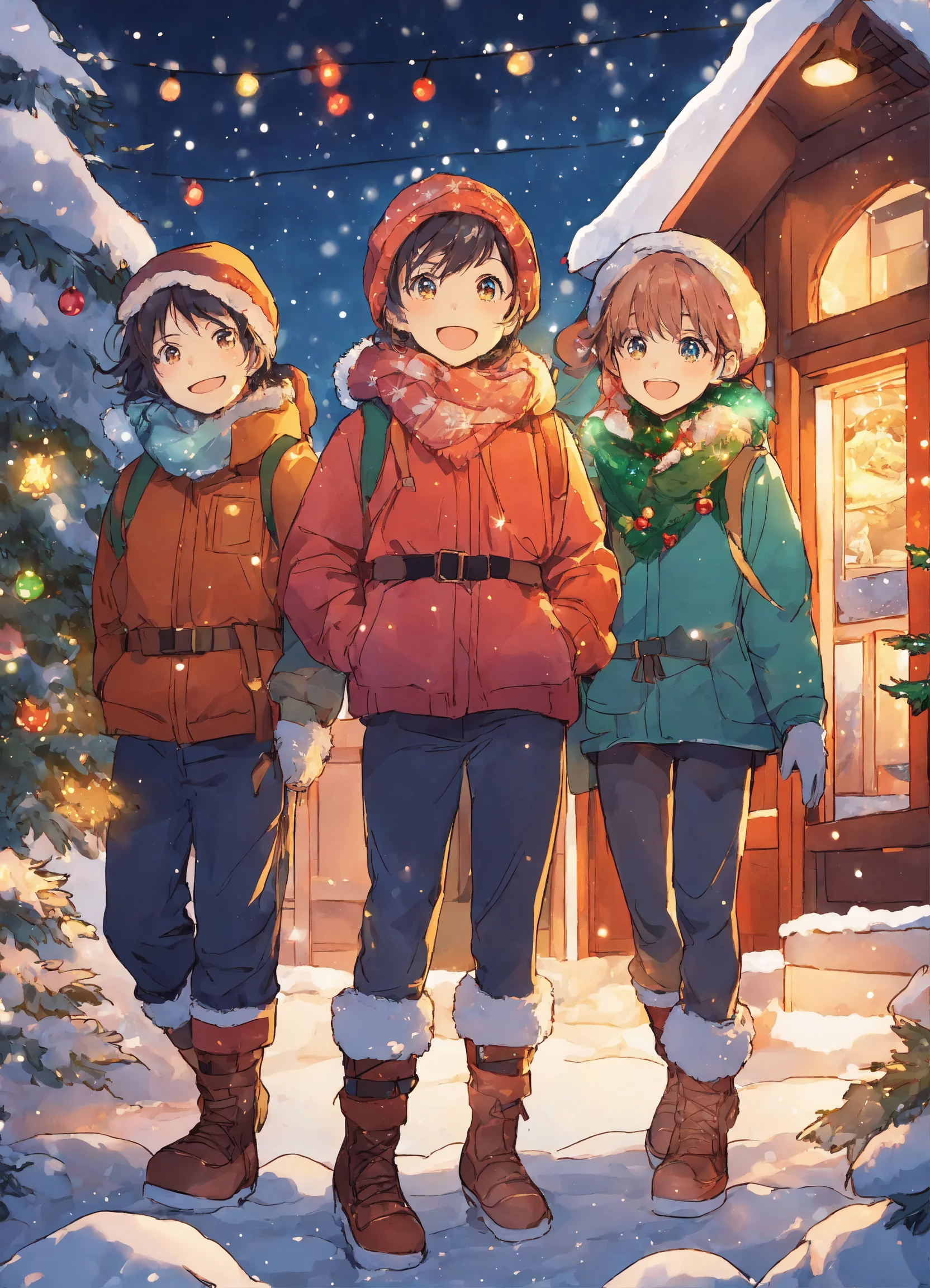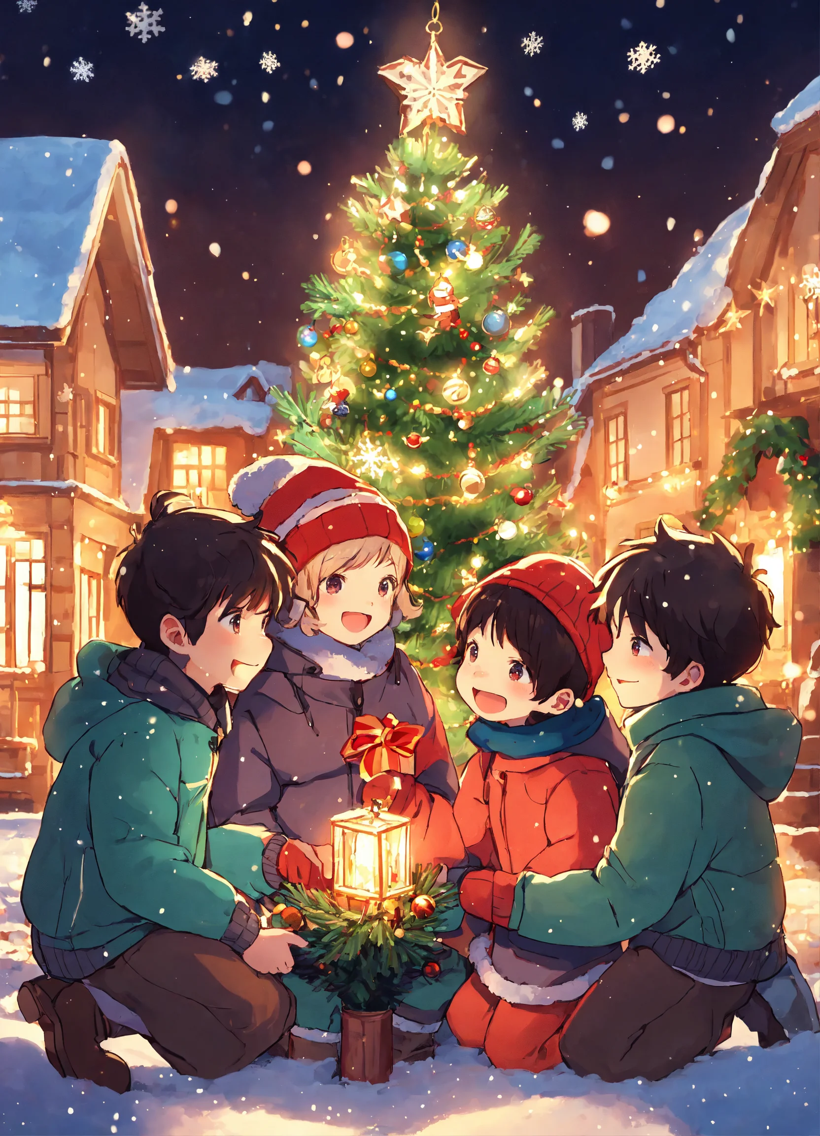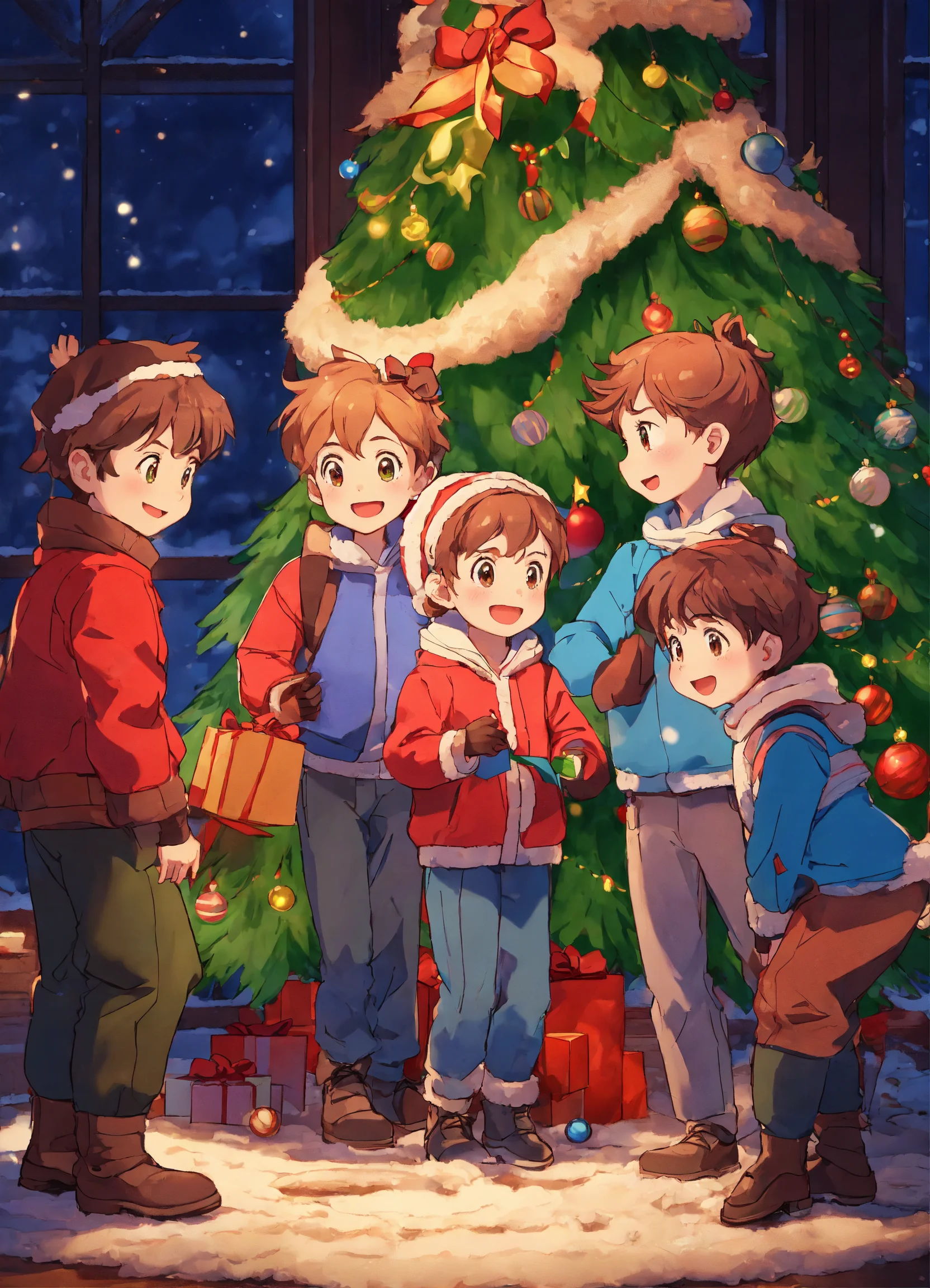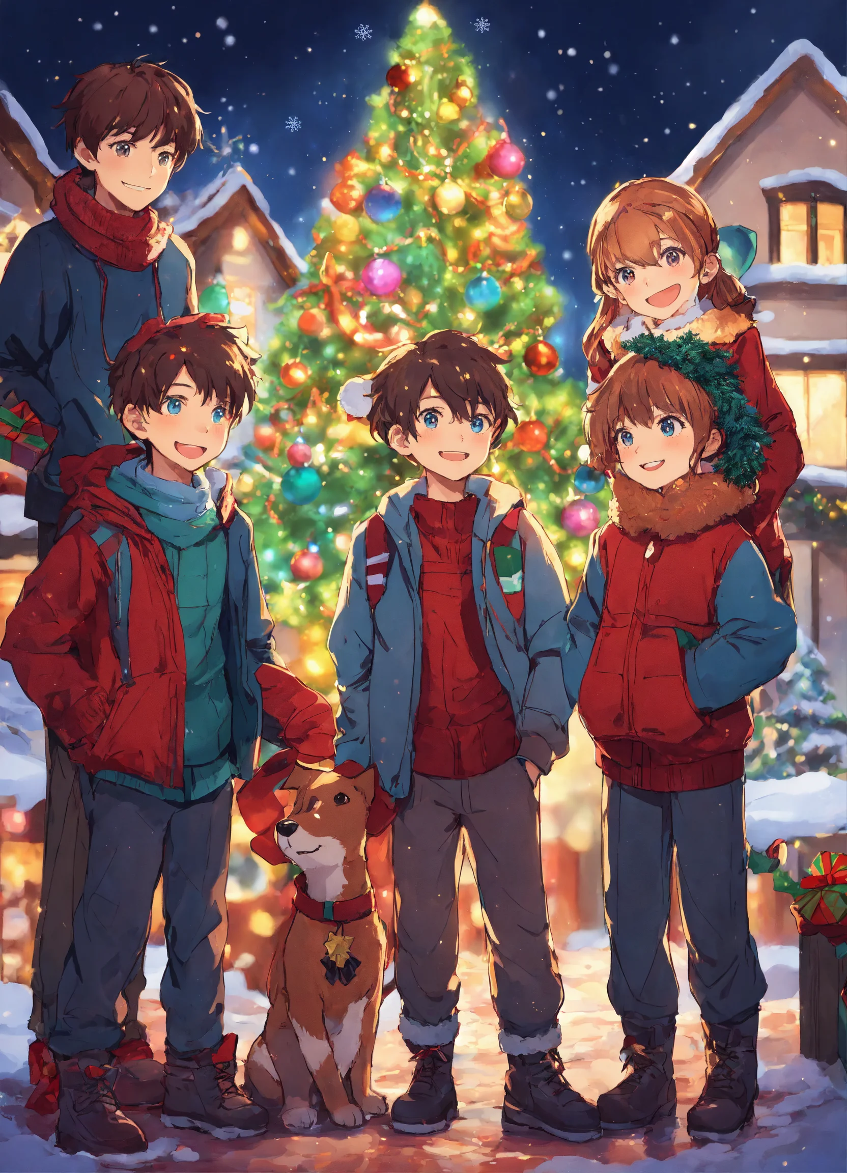 5 boys and a girl at christmas anime style image