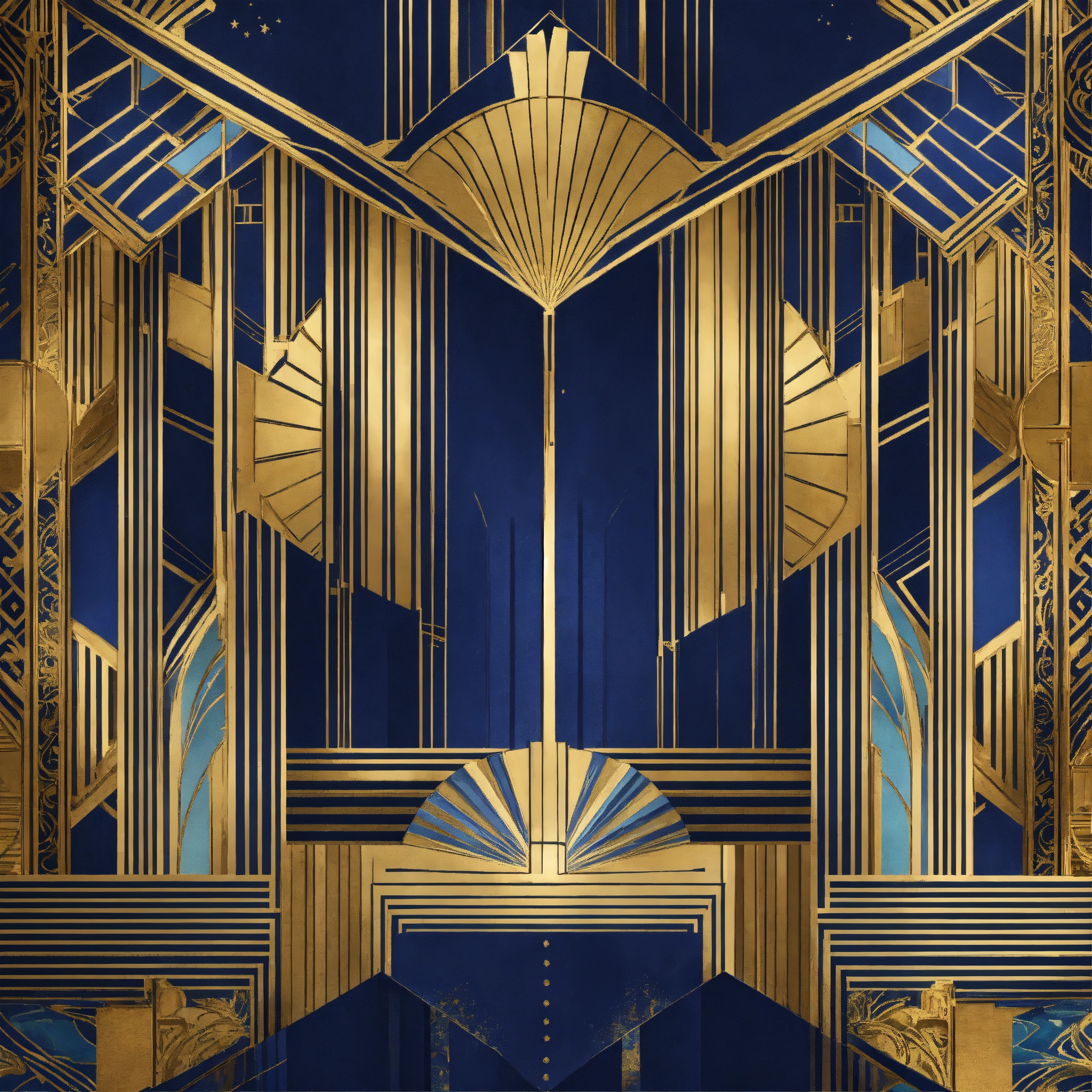 Art deco graphics blue gold