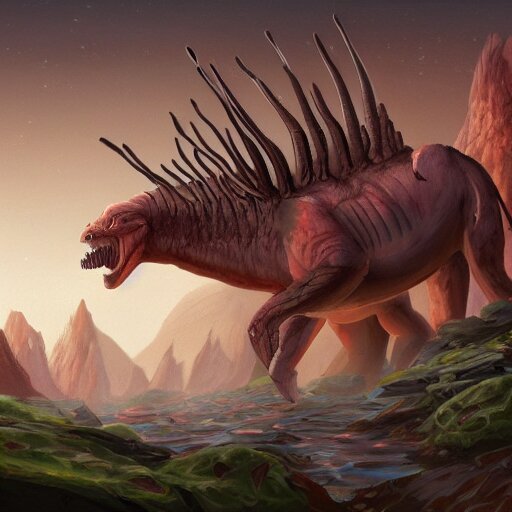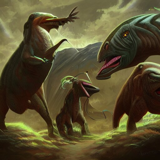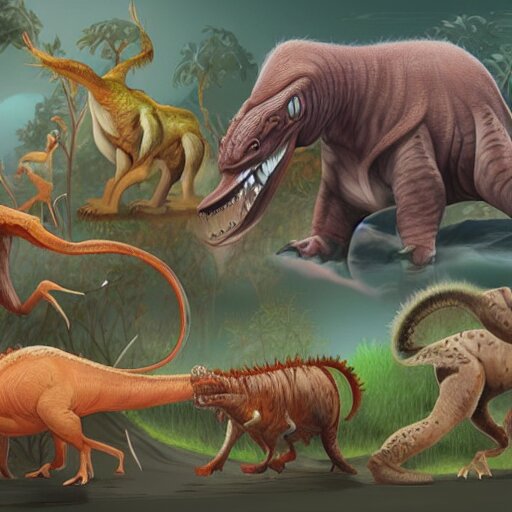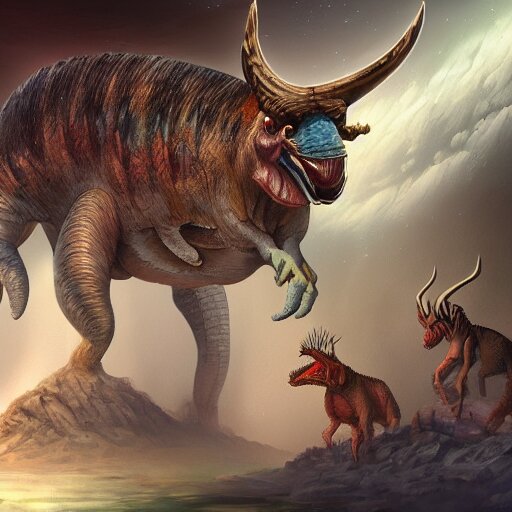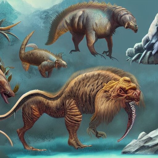 Prehistoric animals from another planet, digital painting, ultradetailed, artstation, oil painting, ultradetailed, artstation