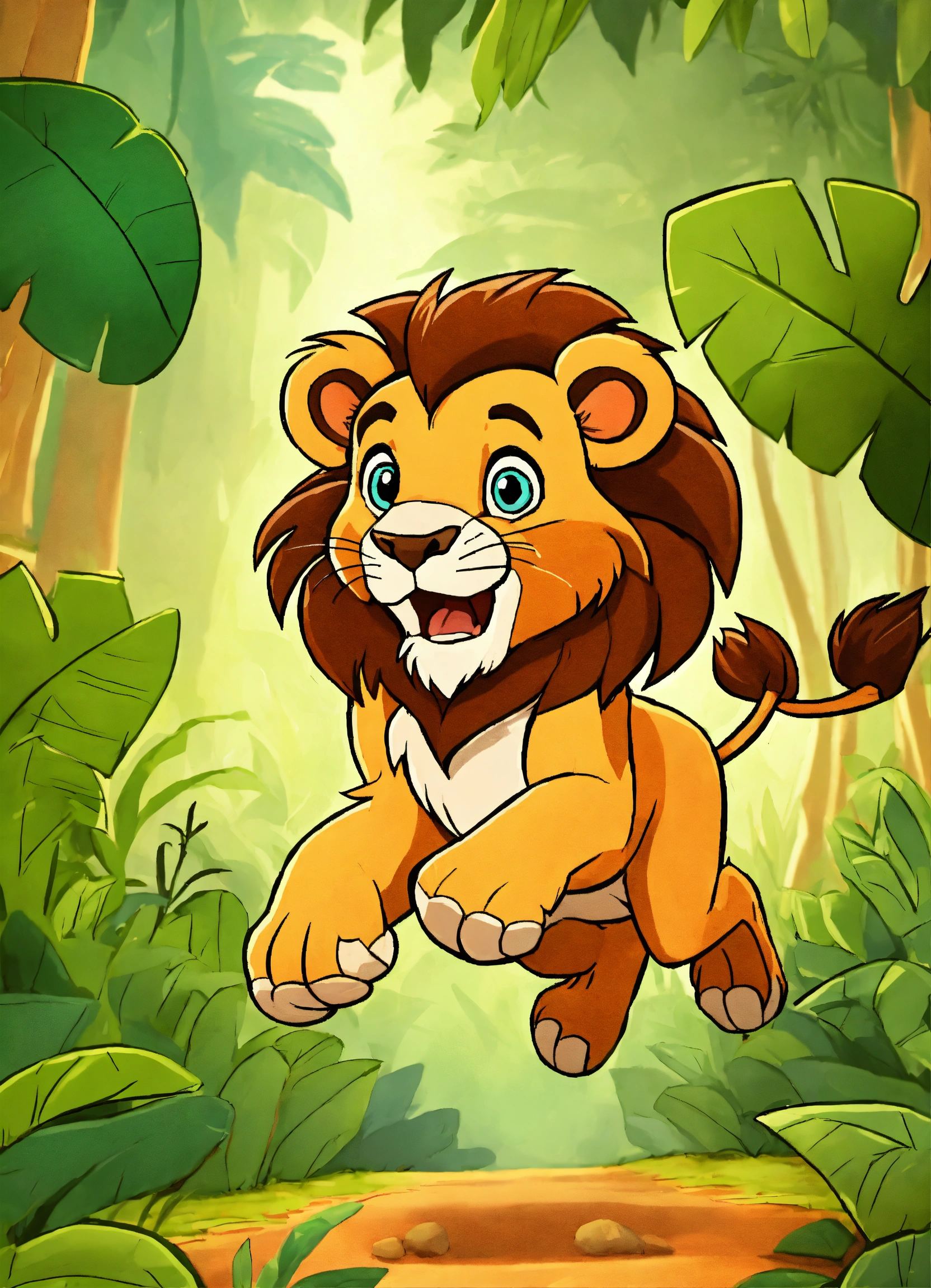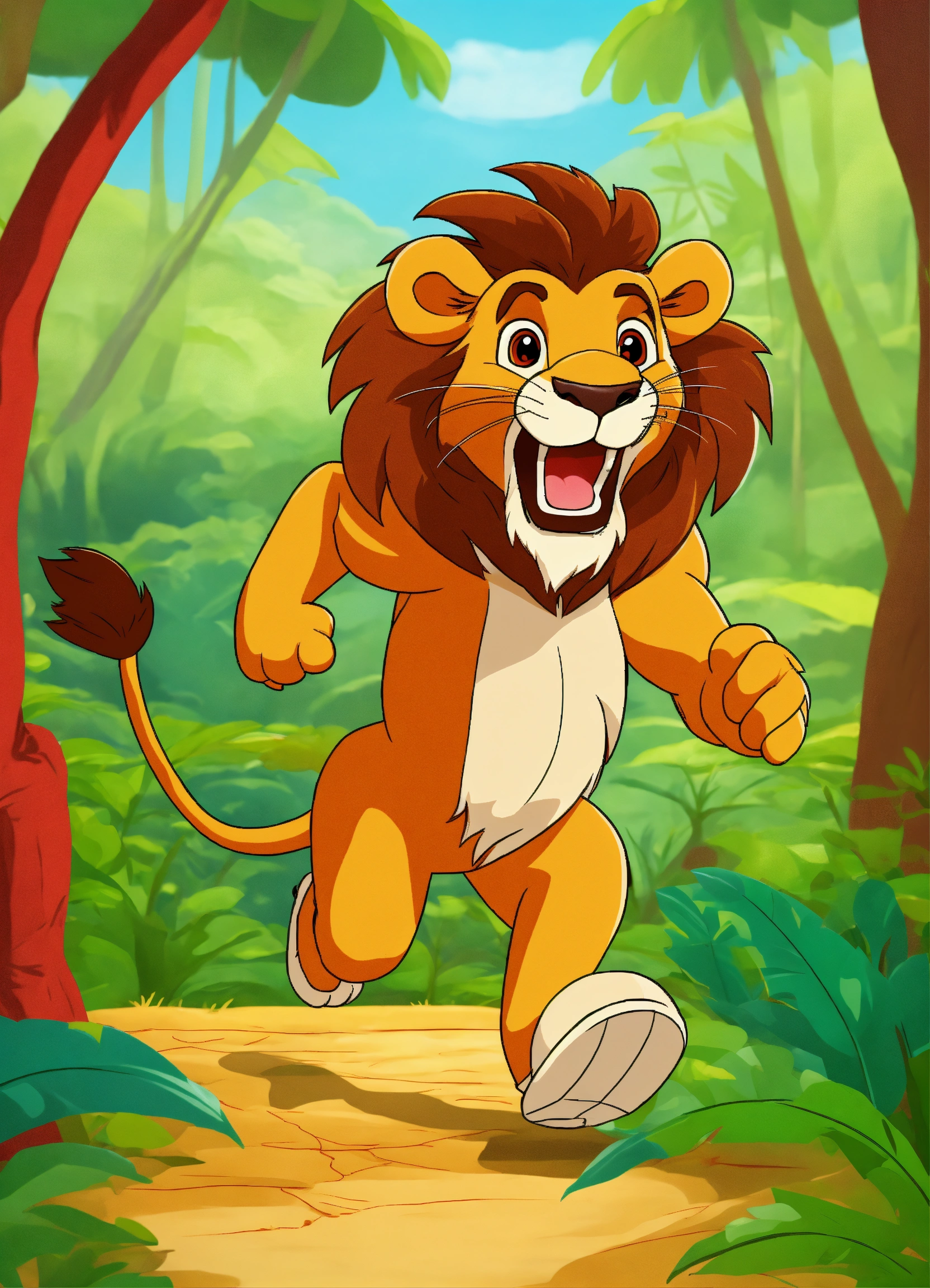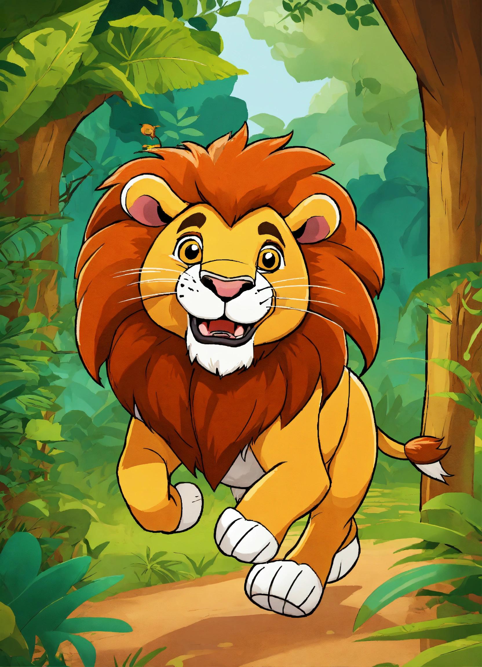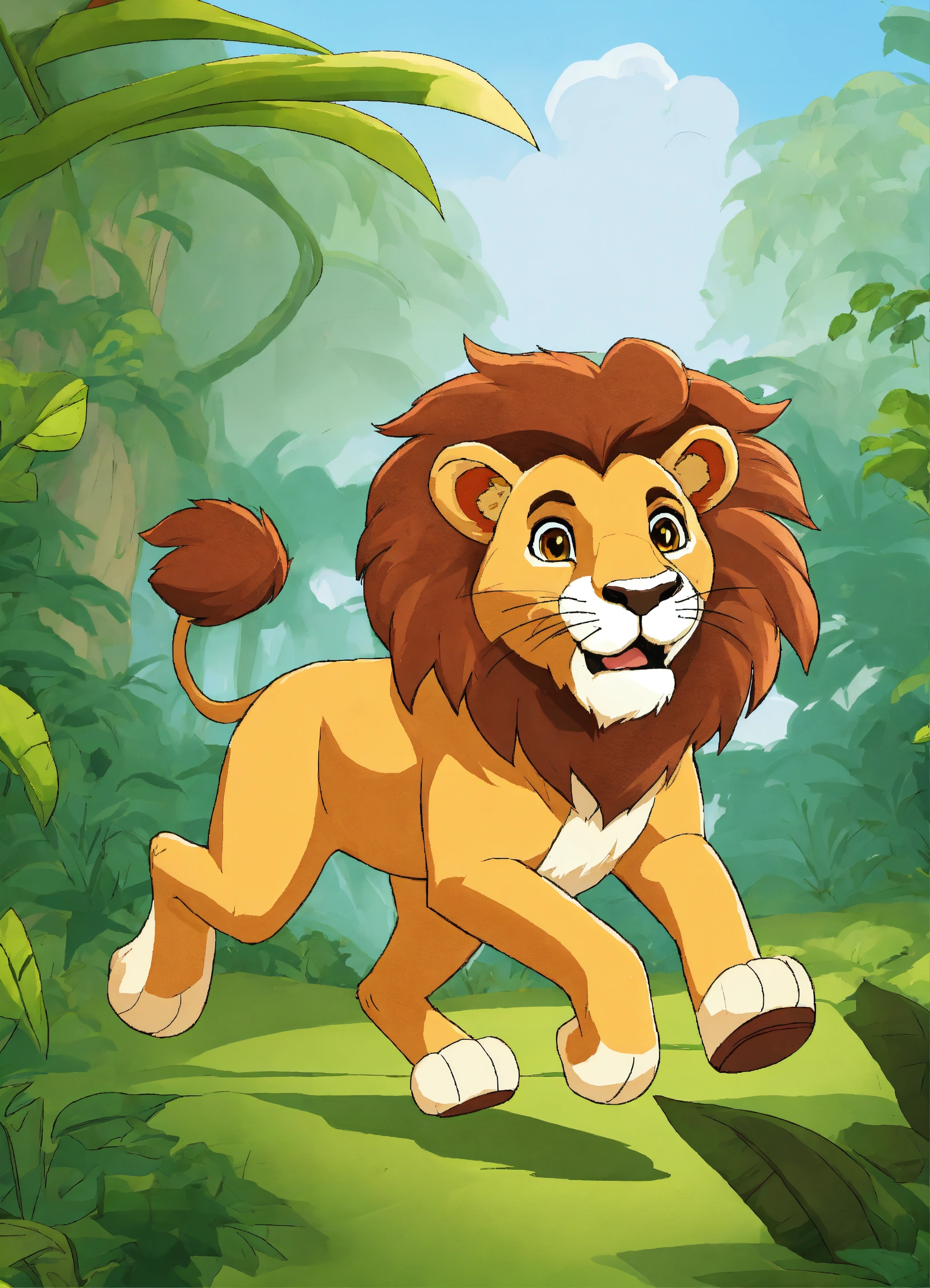 Cartoon lion running in jungle