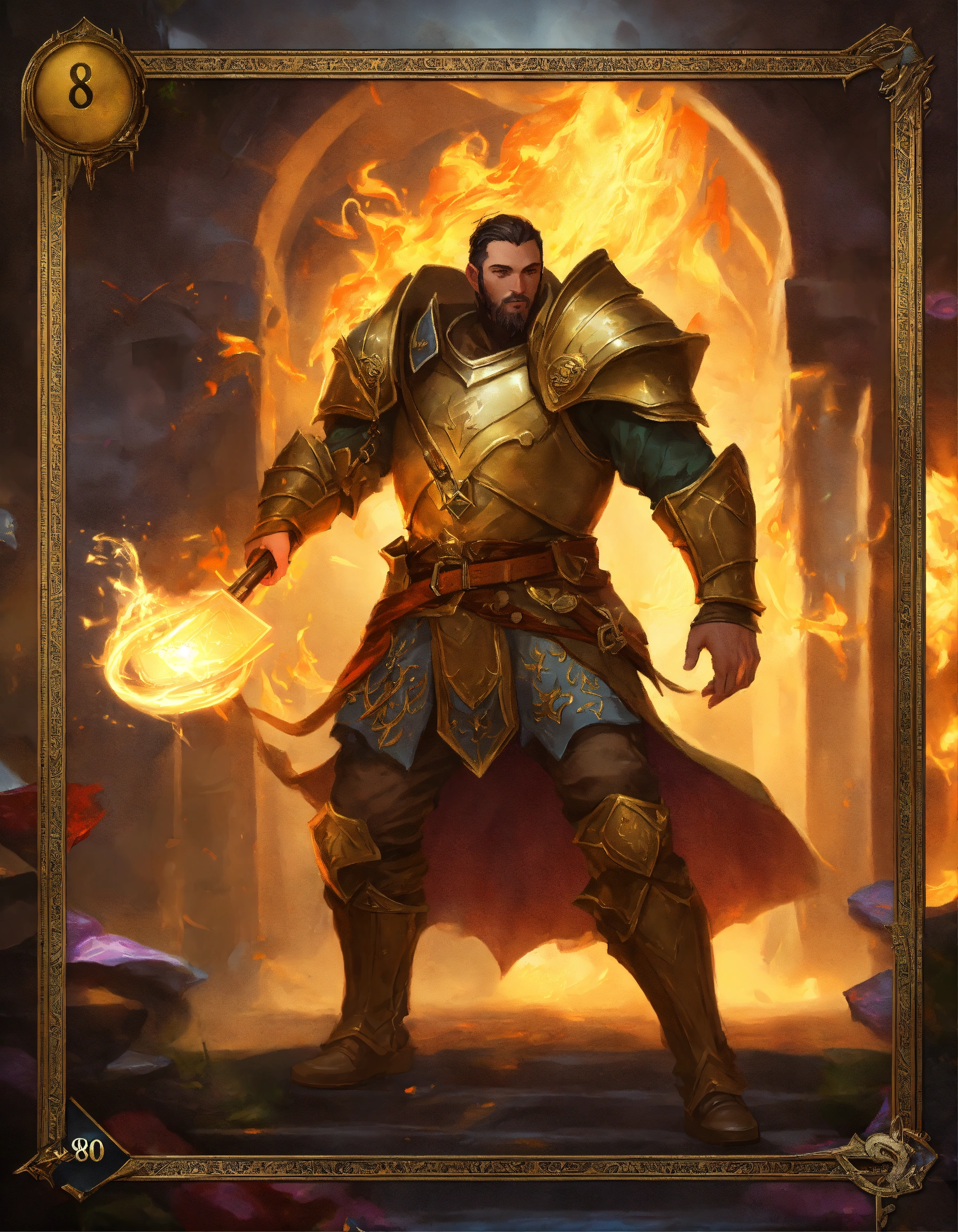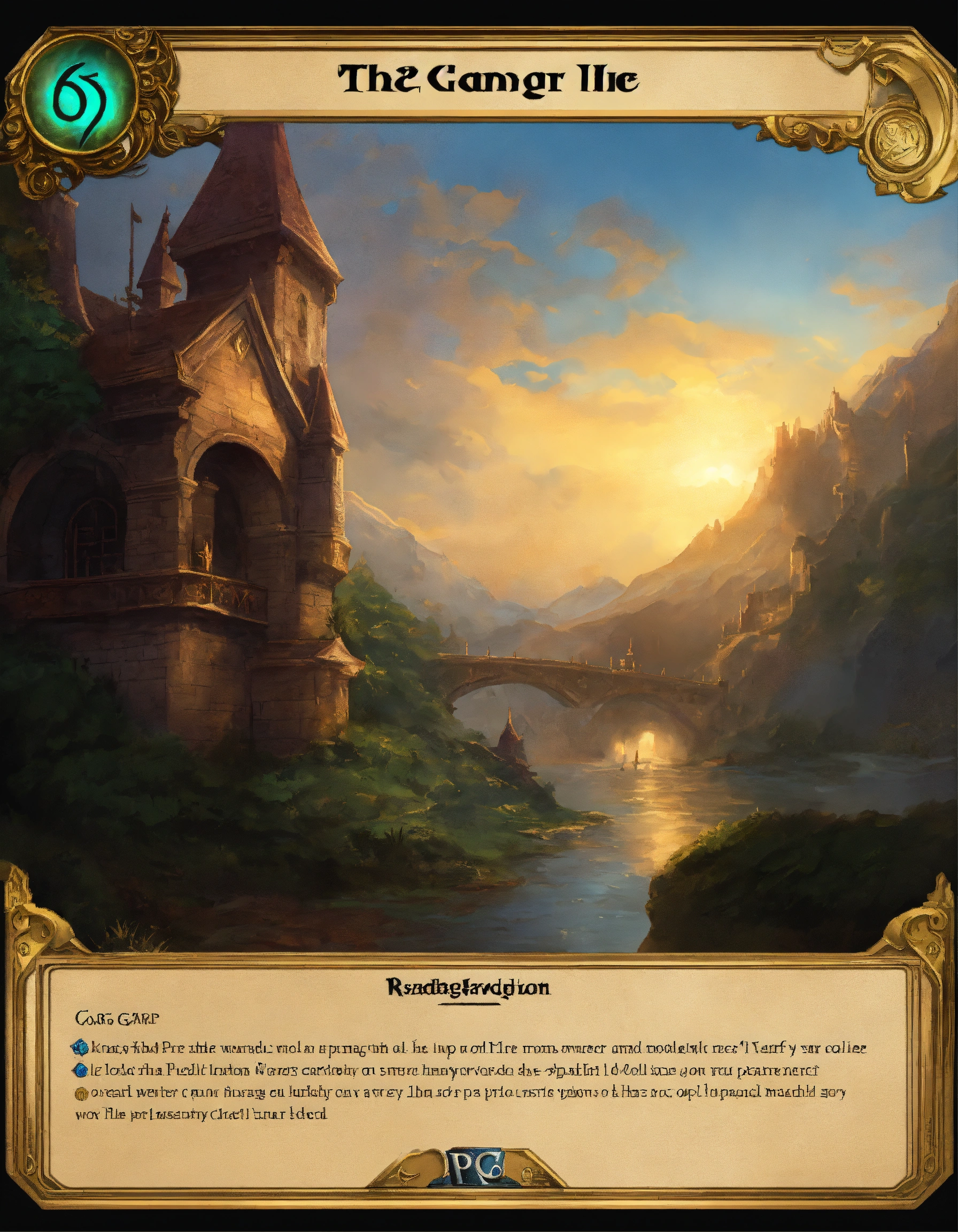 Rpg card template, fantasy, magic, gold, magic the gathering, 80 % text, 20 % picture, dungeons and dragons, playing card