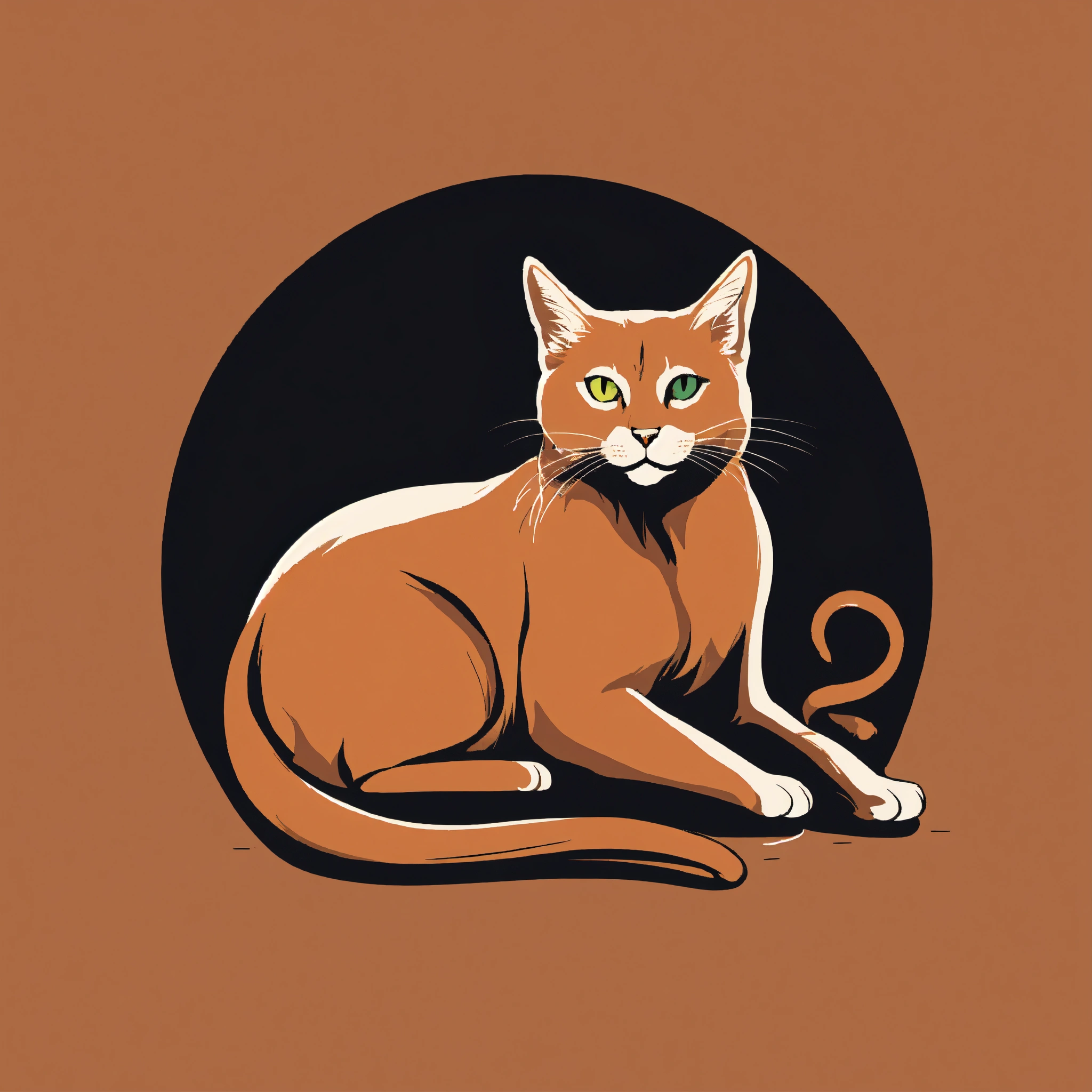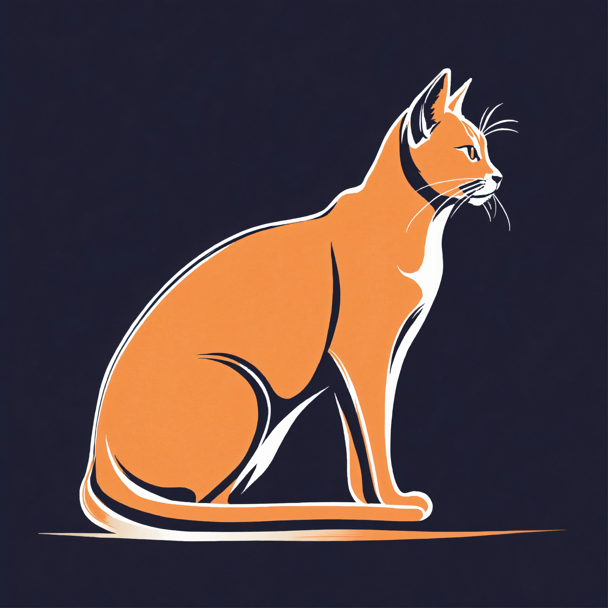 T-shirt vector illustration, centered design of a beautifully rendered, minimalist silhouette of a cat stretching after a nap. the design captures the feline's fluidity and elegance in its most basic form. simplistic, centered vector illustration, solid background color.