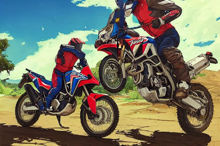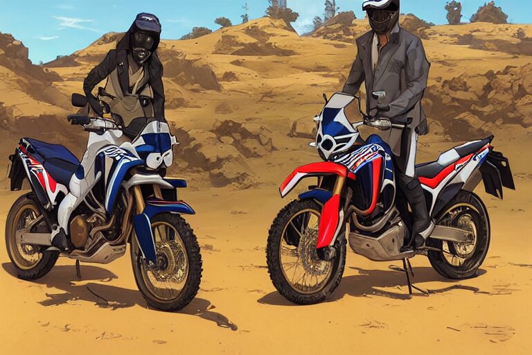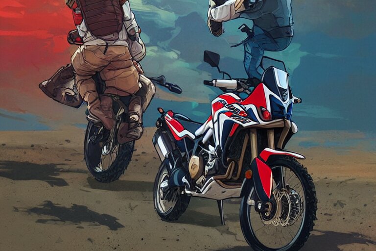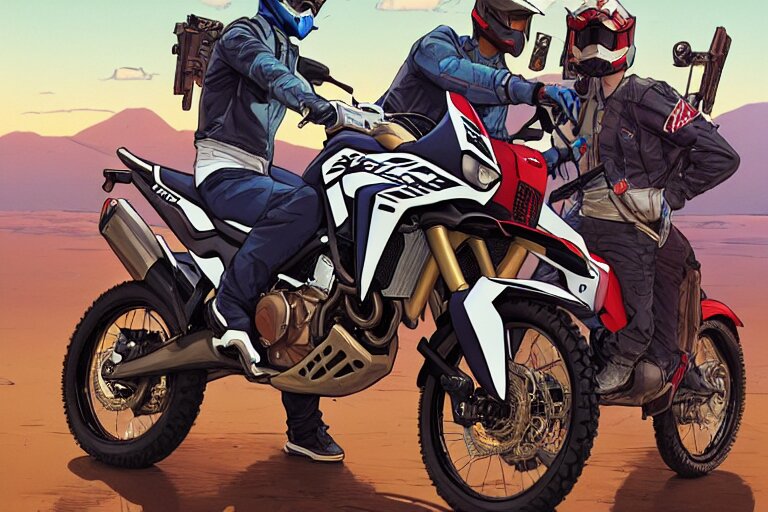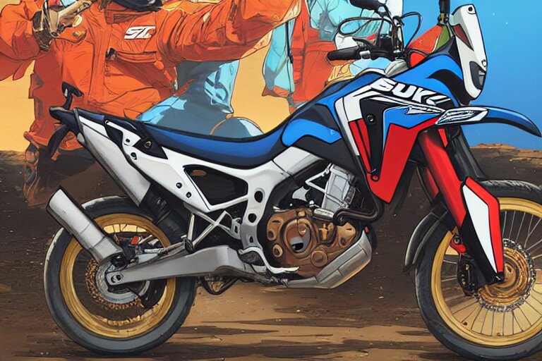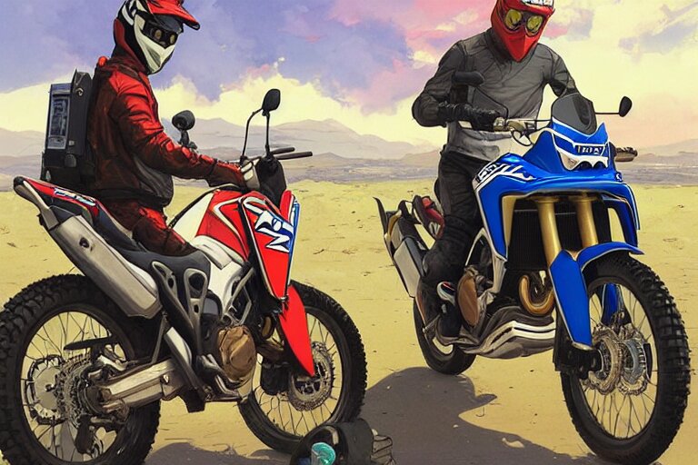 Suzuki drz 4 0 0 s, honda africa twin, art gta 5 cover, official fanart behance hd artstation by jesper ejsing, by rhads, makoto shinkai and lois van baarle, ilya kuvshinov, ossdraws, that looks like it is from borderlands and by feng zhu and loish and laurie greasley, victo ngai, andreas rocha, john harris