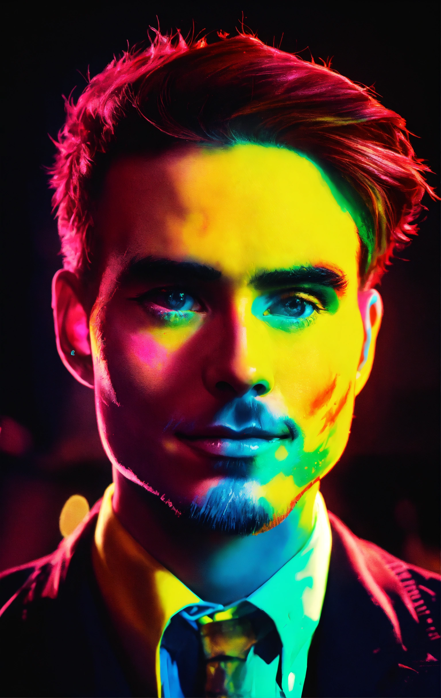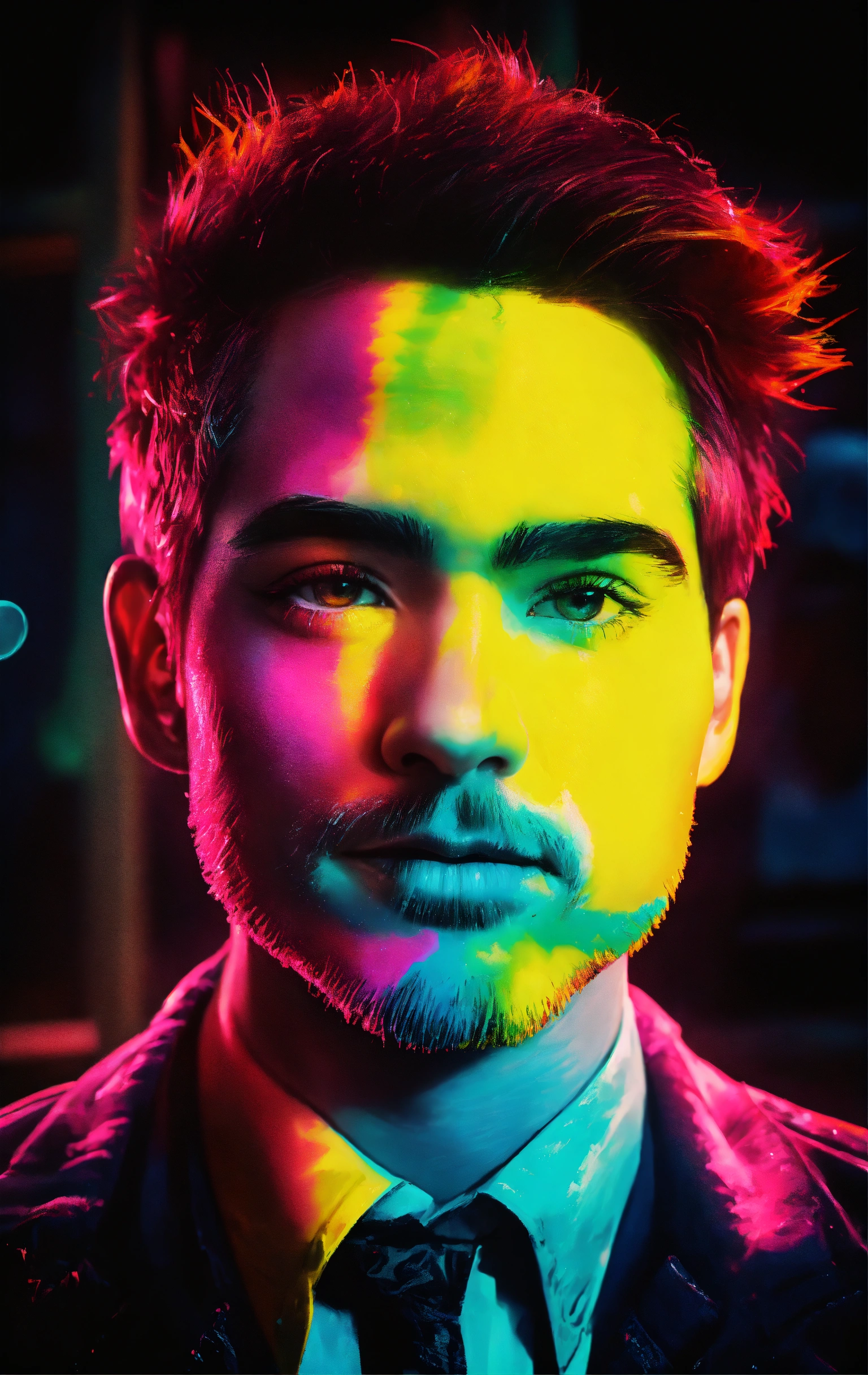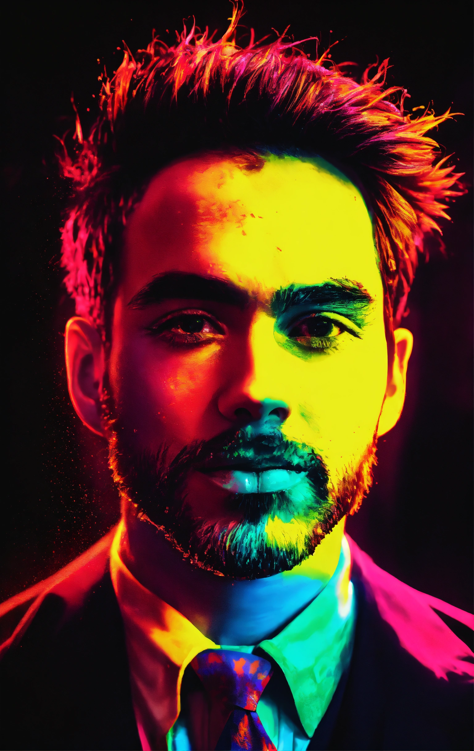 A hyper-realistic film-grained photo of a super cute aphrodite colorful tie-dye pants, standing in a cozy coffee shop, long exposure shots, 256k, no text.