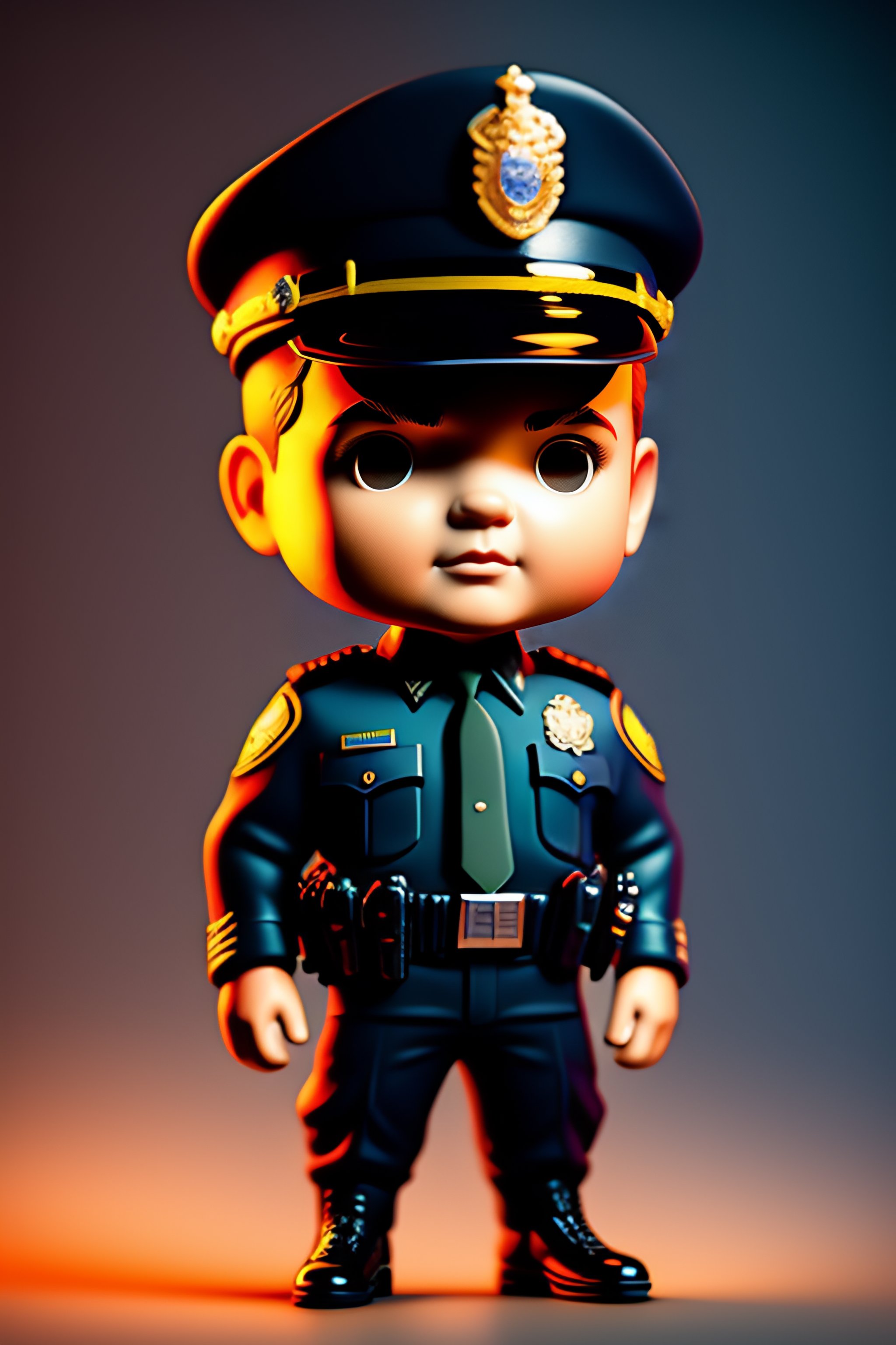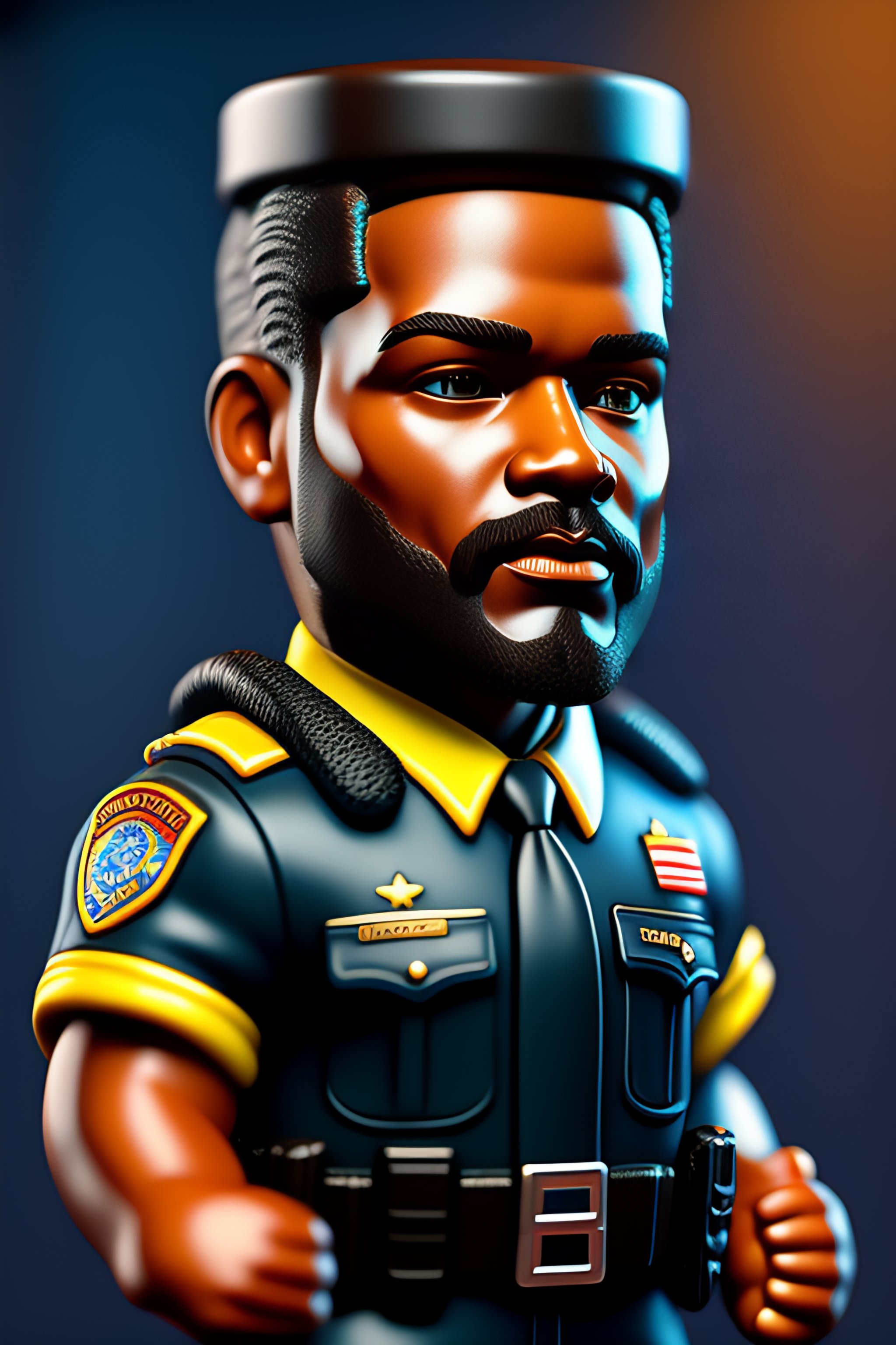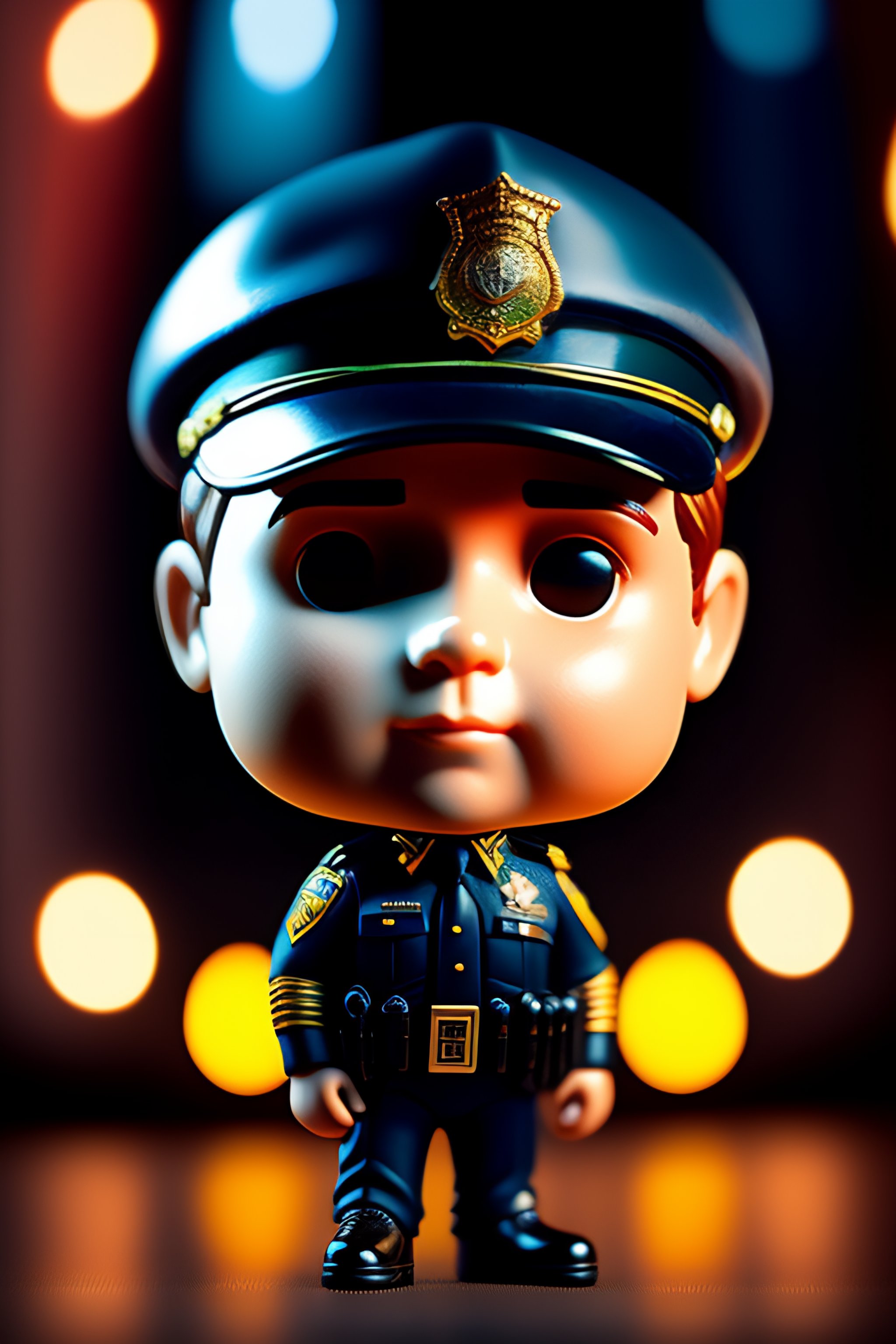 Joel mckinnon, police officer, bobble head, funko pop art, hyper detailed, professional lighting, film lighting, 35mm, 50mm, ray tracing, unreal engine 5, zbrush