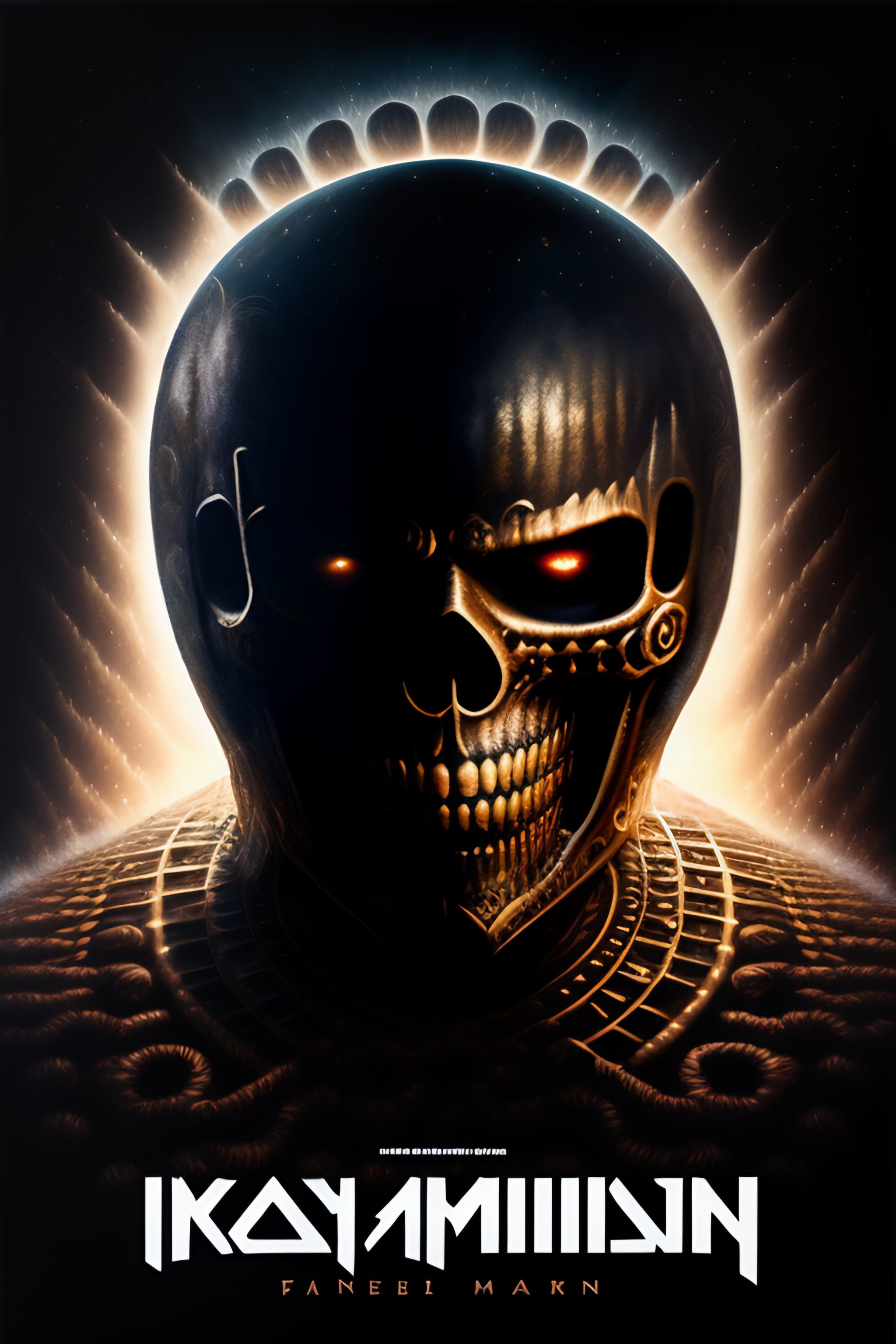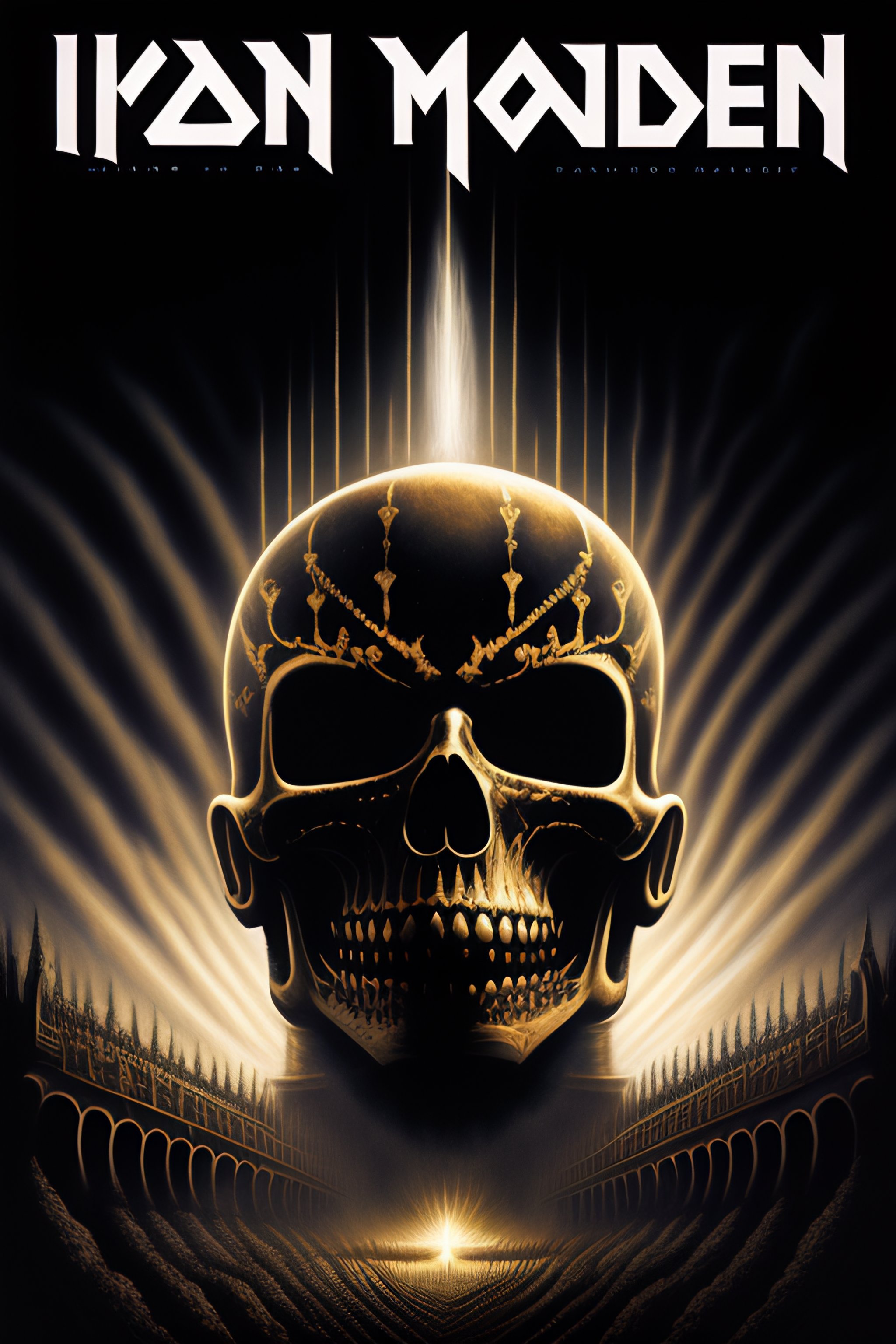 "iron maiden" album cover, detailed, film grain, sharp, surrounded by beams of light dark background by wayne barlow, stanley donwood, anton semenov, zdzislaw bekinski, hr giger, 8 k, dark, highly detailed