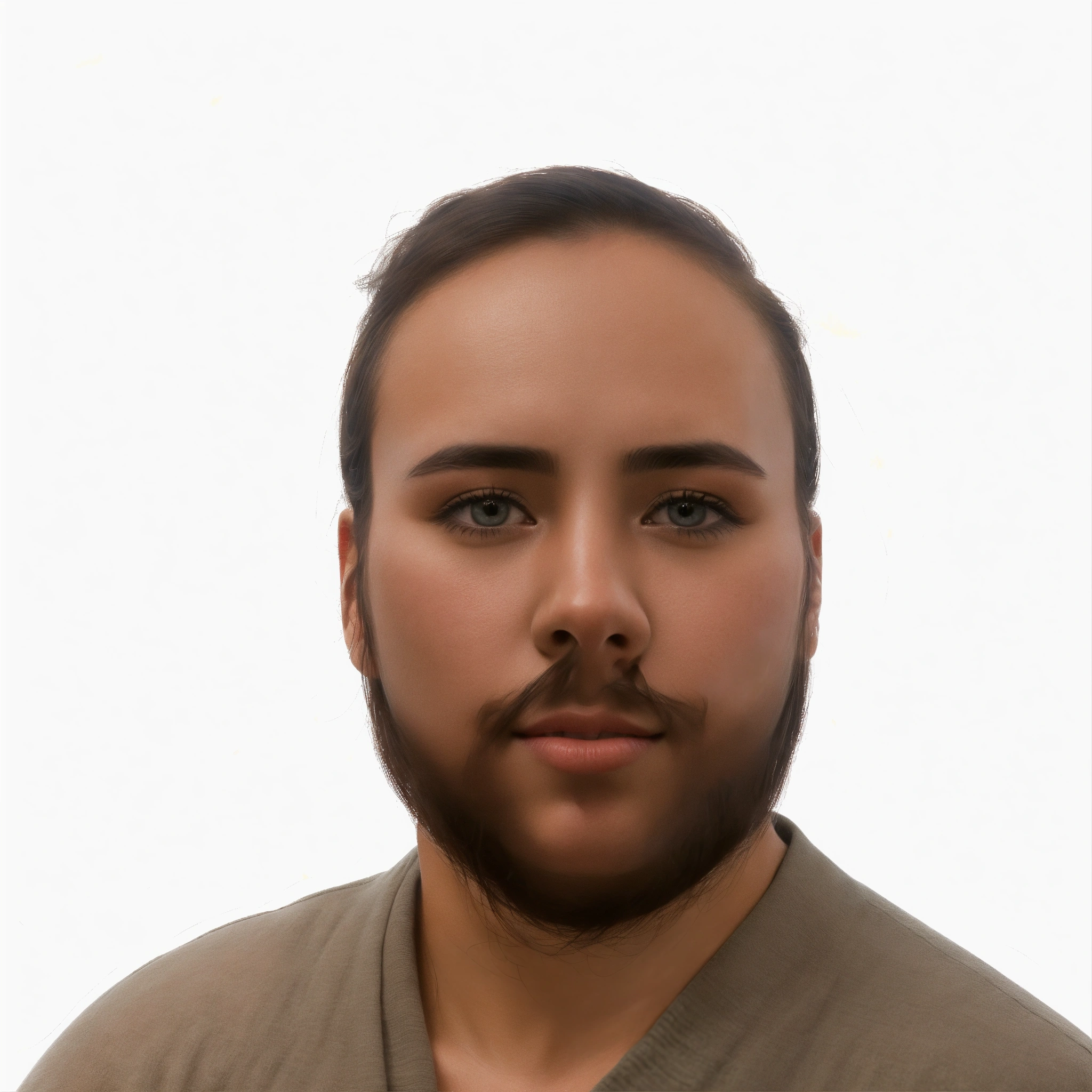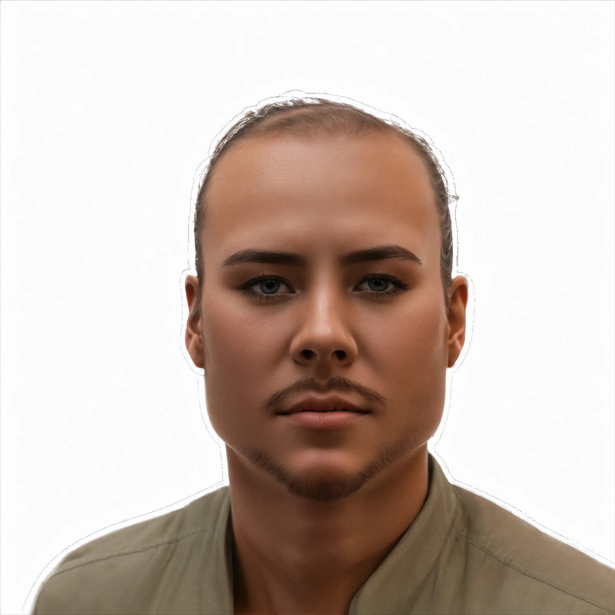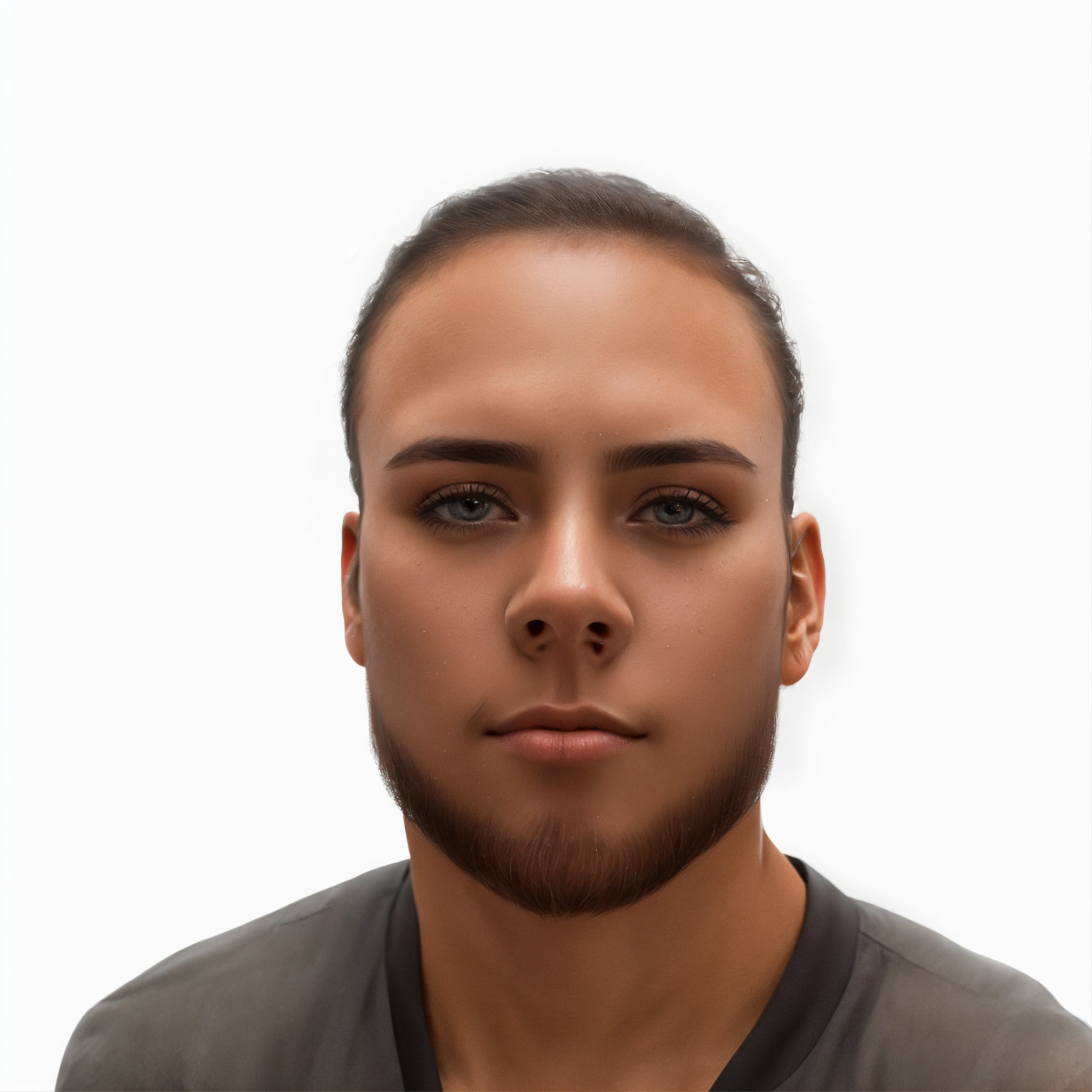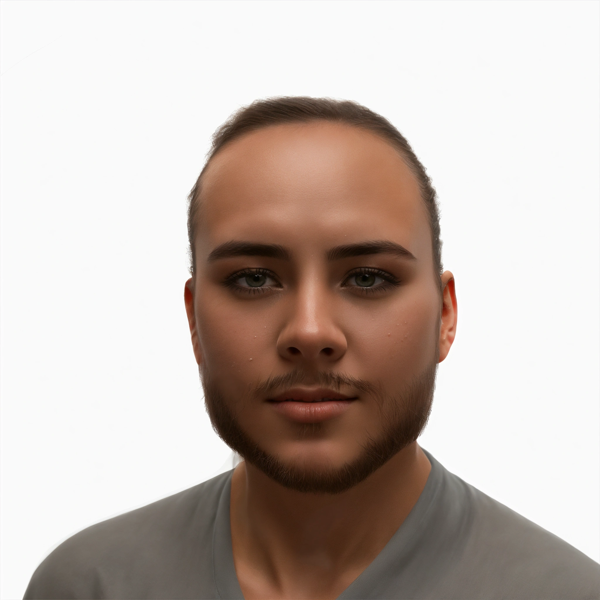 The enhanced avatar retains a true likeness to the original photo, yet each feature is subtly refined. the skin appears smooth and clear, while the eyes are bright and engaging. a gentle touch-up defines the jawline and the lighting casts a flattering yet natural glow, achieving an overall look of effortless, polished charm.