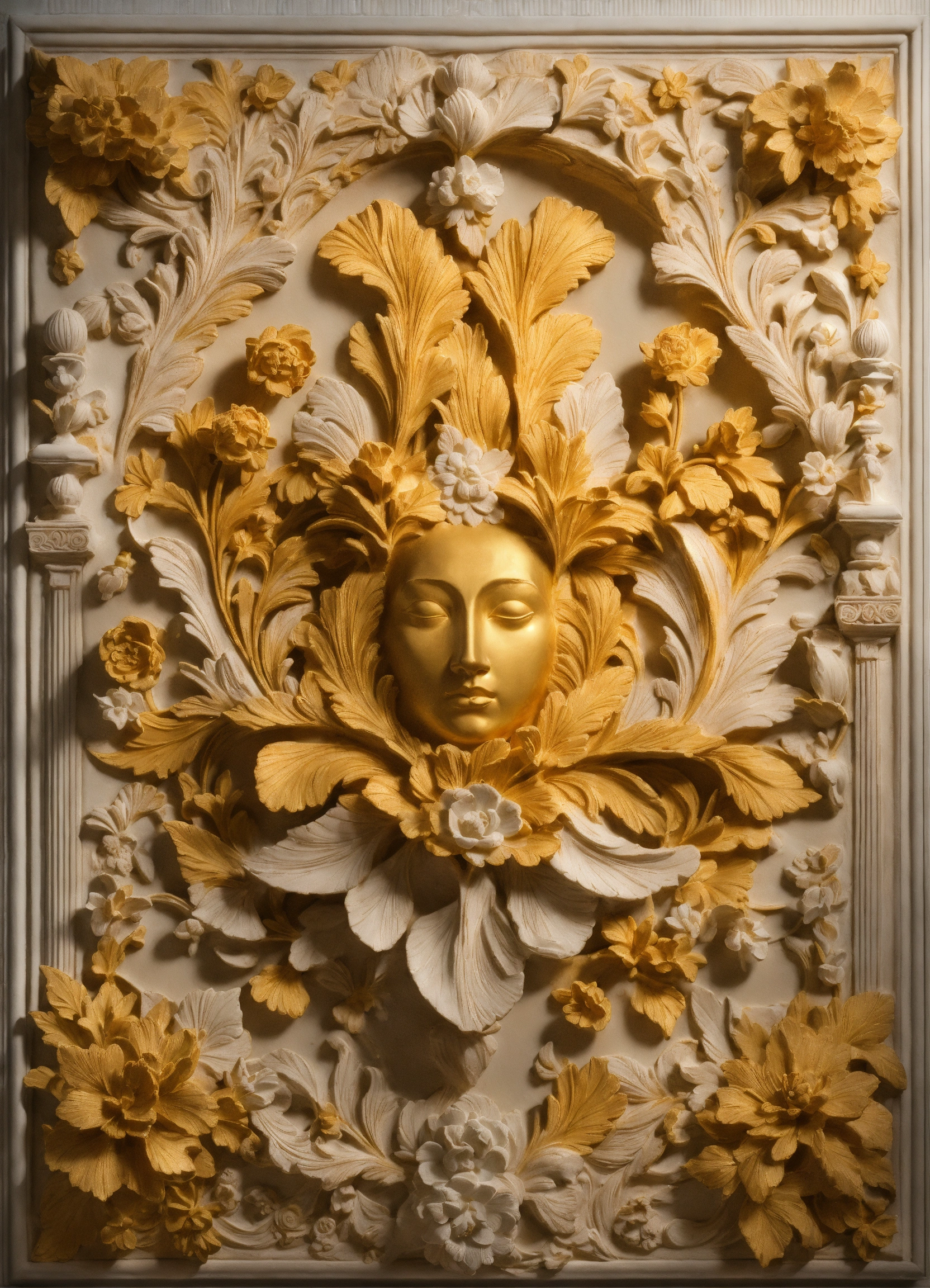 Similar, relief, plaster, 4k, volume, high detail, sculpture, plants, the background is white, smooth, gypsum, bas-relief, center, decorative pattern, classical ornament, motif, symmetry, flowers, buds, blooming buds, highly detailed volumetric plaster work, exotic flowers, bas-relief of flowers, painting, beautiful composition, and male, love, the golden ratio, the big picture, the open tail is beautiful, https//lexica.art/prompt/1e3d34fe-34d2-46a3-afd3-dc96c367b879
