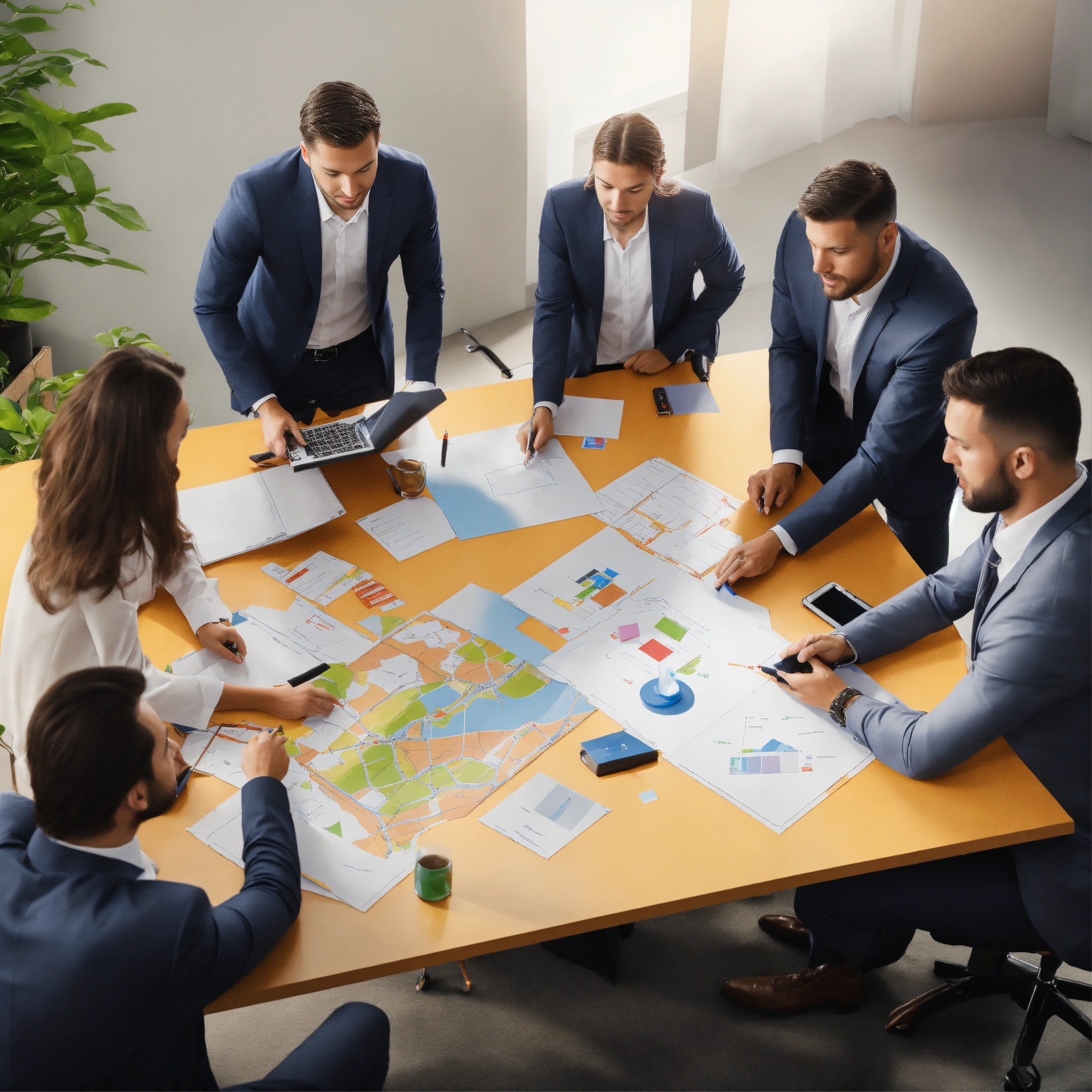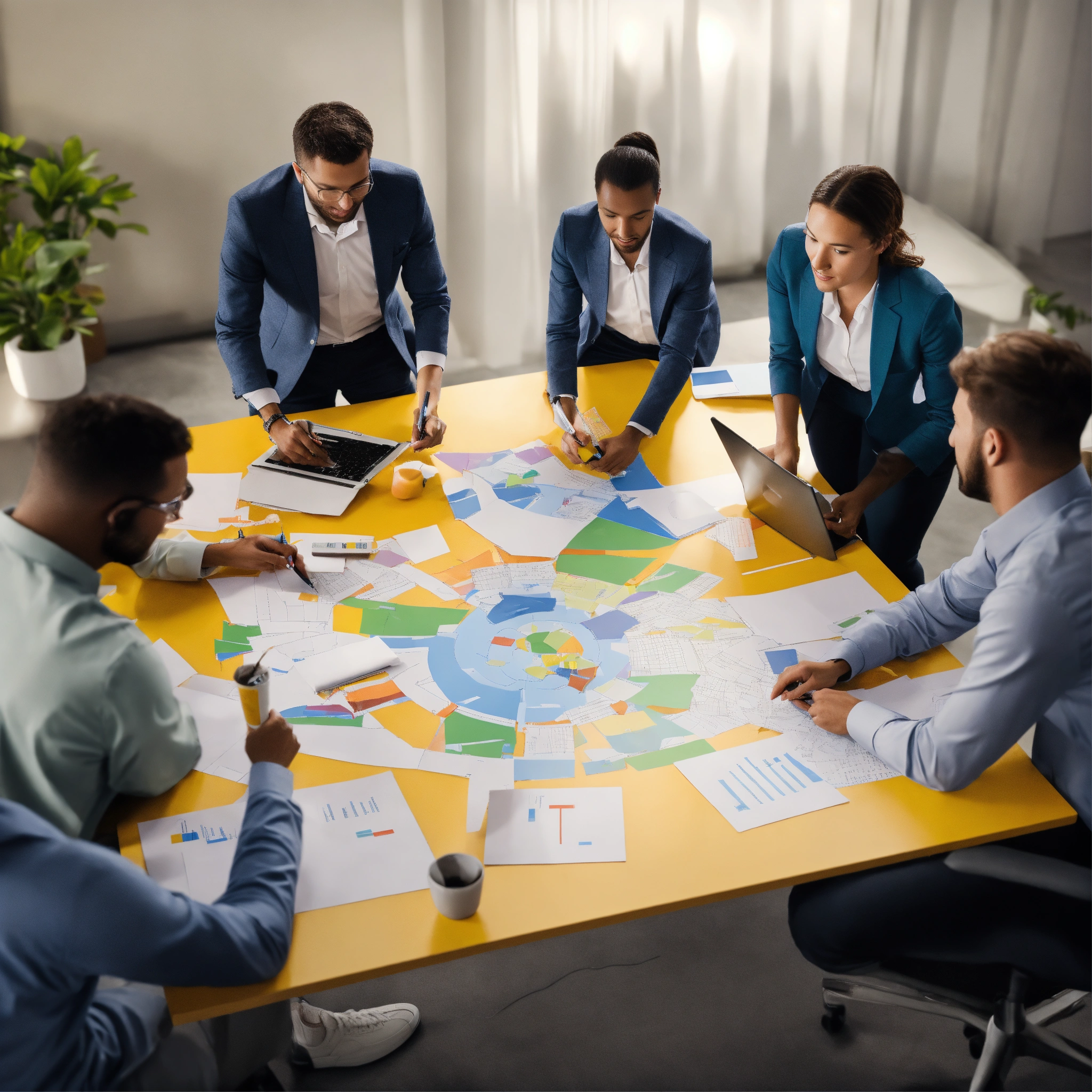 Show a picture of a team that is in the process to accelerate their teamwork, agile team setting, office, photo realistic. clear background