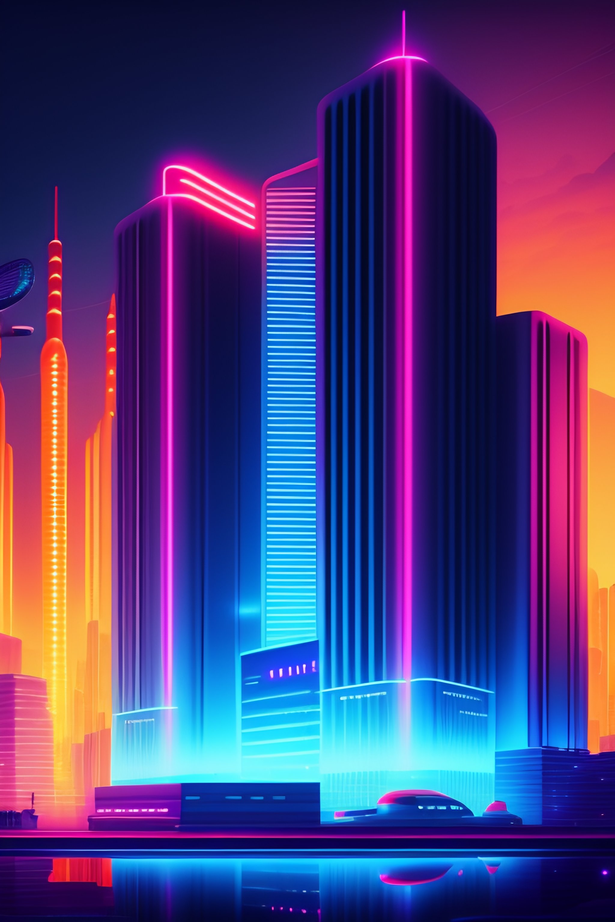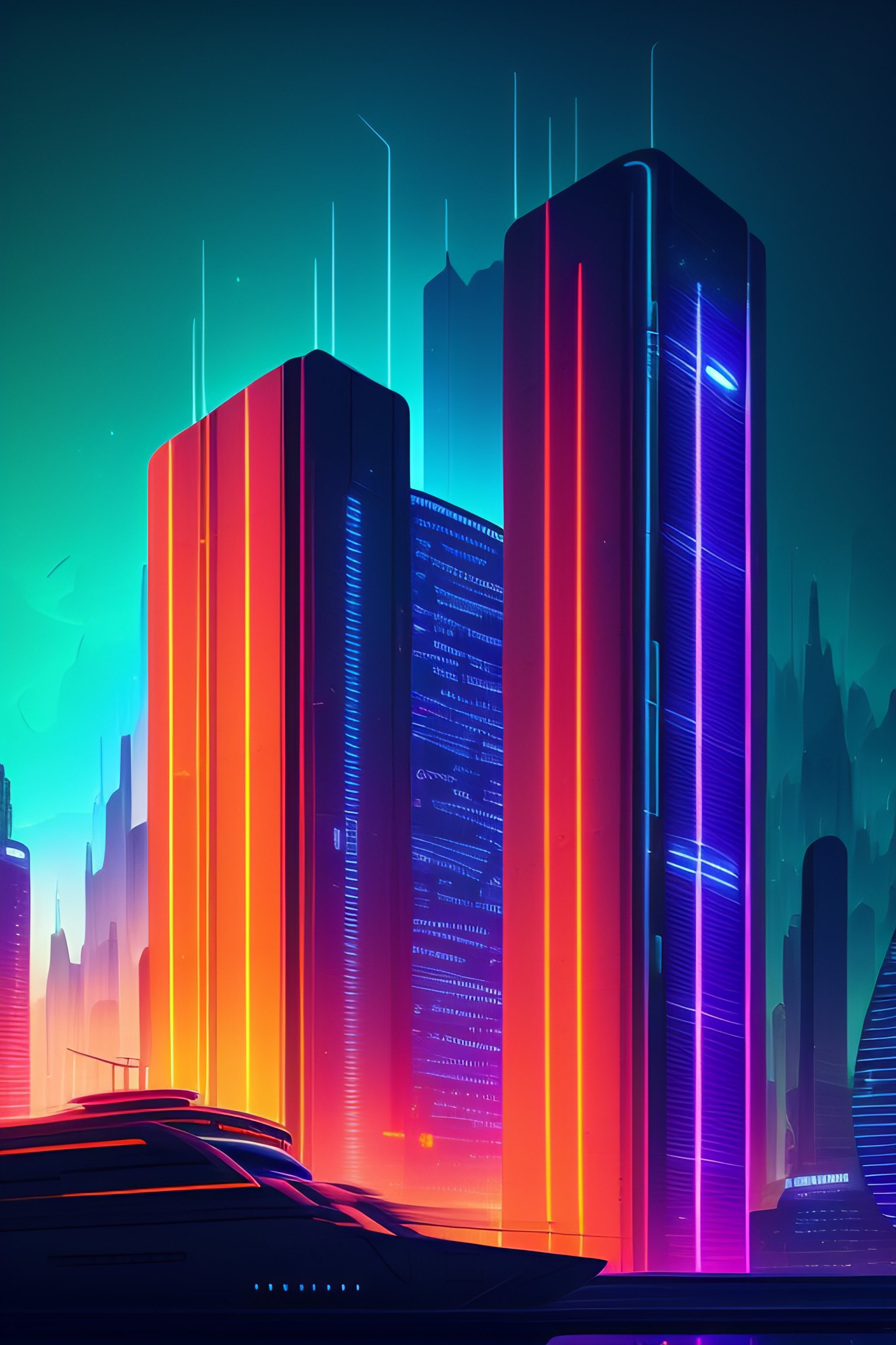 A detailed and vibrant illustration of the world of business combined with ai-based solutions. with a touch of industrial and digital sci-fi elements. cel-shaded 3d, hand-drawn animation, vector art, glowing lights, futuristic cityscape, electrifying atmosphere.