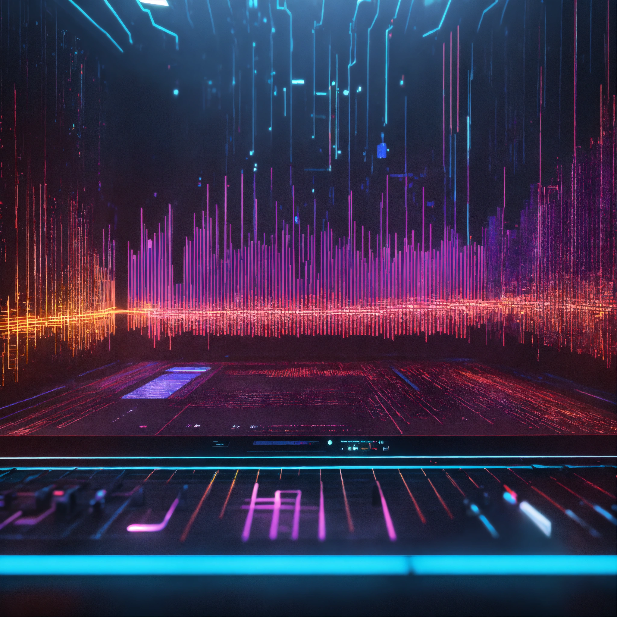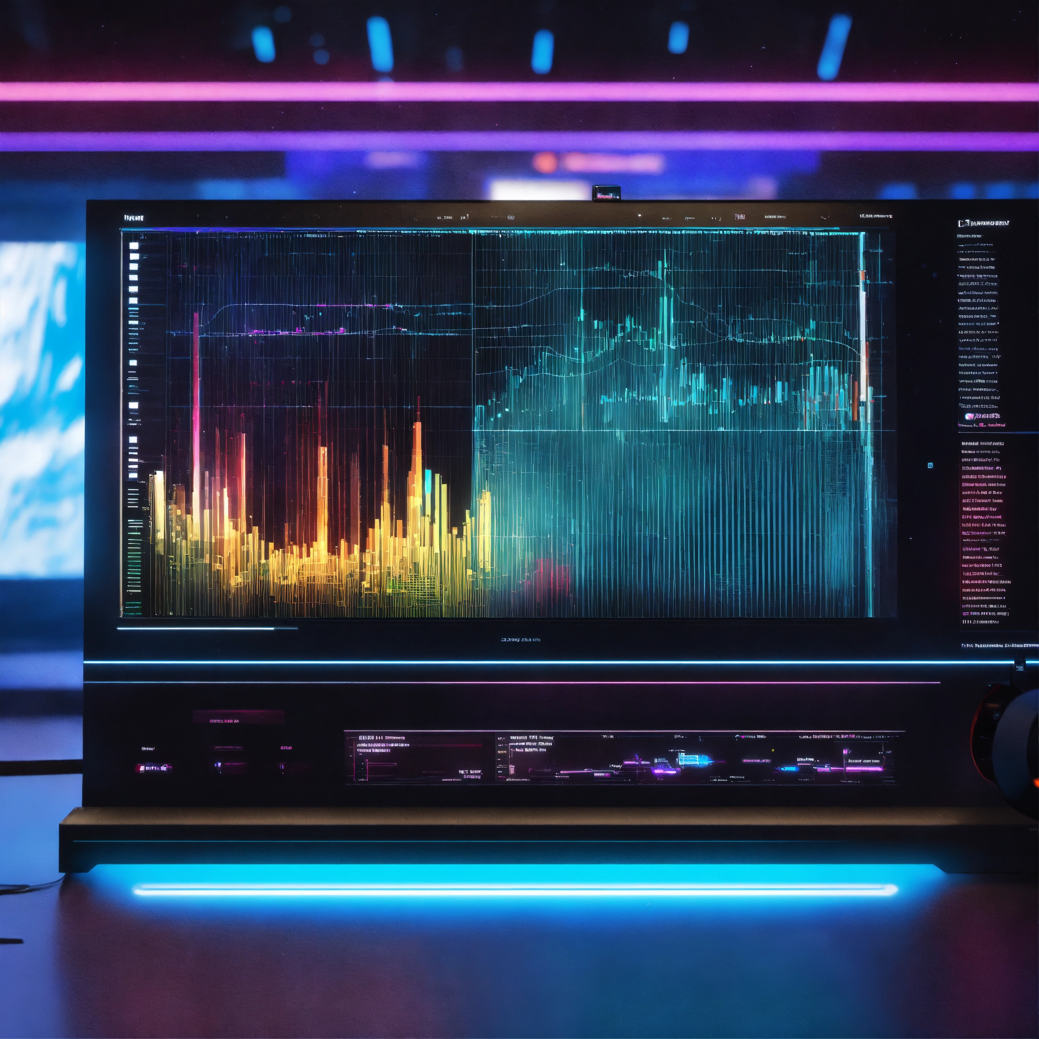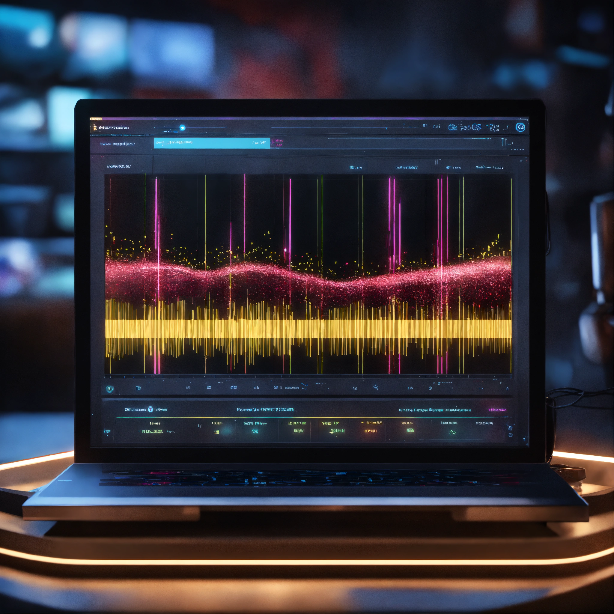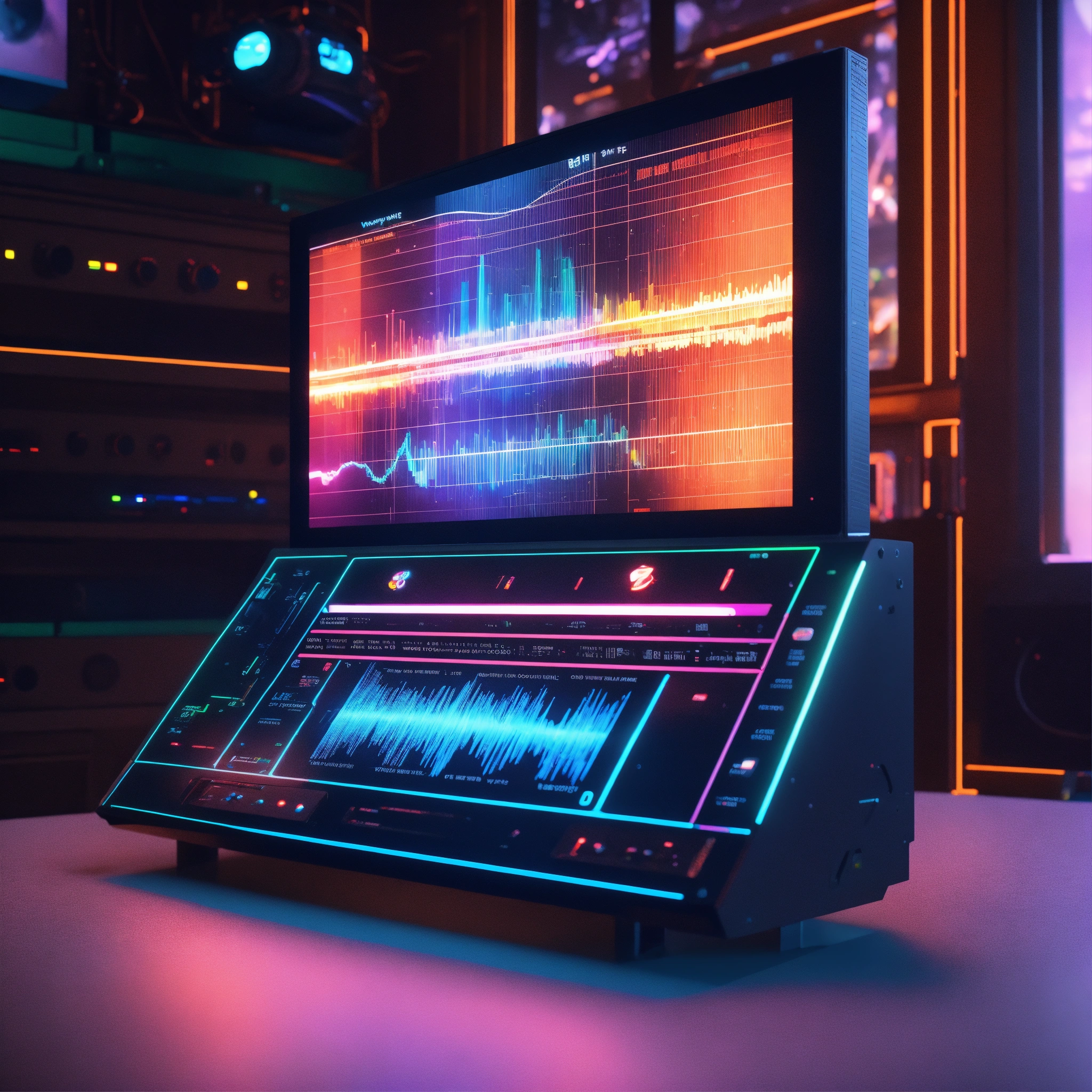 A sound visualizer on screen machine with personality, waveform, realistic, futuristic, sci-fi, 8k, unreal engine, pixar. disney