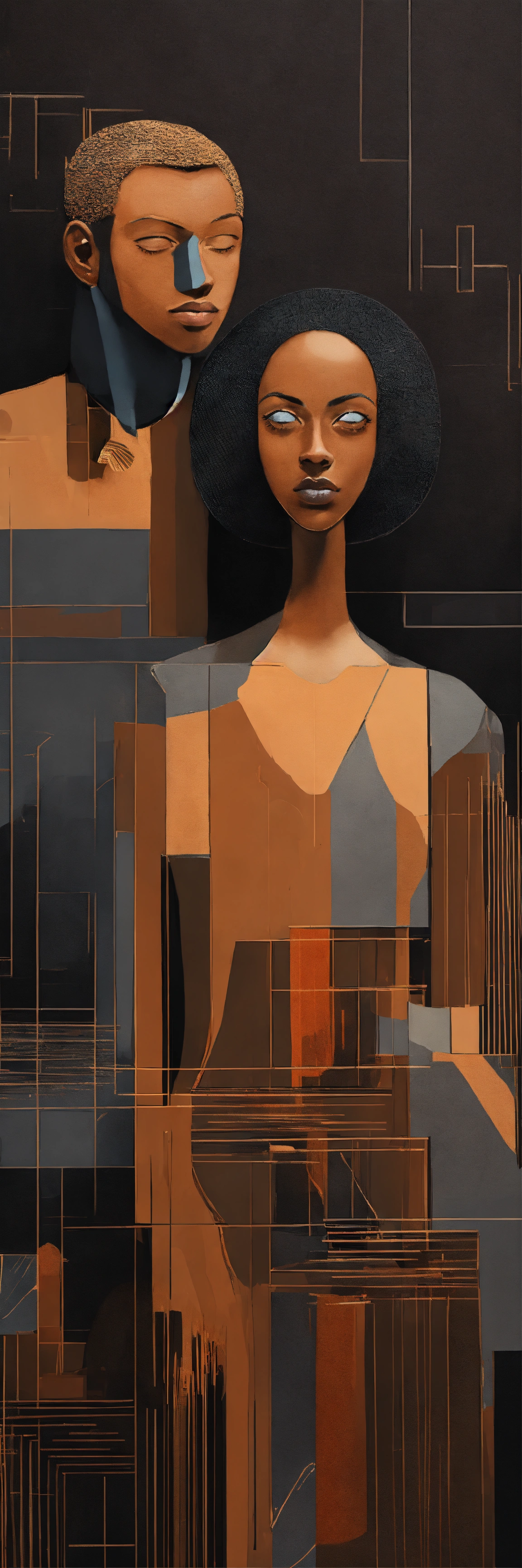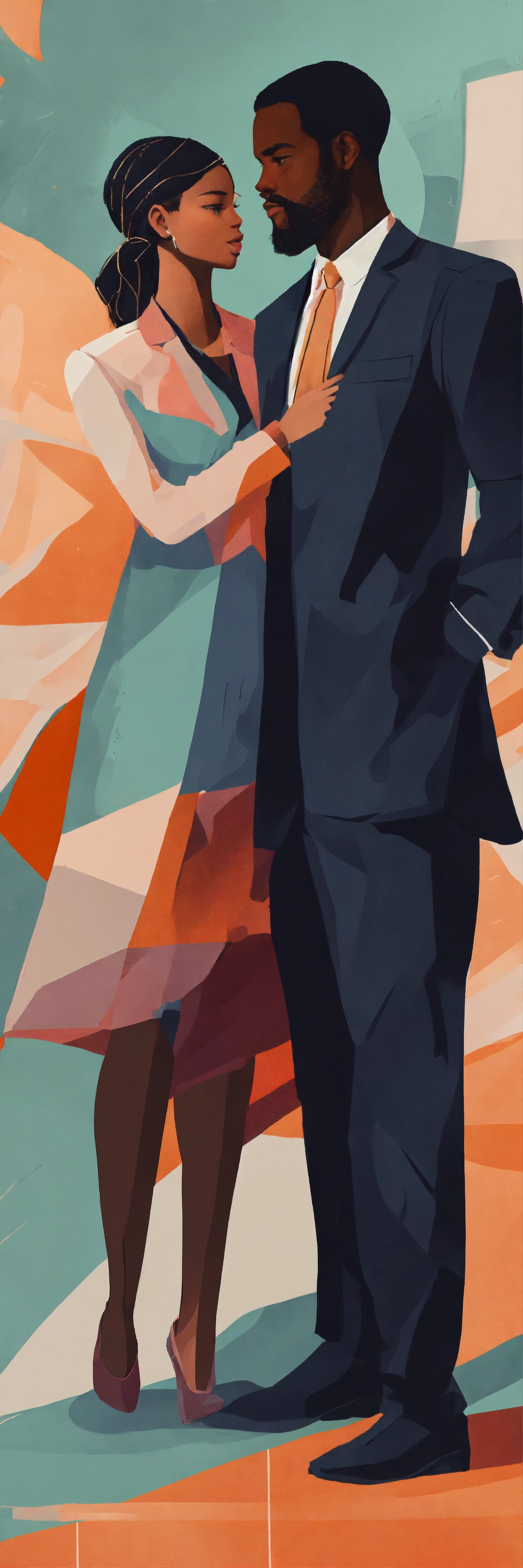 Abstract image black man and woman in the style of a drawing representing soft skills such as negotiation