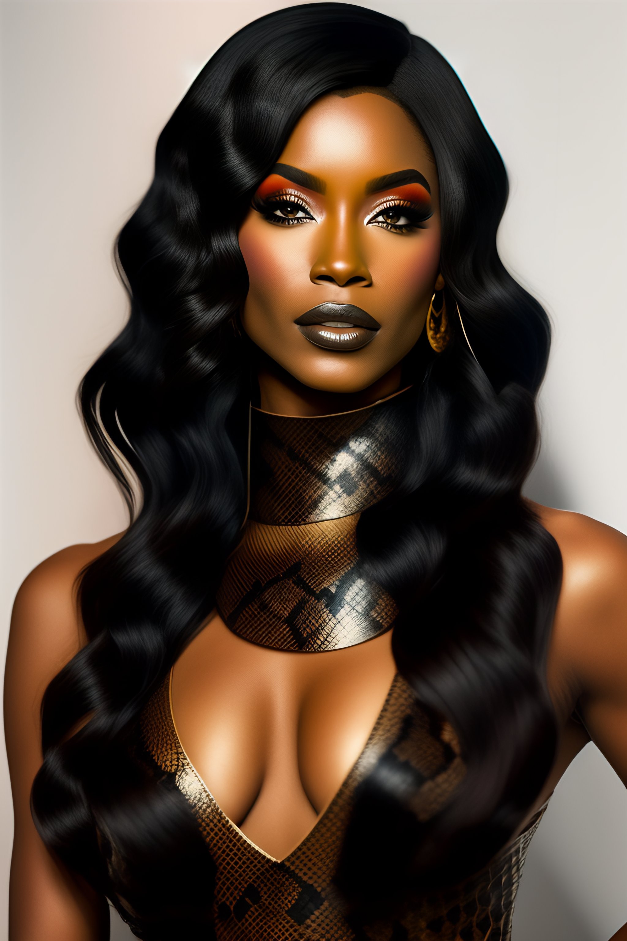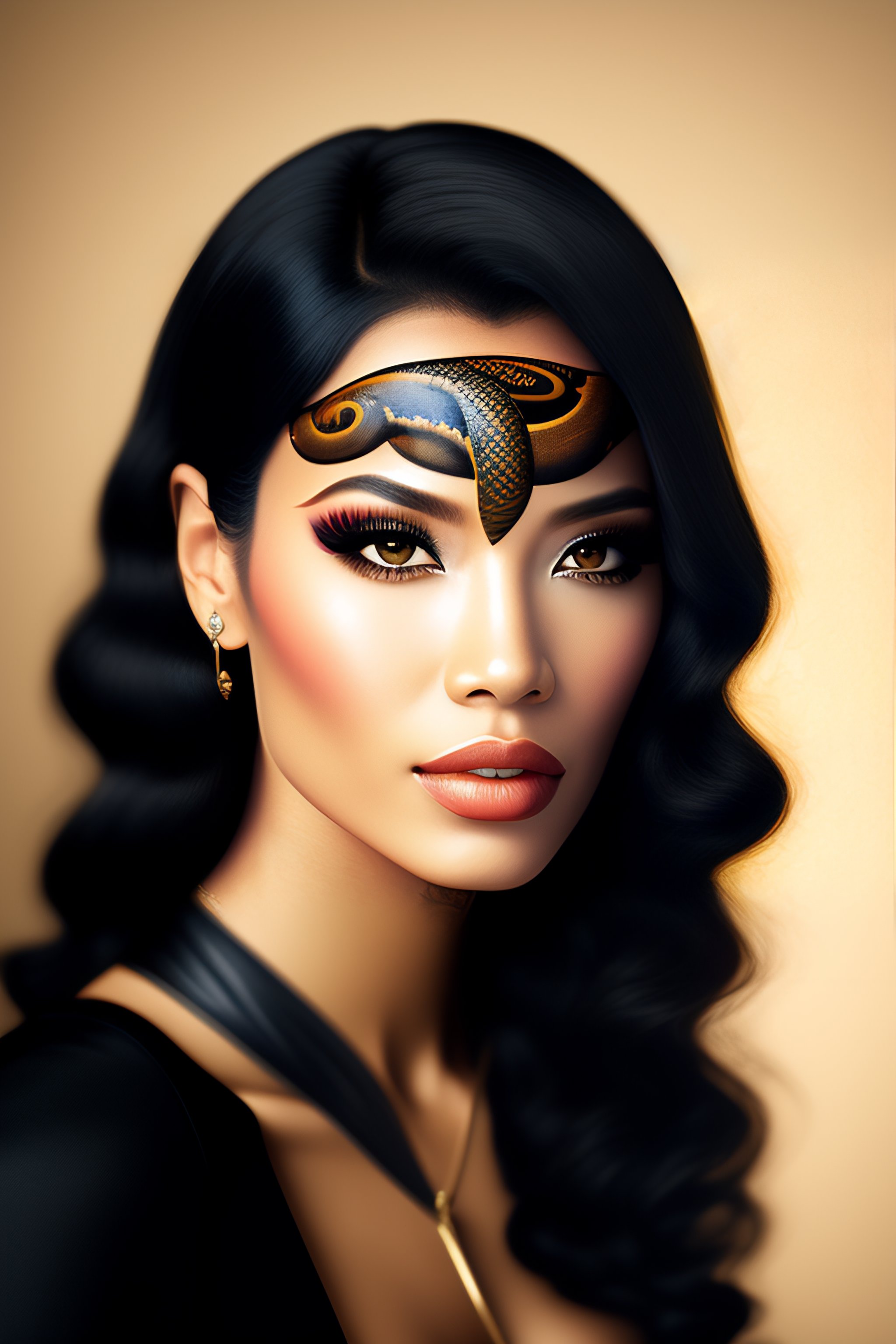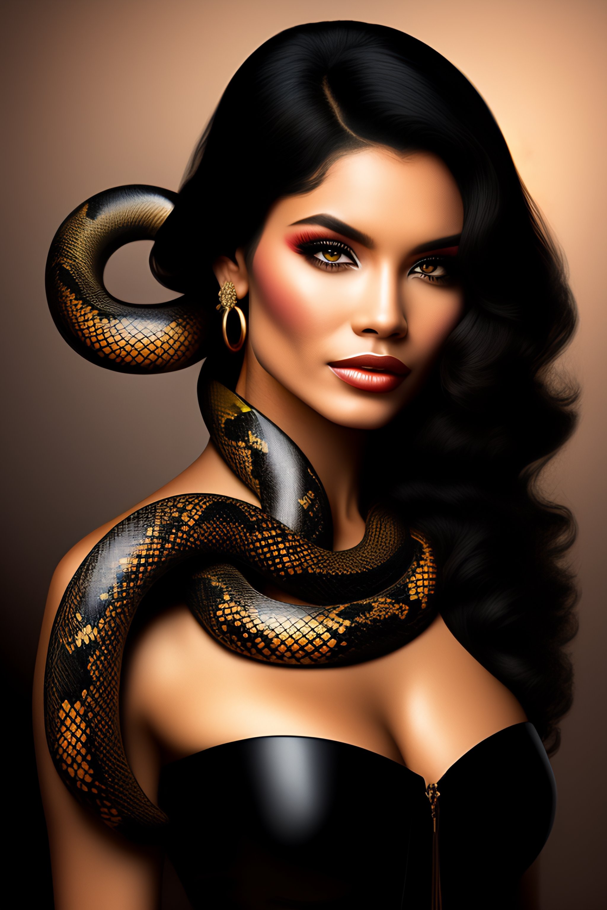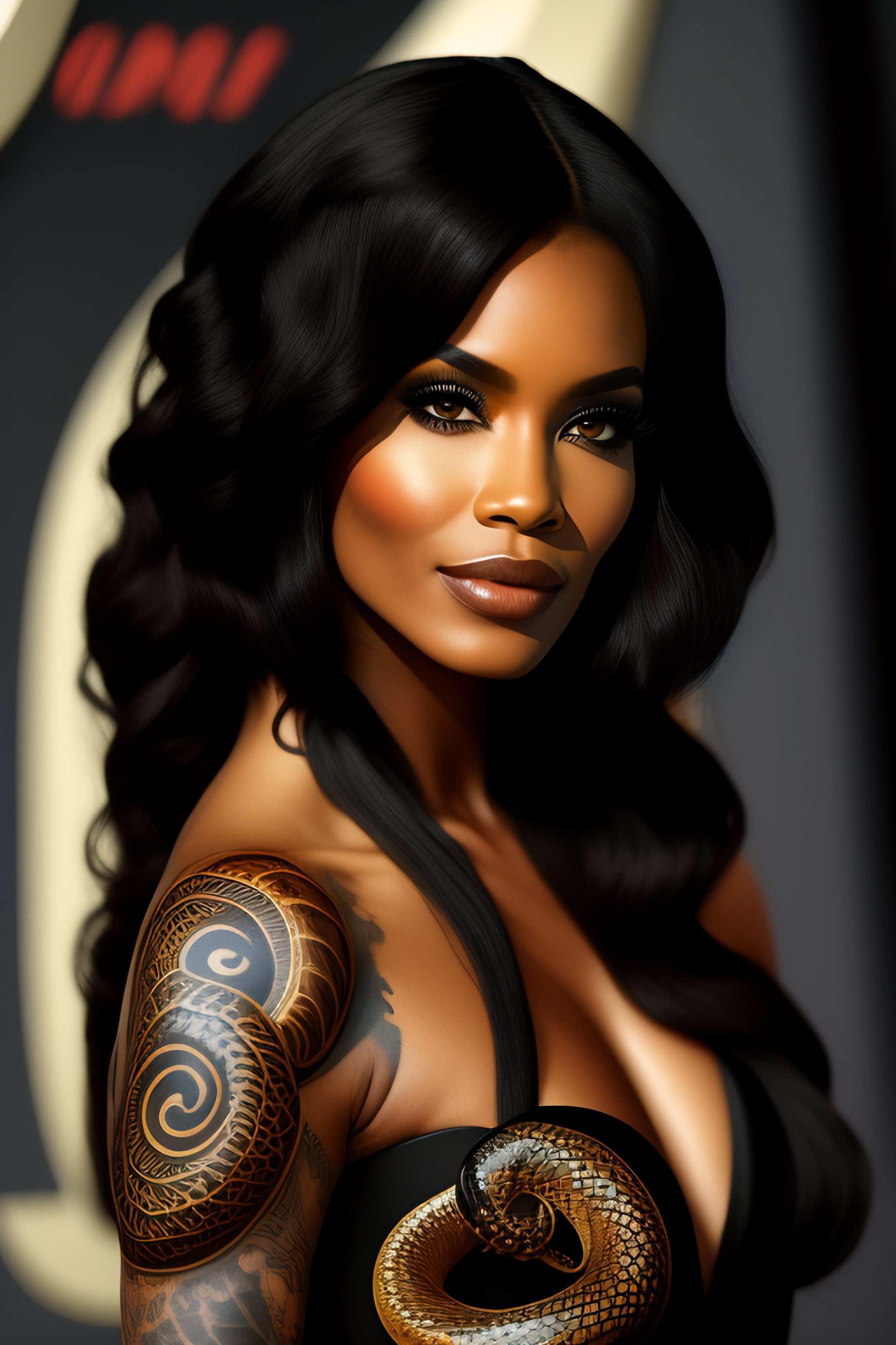 Woman black hair brown eyes snake tattoo