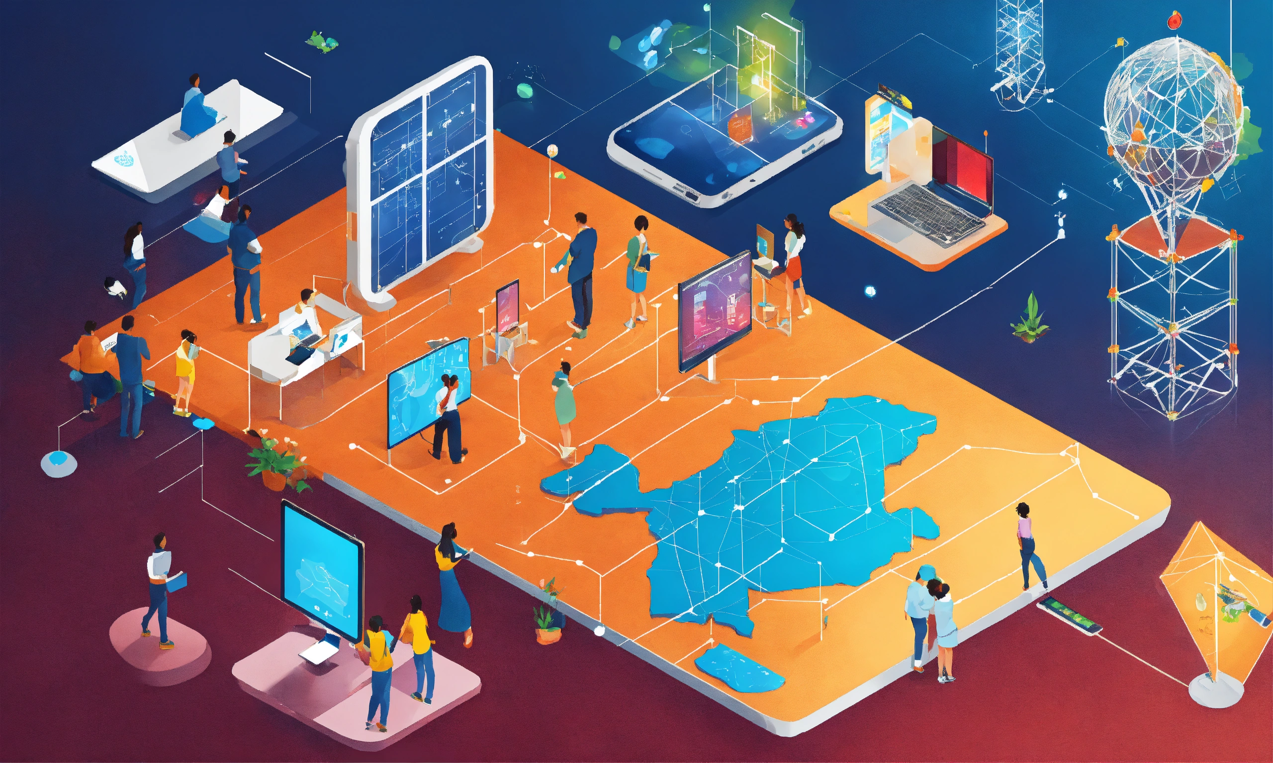 A visual representation of india on a map or an outline of india to show the geographical context. icons or symbols representing technology and connectivity, such as wireless signals or network connectivity symbols. illustrations of wireless transmission towers or antennas to depict air fiber technology. graphics showing the growth or spread of connectivity across different regions of india. images of people using digital devices like smartphones, laptops, or tablets to represent the empowerment of individuals through high-speed internet access.