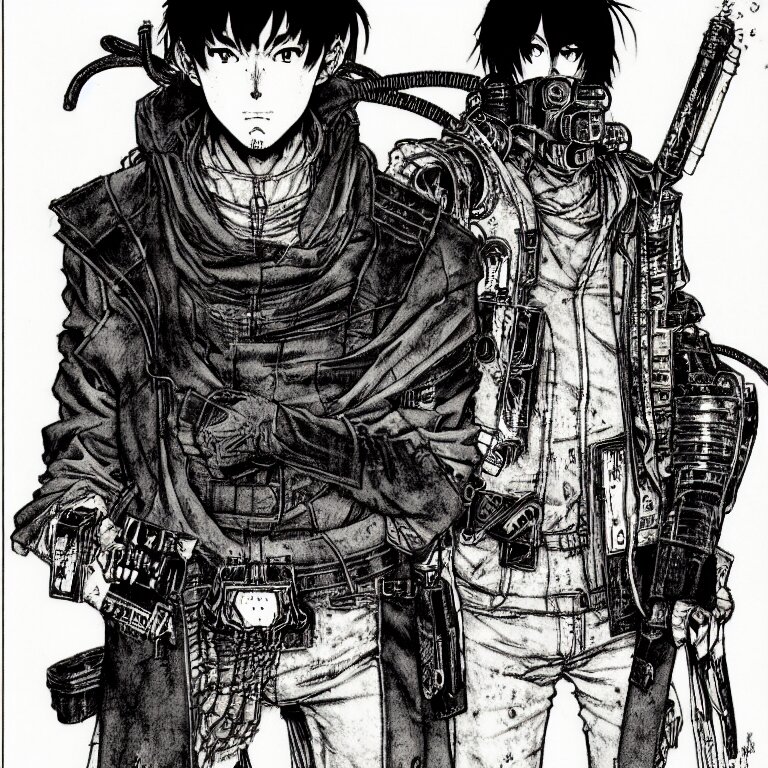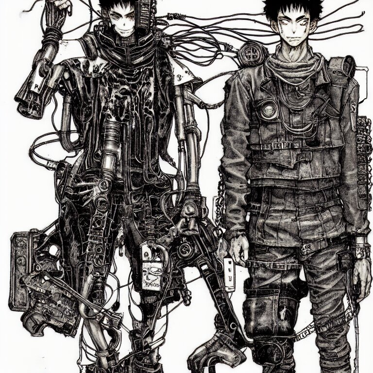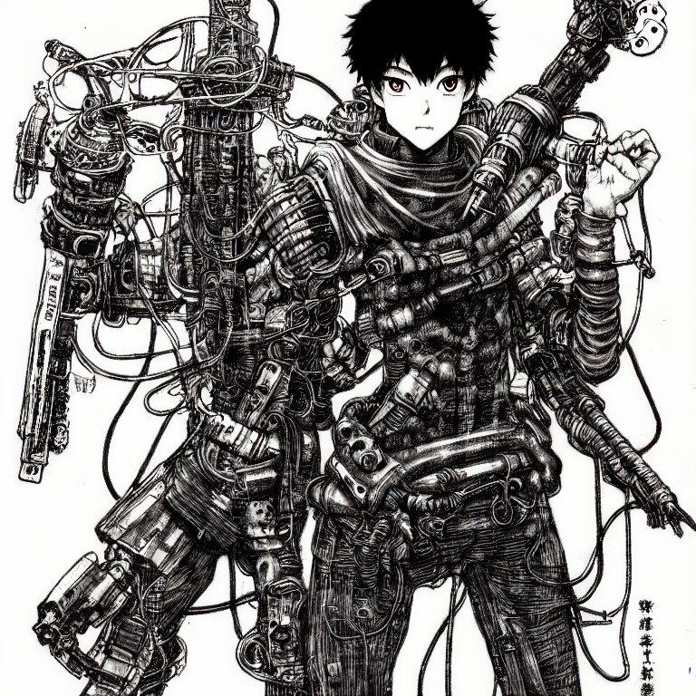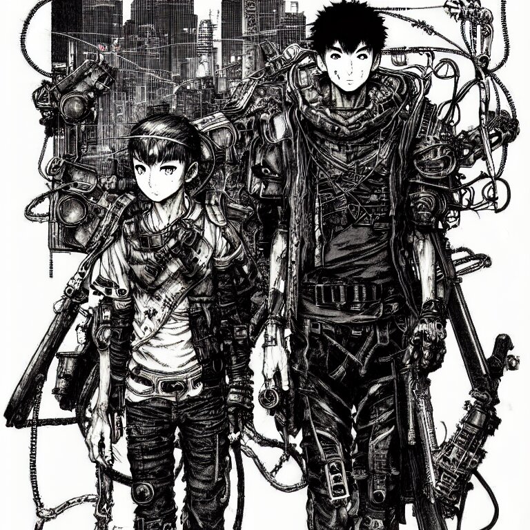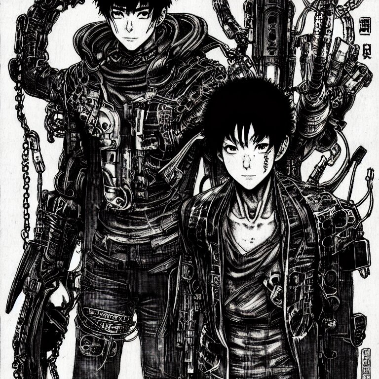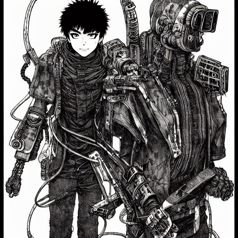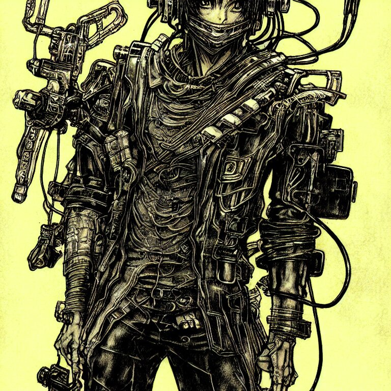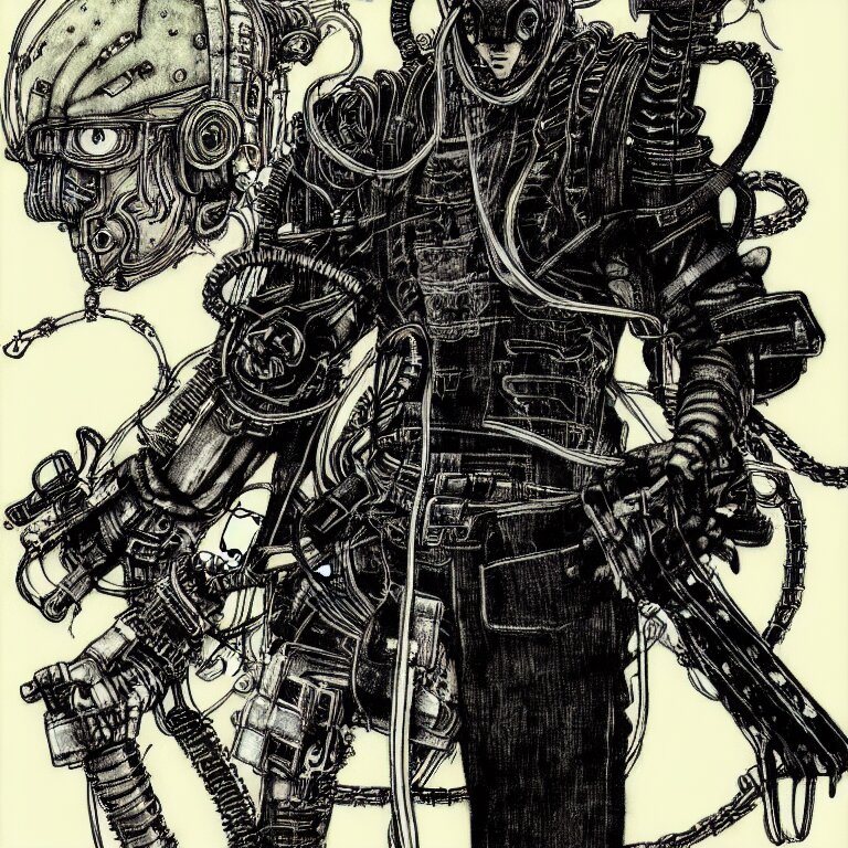Cursed illustration of cyberpunk wired hunter, manga style of kentaro miura, by norman rockwell, weirdcore, concept art