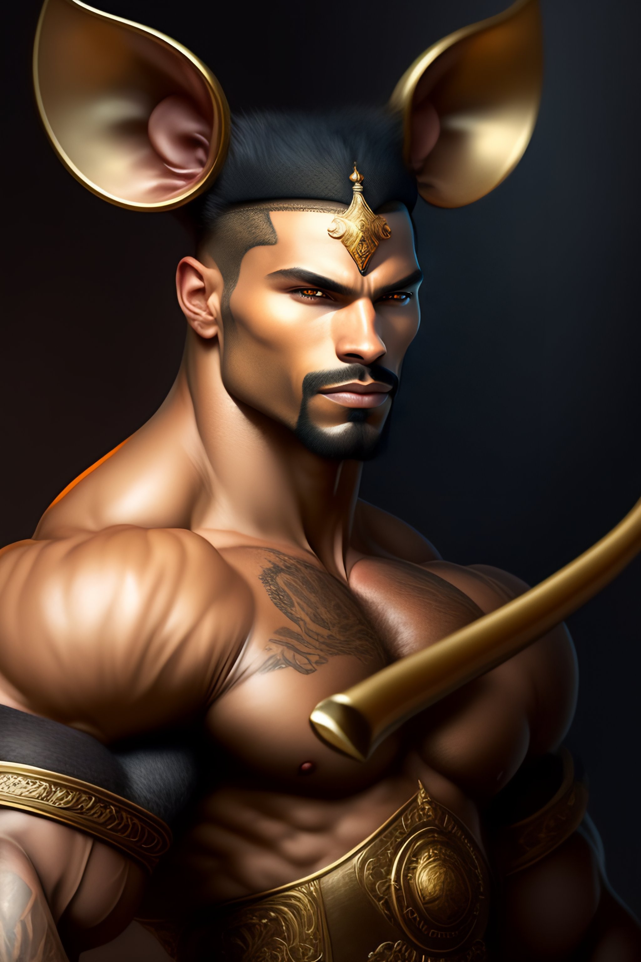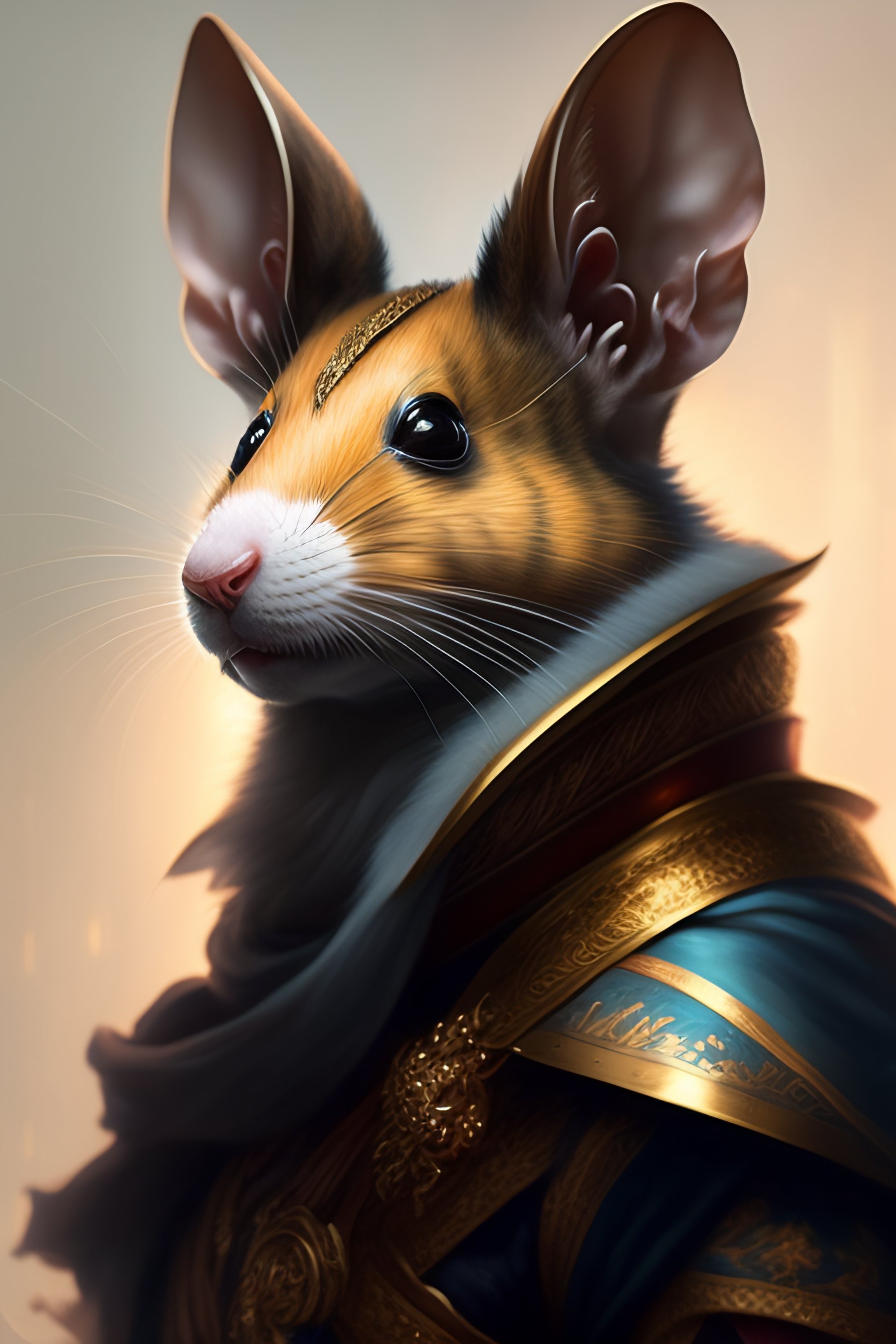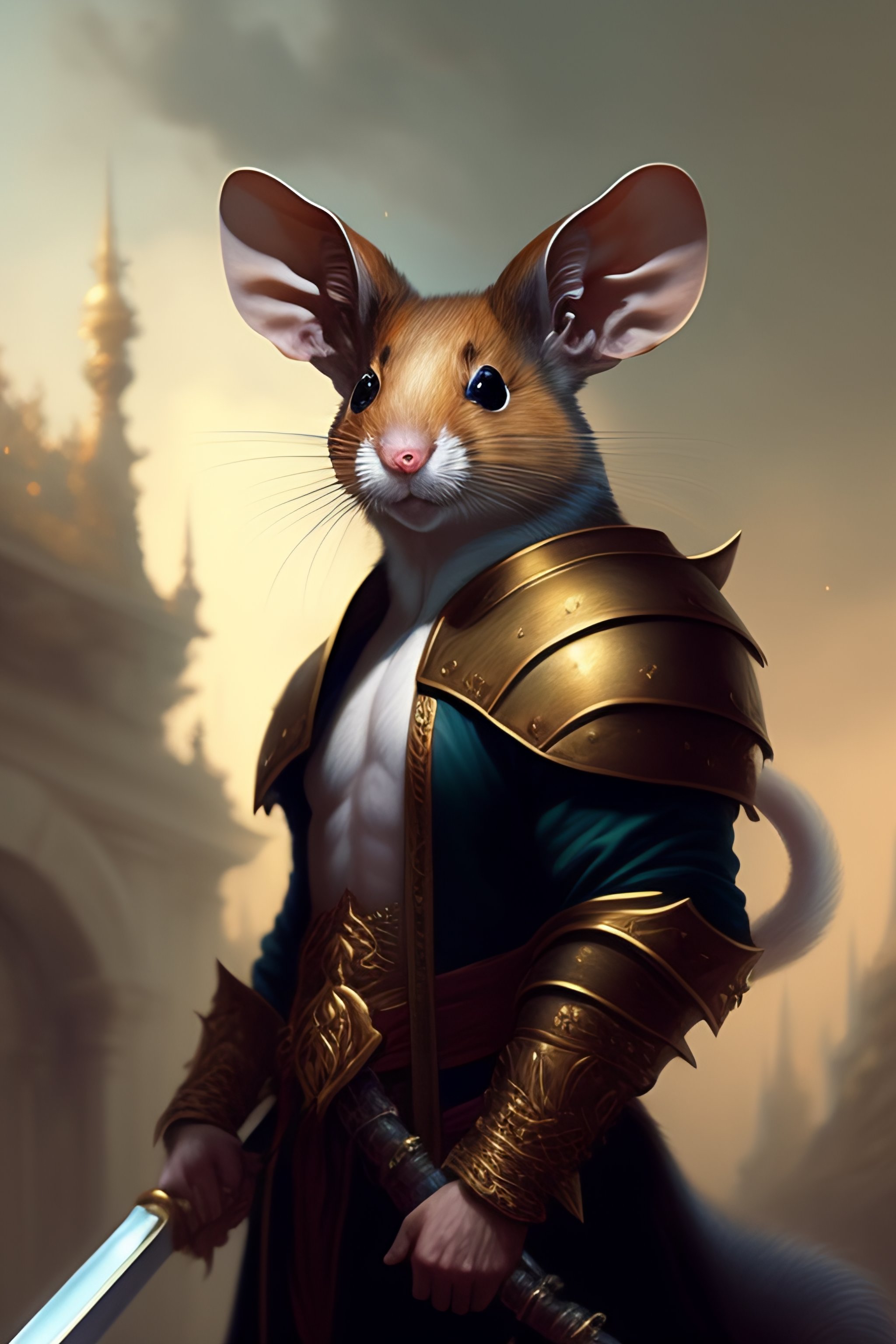Baroque portrait of a male were-rat with the head of a rat, he is very muscular, he is wielding an axe, 4k trending on artstation by peter mohrbacher