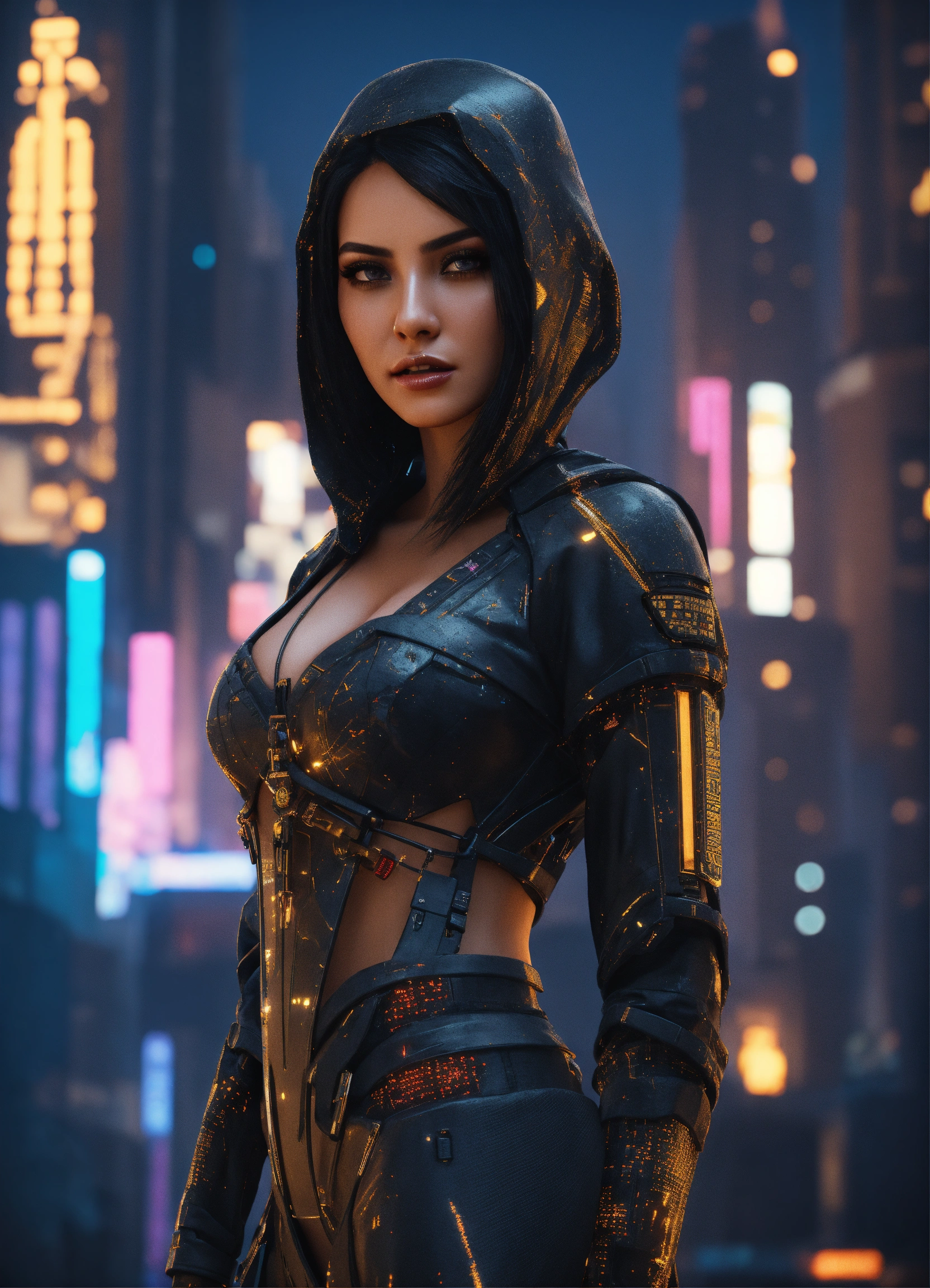 Beautiful egyptian bimbo assassin wearing a black egyptian business suit, in a futuristic cityscape, hyper detailed, digital art, cyberpunk style, cybercinematic lighting, studio quality, smooth render, unreal engine 5 rendered, octane rendered, face view