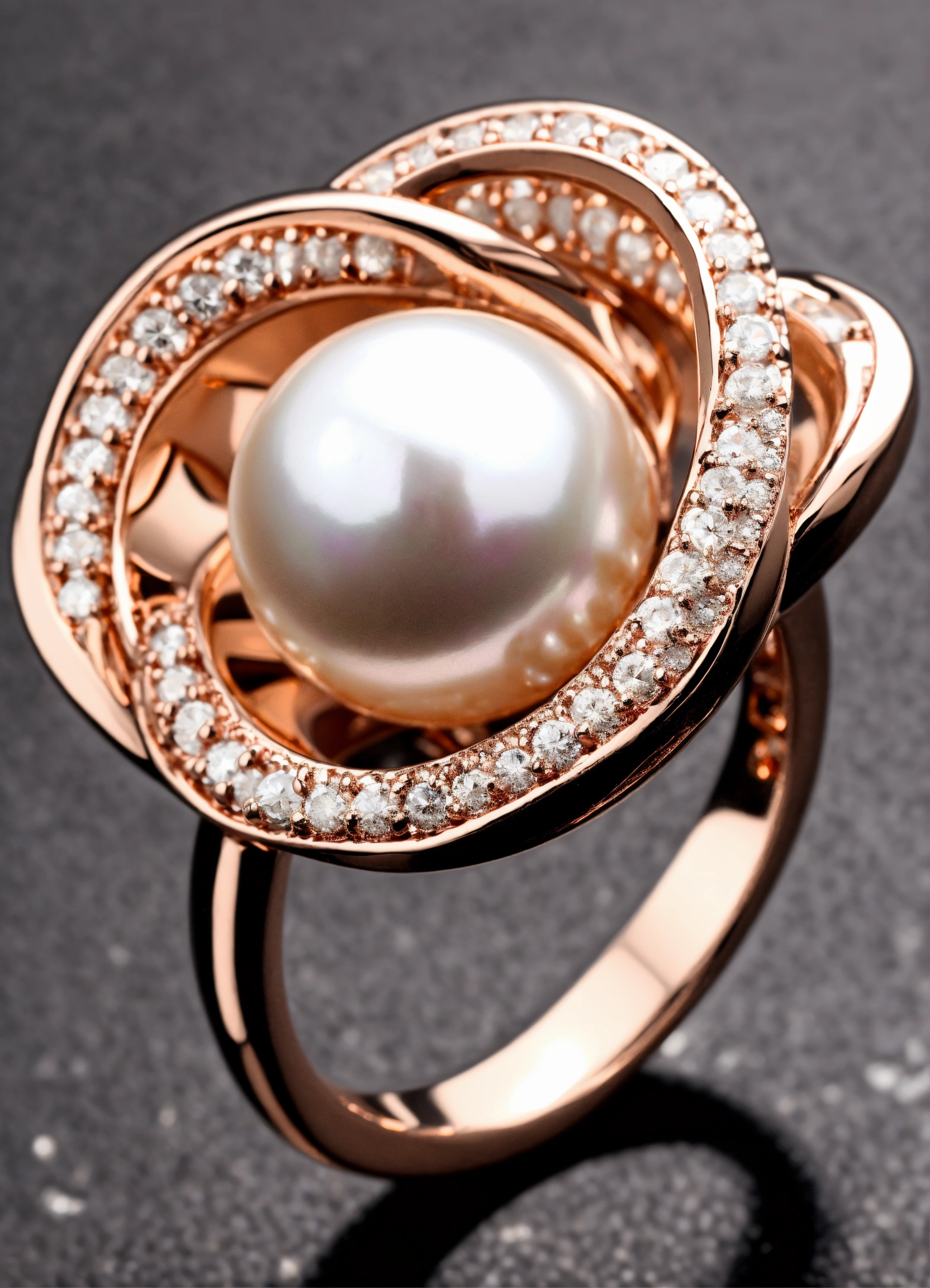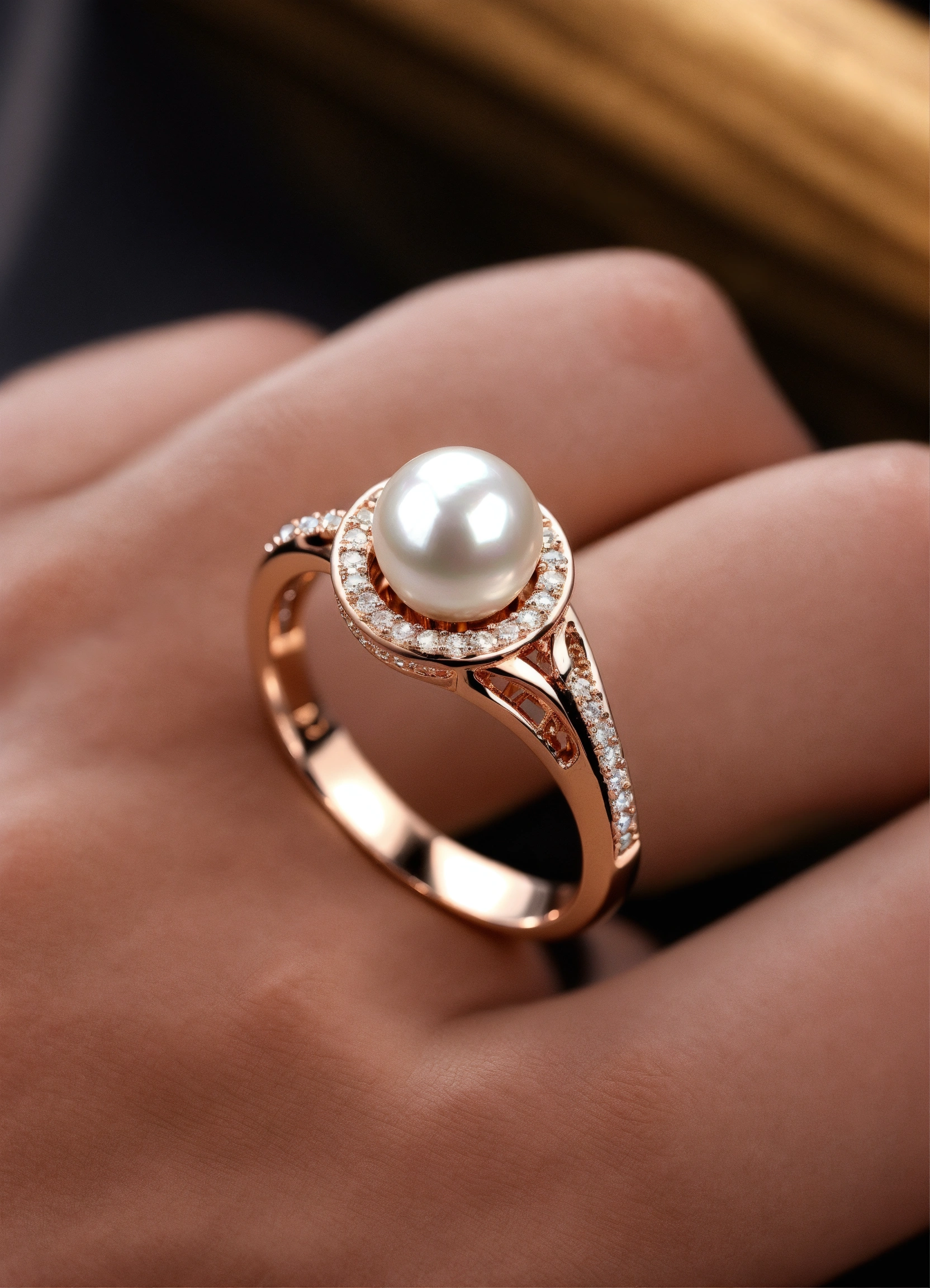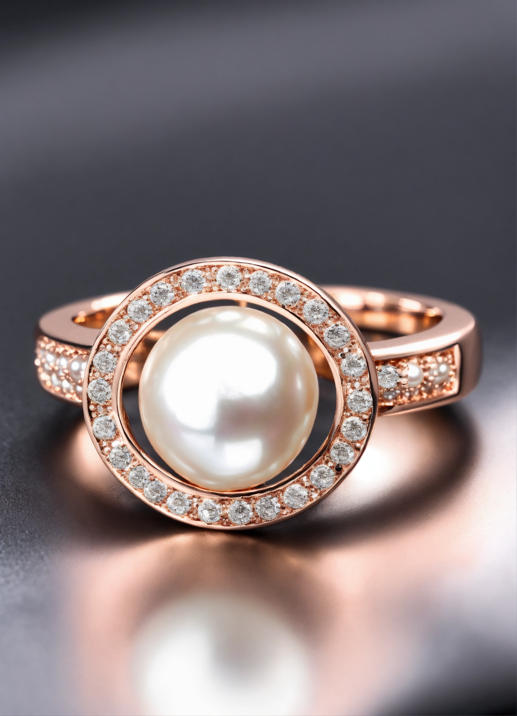 Jewellery design, romantic style, create pearl rose gold ring with matte finish in pave setting, no stone, for man, thin band, luxuries look, default-theme, --product-view --ultra-quality
